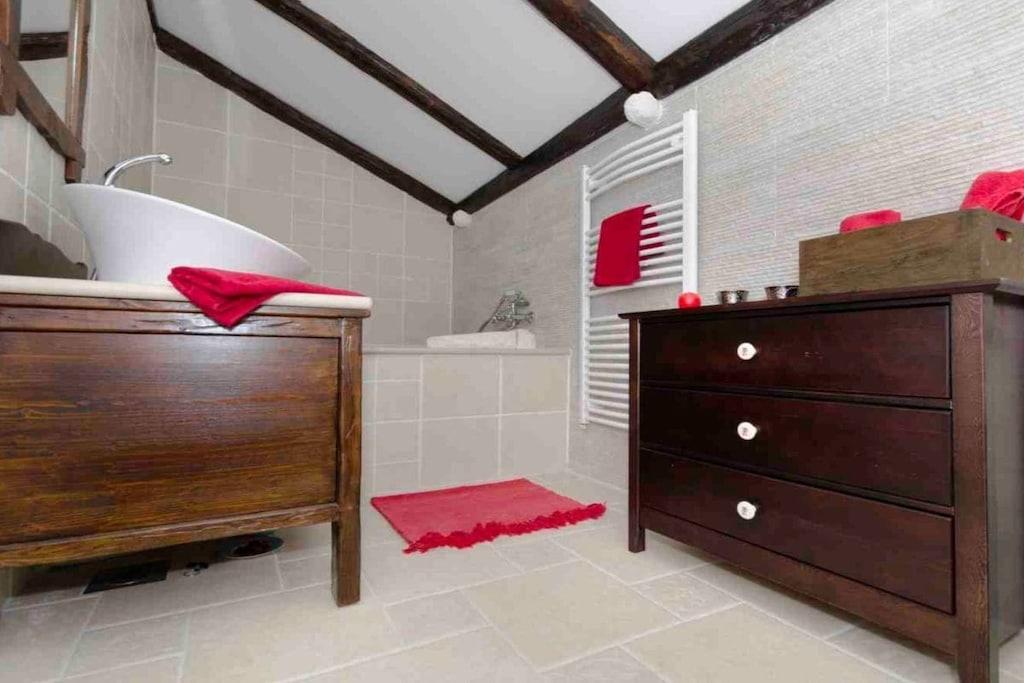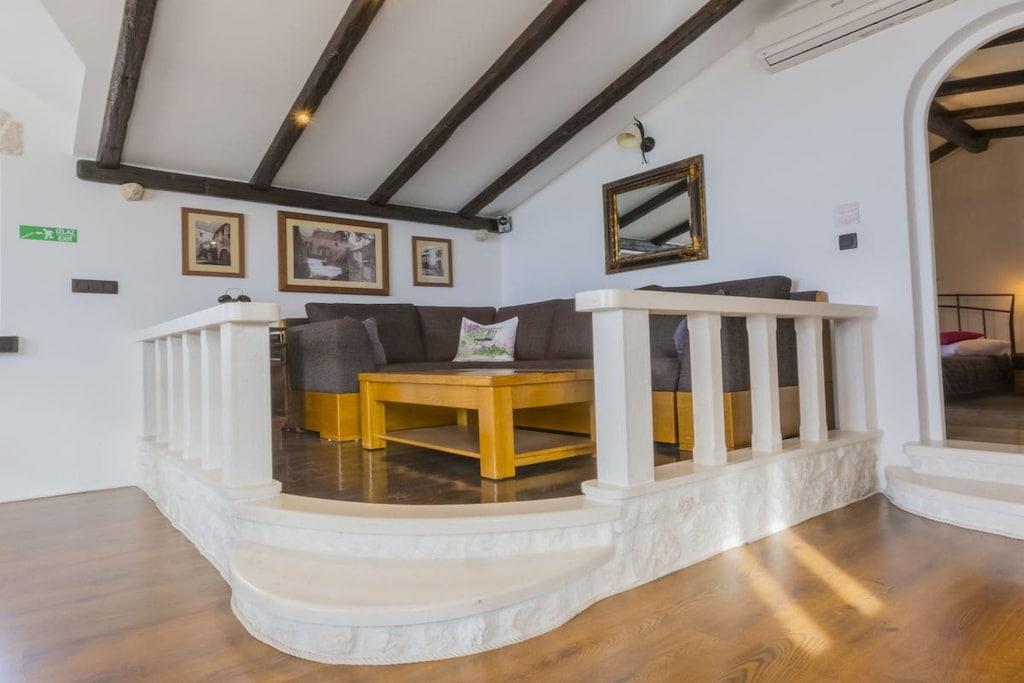 Villa Luma, beliggende over byen Baska Voda i landsbyen Bast, er eksklusiv og exceptionel. Denne komfortable villa kan prale af en imponerende beliggenhed, beliggende på en terrasseret bjergskråning med en fantastisk udsigt over Adriaterhavet. Villaen er den ideelle base for dem, der nyder at bo afsides, men stadig ikke vil gå glip af havudsigten. Og herfra er den uovertruffen. I byen Baška Voda, ikke langt fra villaen, tilbyder ejeren halvpension i sin egen restaurant til en rimelig pris. Opholdsstuen i middelhavsstil med pejs og elegant indretning fanger straks øjet. Den velholdte og smukke terrasse med swimmingpool inviterer jer til at tilbringe tid sammen som familie. Børnene kan plaske rundt i poolen, mens I nyder en uforglemmelig solnedgang med lokale delikatesser. En museumslignende taverna, møbleret med mange gamle dalmatiske genstande og dekorationer, er også tilgængelig og vil fremmane et stykke dalmatisk historie for jer. I kan også parkere bekymringsfrit i hele Baška Voda, med gratis parkering til rådighed, som selvfølgelig er inkluderet. Feriehuset er udstyret med tre soveværelser med dobbeltsenge, to enkeltsenge og en sovesofa.