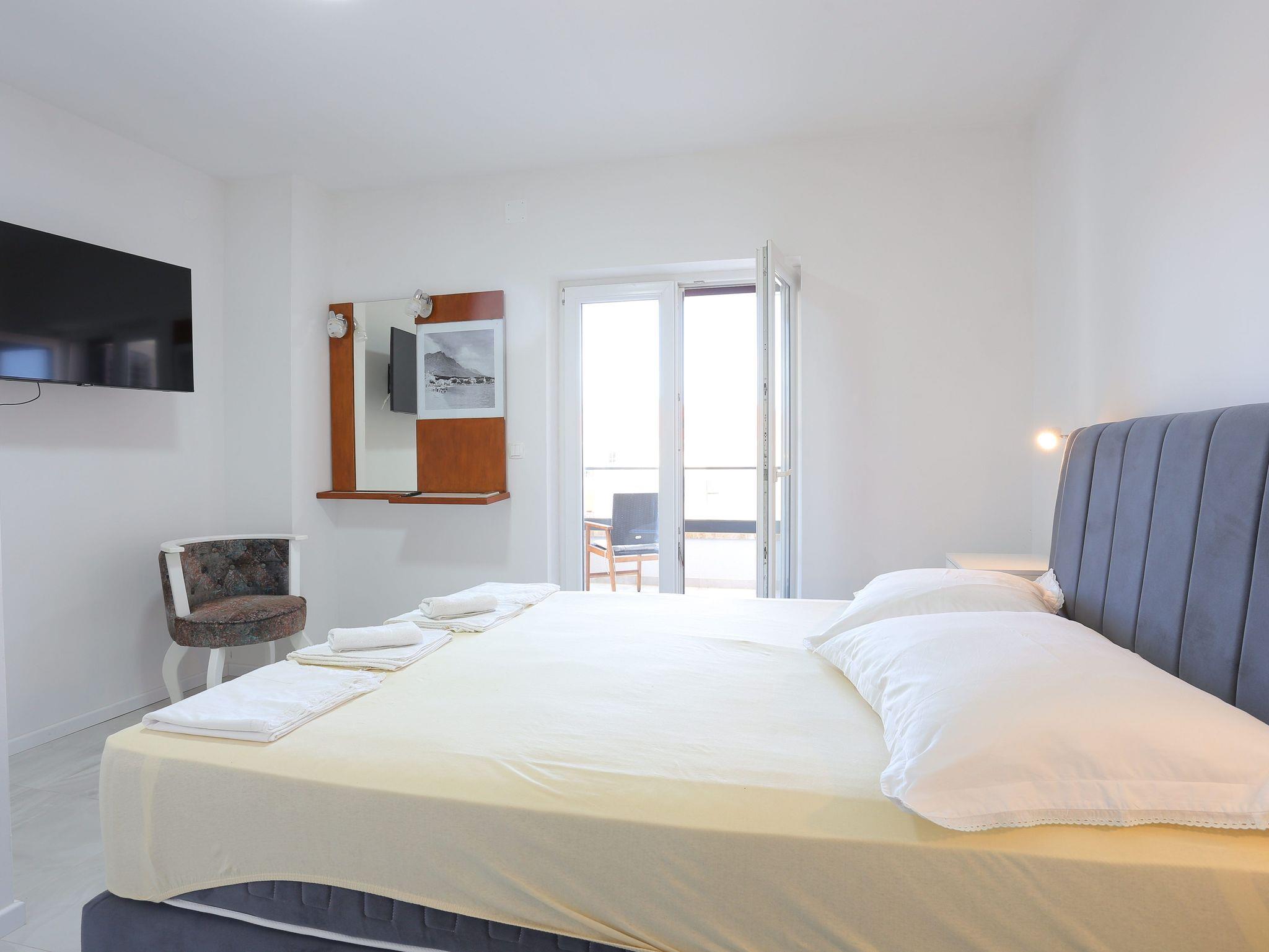 Ferienwohnung bietet Platz für 2 Gäste. Die Betten sind in Schlafzimmern, die es 1 gibt, innerhalb einer Gesamtfläche von 31m2, angeordnet. Die Gäste haben eine eigene Terrasse zur Verfügung, auf der sie in warmen Sommernächten genießen können. Es ist erlaubt, Speisen auf dem Gemeinschafts-Grill vorzubereiten. Unterkunftseinheit hat Räume, die von dem Rest der Einheit abgetrennt werden. IM PREIS INBEGRIFFEN: Kurtaxe, Endreinigung, Klimatisierung, Parkplatz, Internet, Bügeleisen, Bügelbrett, Föhn. VERBINDLICHE ZUSÄTZLICHE KOSTEN: Aufzahlung für Kurzaufenthalte (prozentualer Zuschlag pro Nächtigungsanzahl: 30% - 1, 20% - 2, 10% - 3). Die Verfügbarkeit zusätzlicher Dienstleistungen in Ihrem reservierten Termin und die Preise derselben (falls nicht aufgeführt) müssen im Voraus überprüft werden. Zusätzliche Dienstleistungen die in der Zahlungsaufforderung nicht aufgeführt sind werden direkt beim Vermieter bezahlt, angenommen der Gast nutzt auch diese. Ermäßigung auf den Grundpreis: Gratistag 28=25 (bei einem Aufenthalt von 28 oder mehr Tagen erhalten Sie 3 kostenlose Tage für den Aufenthalt bis 31.12.26).