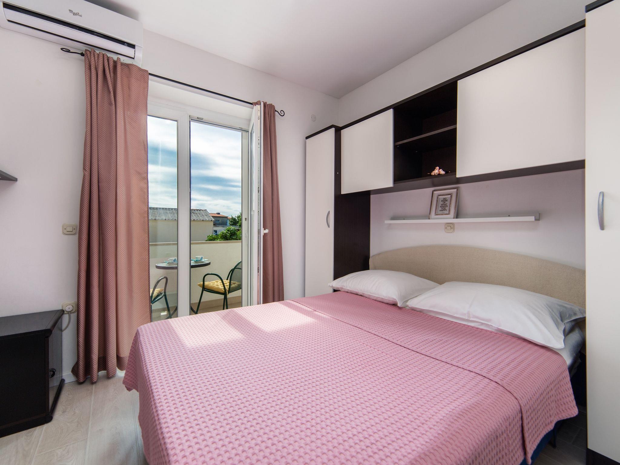 Ferienwohnung bietet Platz für 4 Gäste. Die Betten sind in Schlafzimmern, die es 1 gibt, und in Wohnzimmer, innerhalb einer Gesamtfläche von 38m2, angeordnet. Die Gäste haben einen eigenen Balkon zur Verfügung, auf der sie in warmen Sommernächten genießen können. IM PREIS INBEGRIFFEN: Kurtaxe, Endreinigung, Klimatisierung, Parkplatz, Internet, Kinderbett, Bügeleisen, Bügelbrett, Föhn. VERBINDLICHE ZUSÄTZLICHE KOSTEN: Aufzahlung für Kurzaufenthalte (prozentualer Zuschlag pro Nächtigungsanzahl: 30% - 1, 20% - 2, 10% - 3). Die Verfügbarkeit zusätzlicher Dienstleistungen in Ihrem reservierten Termin und die Preise derselben (falls nicht aufgeführt) müssen im Voraus überprüft werden. Zusätzliche Dienstleistungen die in der Zahlungsaufforderung nicht aufgeführt sind werden direkt beim Vermieter bezahlt, angenommen der Gast nutzt auch diese. Ermäßigung auf den Grundpreis: Gratistag 14=13 (bei einem Aufenthalt von 14 Tagen oder mehr erhalten Sie einen Gratistag für den Aufenthalt bis 31.12.26).