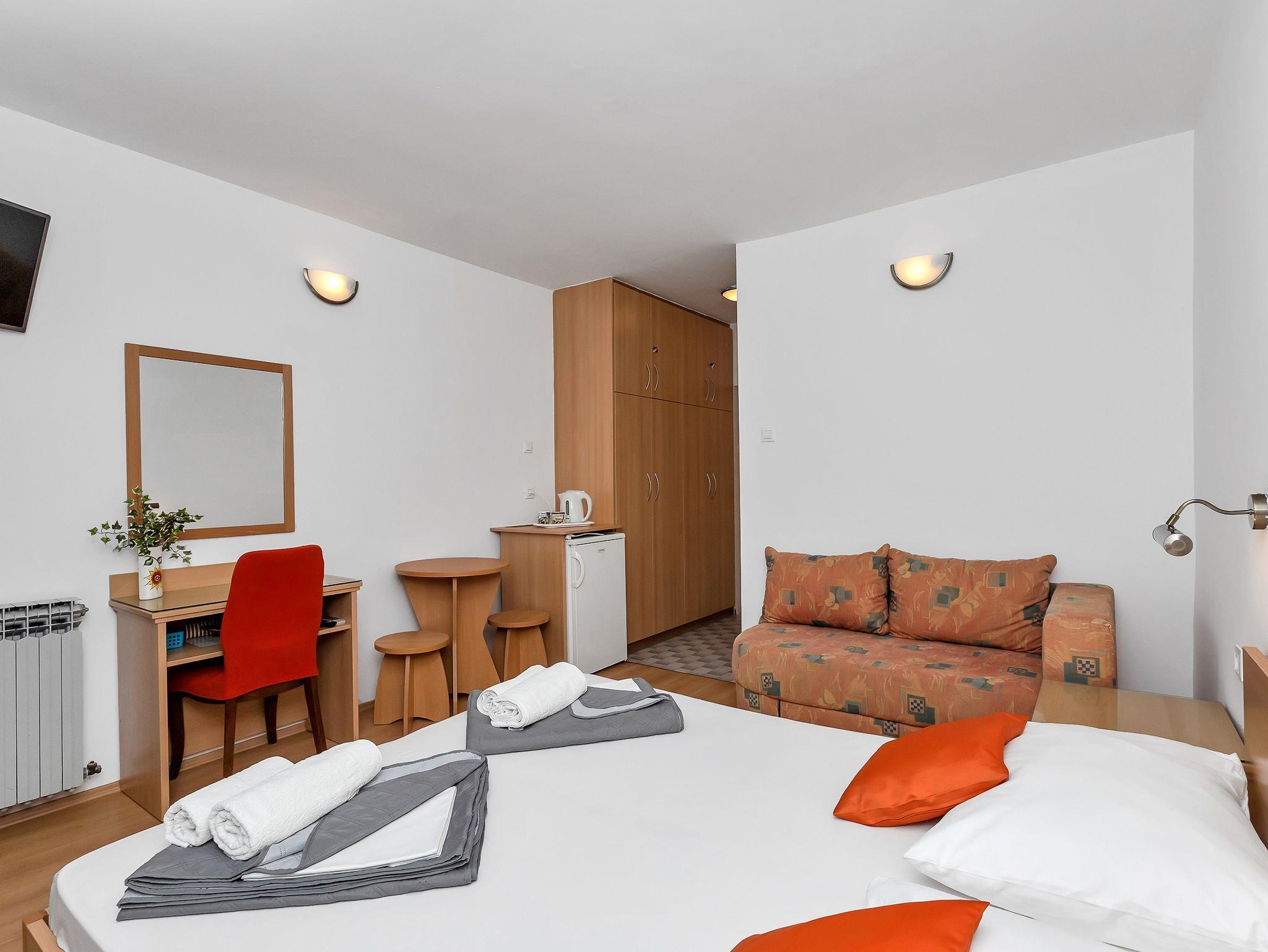 Objekt 2578 im Ort Baška Voda, Makarska - Mitteldalmatien hat Unterkunftseinheiten vom Typ Studio (7), Zimmer (2), Ferienwohnung (2) und ist 20 m von Meer entfernt. Der nächste Strand zu dieser Unterkunft ist ein Kiesstrand. Während Ihres Urlaubes ist es möglich, dass auch andere Gäste im gleichen Objekt sind, weil das Objekt mehrere Appartements hat. Die Hausbesitzer wohnen im Objekt. Der Eigentümer ist nicht verpflichtet, zusätzliche unangemeldete Personen und Haustiere zu akzeptieren. Sie sollten im Voraus bekannt gegeben werden. INHALT