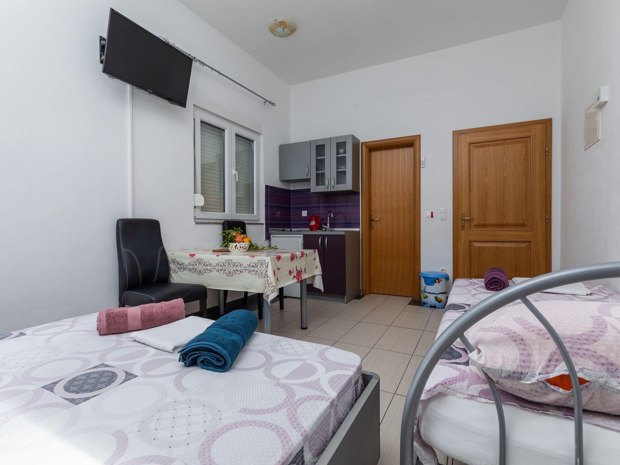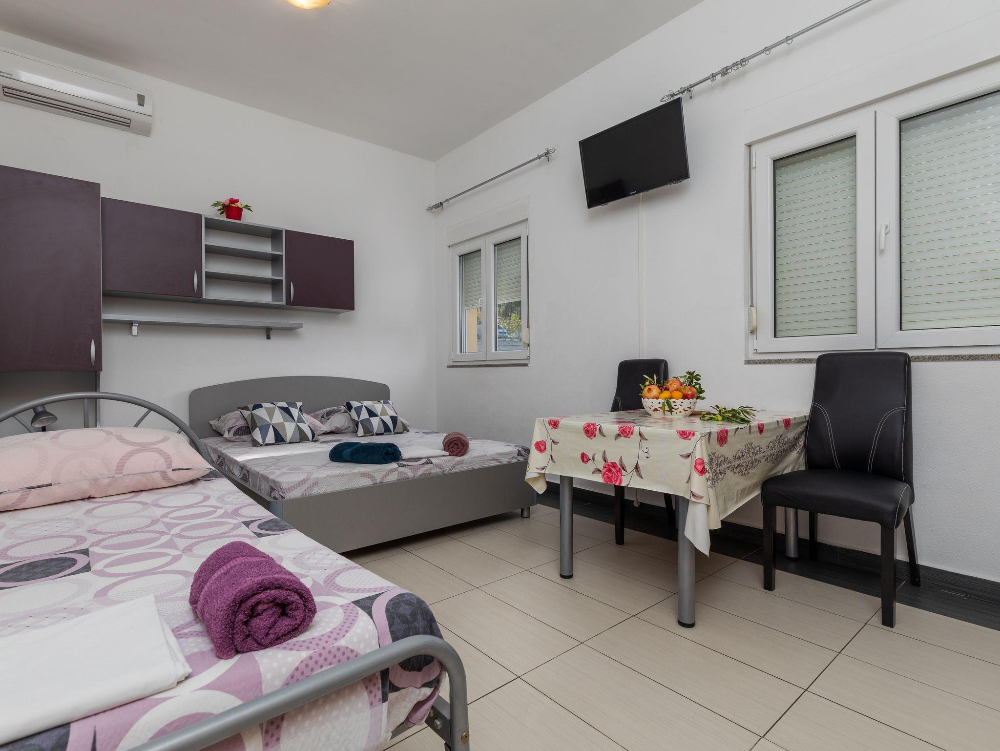 Studio bietet Platz für 3 Gäste. Die Betten sind in Schlafzimmern, die es 1 gibt, innerhalb einer Gesamtfläche von 20m2, angeordnet. Es ist erlaubt, Speisen auf dem Gemeinschafts-Grill vorzubereiten. Die reservierte Unterkunftseinheit hat keinen Balkon und keine Terrasse. IM PREIS INBEGRIFFEN: Kurtaxe, Endreinigung, Klimatisierung, Parkplatz, Internet, Kinderbett. VERBINDLICHE ZUSÄTZLICHE KOSTEN: Aufzahlung für Kurzaufenthalte (prozentualer Zuschlag pro Nächtigungsanzahl: 30% - 1, 20% - 2, 10% - 3). Die Verfügbarkeit zusätzlicher Dienstleistungen in Ihrem reservierten Termin und die Preise derselben (falls nicht aufgeführt) müssen im Voraus überprüft werden. Zusätzliche Dienstleistungen die in der Zahlungsaufforderung nicht aufgeführt sind werden direkt beim Vermieter bezahlt, angenommen der Gast nutzt auch diese.