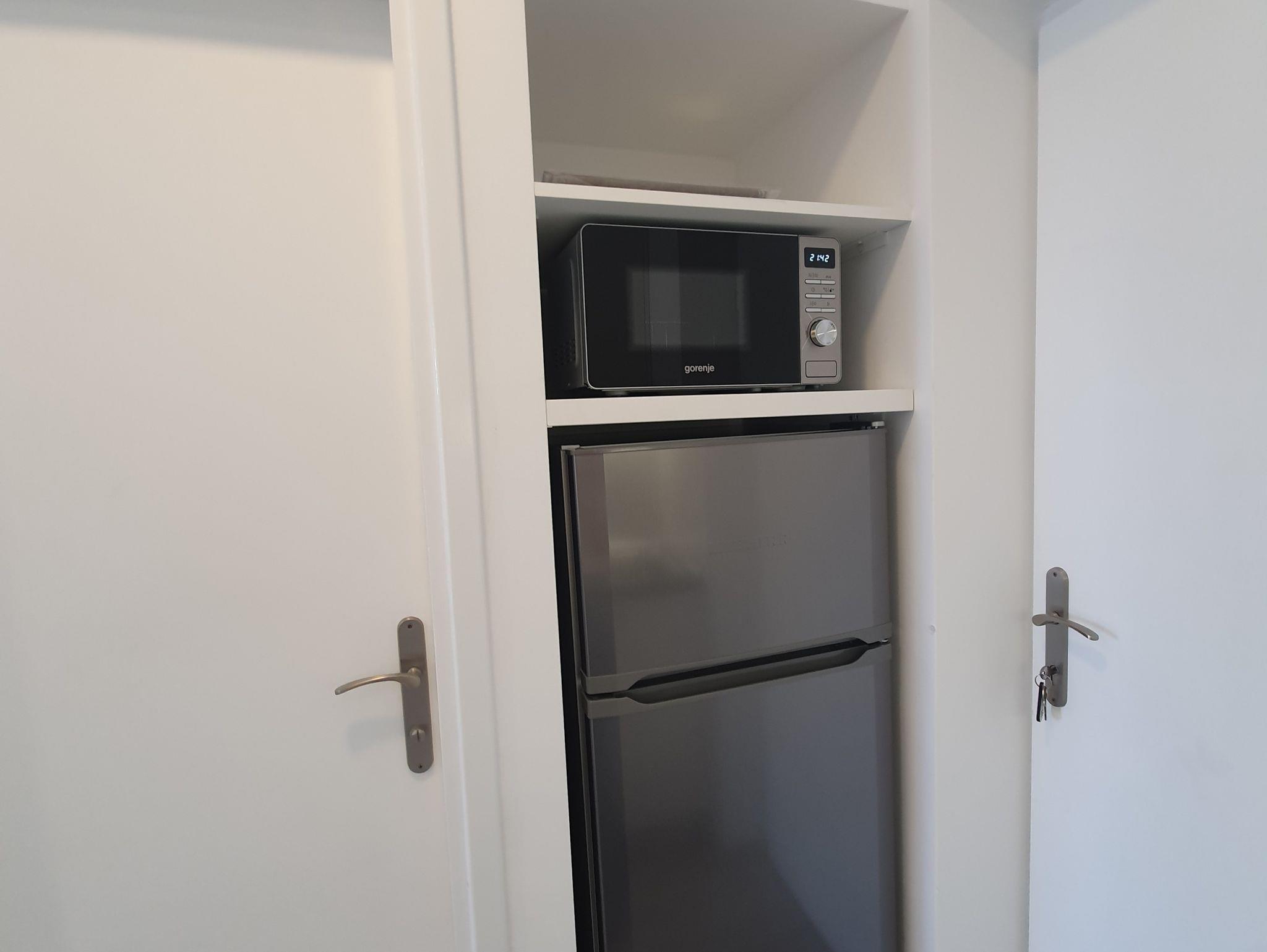 Studio bietet Platz für 2 Gäste. Die Betten sind in Schlafzimmern, die es 1 gibt, innerhalb einer Gesamtfläche von 24m2, angeordnet. Die Gäste haben eine eigene Terrasse zur Verfügung, auf der sie in warmen Sommernächten genießen können. Das Studio-Apartment bietet Meerblick. Es ist erlaubt, Speisen auf dem Gemeinschafts-Grill vorzubereiten. IM PREIS INBEGRIFFEN: Kurtaxe, Endreinigung, Klimatisierung, Parkplatz, Internet, Wäschewaschen, Kinderbett, Bügeleisen, Bügelbrett, Föhn. UNVERBINDLICHE ZUSÄTZLICHE KOSTEN: Zusatzbett (15,00 € pro Nacht). Die Verfügbarkeit zusätzlicher Dienstleistungen in Ihrem reservierten Termin und die Preise derselben (falls nicht aufgeführt) müssen im Voraus überprüft werden. Zusätzliche Dienstleistungen die in der Zahlungsaufforderung nicht aufgeführt sind werden direkt beim Vermieter bezahlt, angenommen der Gast nutzt auch diese.