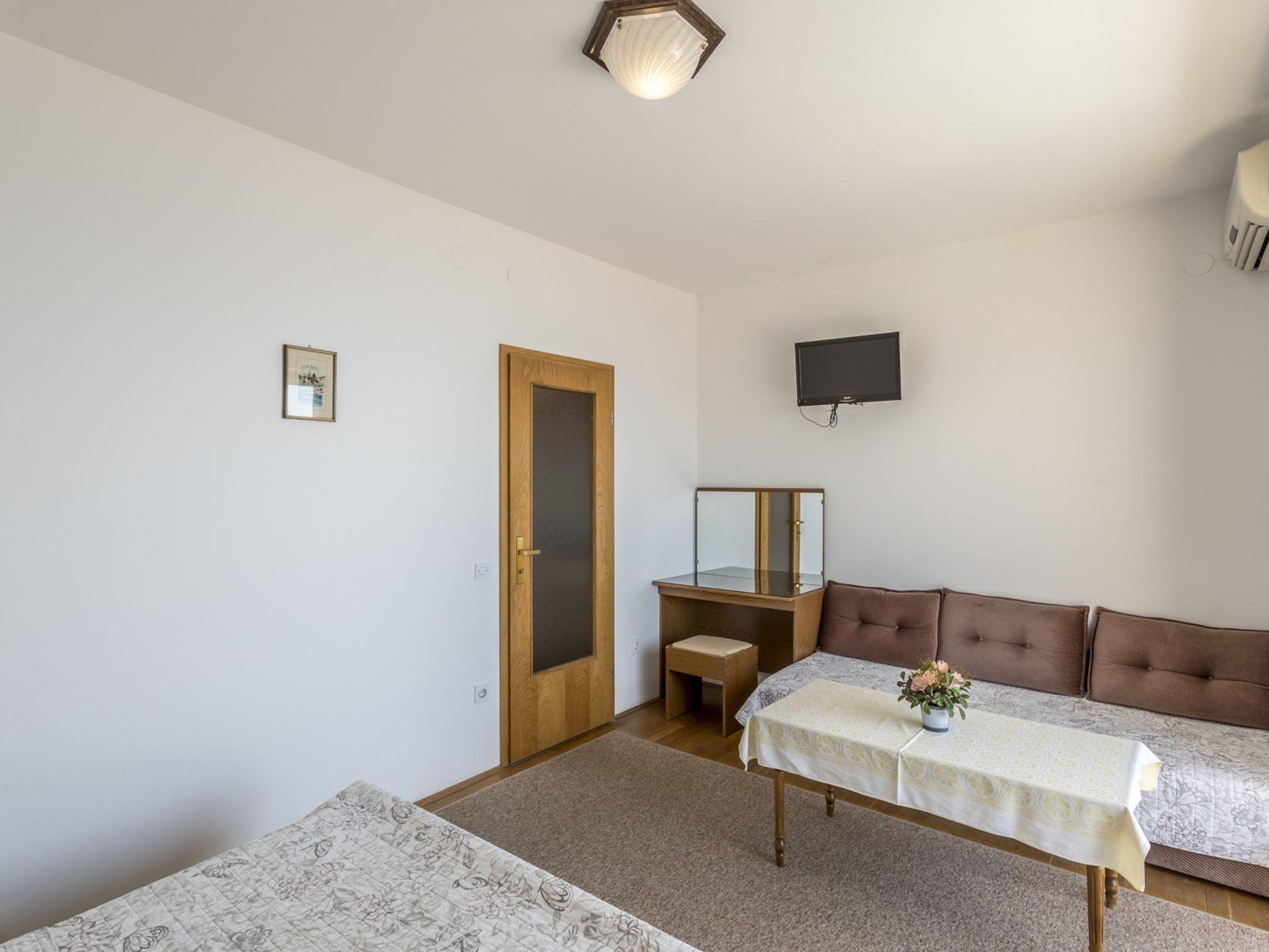 Studio bietet Platz für 3 Gäste. Die Betten sind in Schlafzimmern, die es 1 gibt, innerhalb einer Gesamtfläche von 22m2, angeordnet. Die Gäste haben einen eigenen Balkon zur Verfügung, auf der sie in warmen Sommernächten genießen können. Das Studio-Apartment bietet Meerblick. Es ist erlaubt, Speisen auf dem Gemeinschafts-Grill vorzubereiten. In der Unterkunftseinheit besteht die Möglichkeit des Mitbringens von Haustieren gegen Aufpreis. IM PREIS INBEGRIFFEN: Kurtaxe, Endreinigung, Klimatisierung, Parkplatz, Internet, Kinderbett, Bügeleisen, Sonnenschirm. VERBINDLICHE ZUSÄTZLICHE KOSTEN: Aufzahlung für Kurzaufenthalte (prozentualer Zuschlag pro Nächtigungsanzahl: 30% - 1, 20% - 2, 10% - 3). UNVERBINDLICHE ZUSÄTZLICHE KOSTEN: Wäschewaschen (5,00 € Waschen), Haustiere (5,00 € pro Nacht). Die Verfügbarkeit zusätzlicher Dienstleistungen in Ihrem reservierten Termin und die Preise derselben (falls nicht aufgeführt) müssen im Voraus überprüft werden. Zusätzliche Dienstleistungen die in der Zahlungsaufforderung nicht aufgeführt sind werden direkt beim Vermieter bezahlt, angenommen der Gast nutzt auch diese.