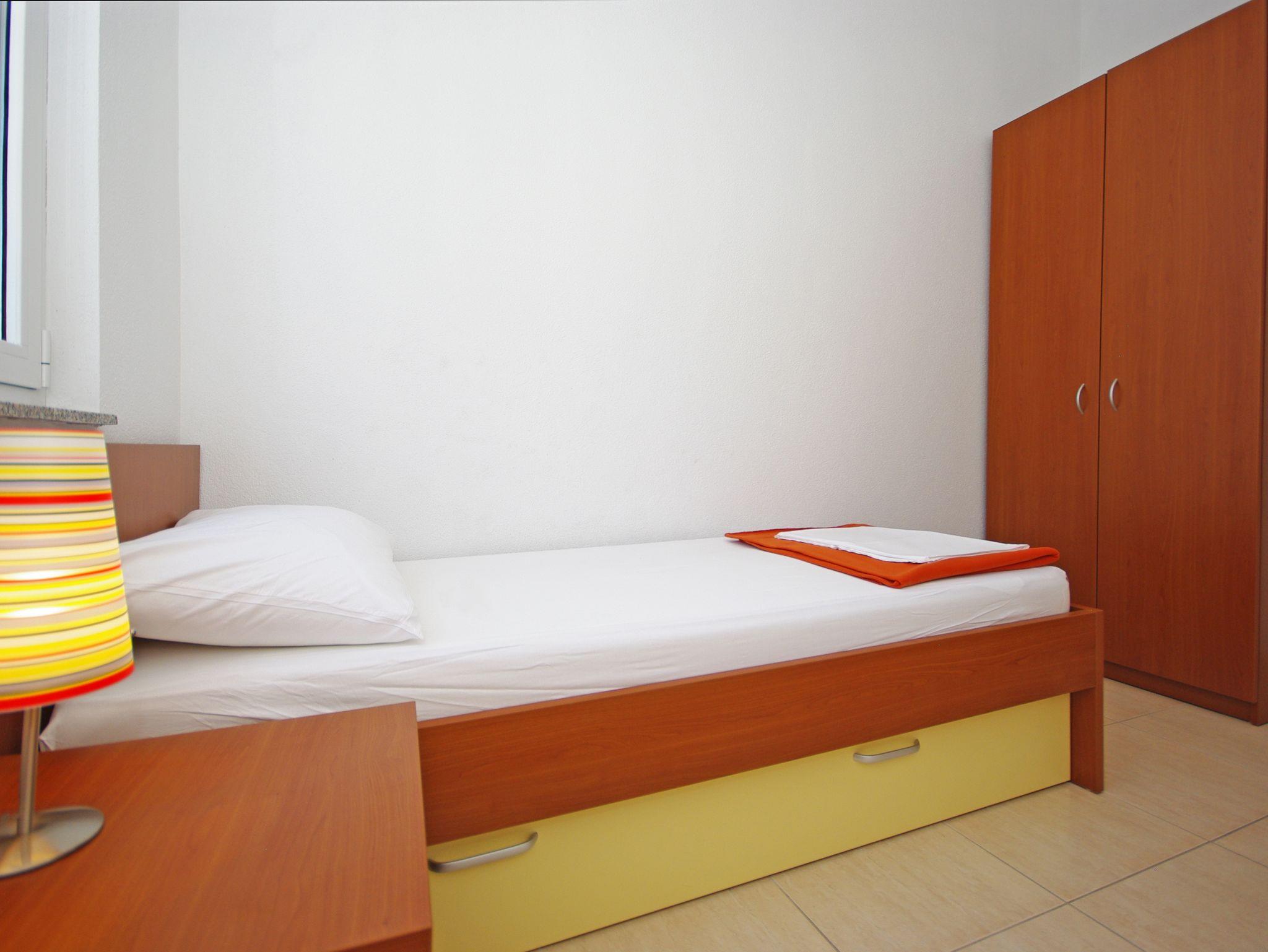 Ferienwohnung bietet Platz für 3 Gäste. Die Betten sind in Schlafzimmern, die es 2 gibt, innerhalb einer Gesamtfläche von 40m2, angeordnet. Die Gäste haben einen eigenen Balkon zur Verfügung, auf der sie in warmen Sommernächten genießen können. Das Apartment bietet Meerblick. Es ist erlaubt, Speisen auf dem Gemeinschafts-Grill vorzubereiten. IM PREIS INBEGRIFFEN: Kurtaxe, Endreinigung, Klimatisierung, Parkplatz, Internet, Bügeleisen, Bügelbrett. Die Verfügbarkeit zusätzlicher Dienstleistungen in Ihrem reservierten Termin und die Preise derselben (falls nicht aufgeführt) müssen im Voraus überprüft werden. Zusätzliche Dienstleistungen die in der Zahlungsaufforderung nicht aufgeführt sind werden direkt beim Vermieter bezahlt, angenommen der Gast nutzt auch diese.