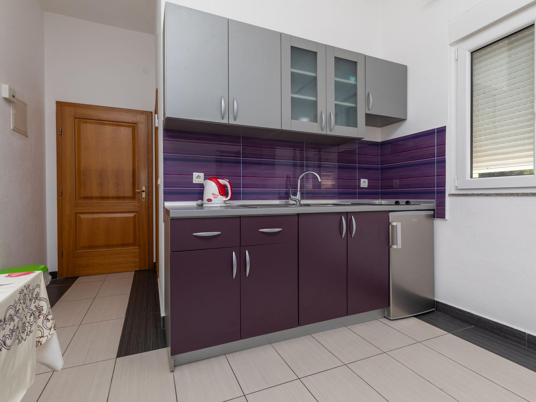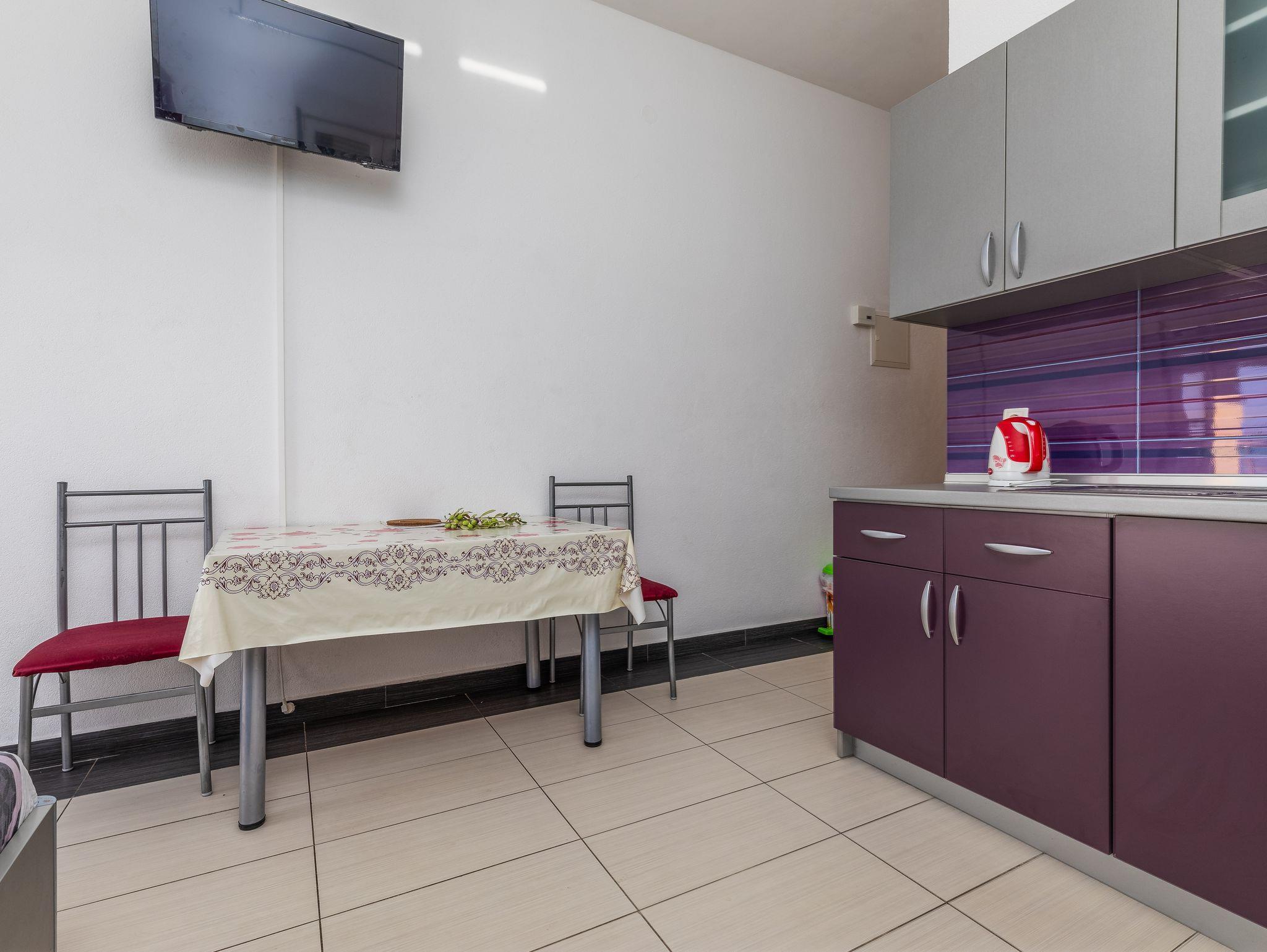 Studio bietet Platz für 2 Gäste. Die Betten sind in Schlafzimmern, die es 1 gibt, innerhalb einer Gesamtfläche von 23m2, angeordnet. Die Gäste haben einen eigenen Balkon zur Verfügung, auf der sie in warmen Sommernächten genießen können. Das Studio-Apartment bietet Meerblick. Es ist erlaubt, Speisen auf dem Gemeinschafts-Grill vorzubereiten. IM PREIS INBEGRIFFEN: Kurtaxe, Endreinigung, Klimatisierung, Parkplatz, Internet, Kinderbett. VERBINDLICHE ZUSÄTZLICHE KOSTEN: Aufzahlung für Kurzaufenthalte (prozentualer Zuschlag pro Nächtigungsanzahl: 30% - 1, 20% - 2, 10% - 3). Die Verfügbarkeit zusätzlicher Dienstleistungen in Ihrem reservierten Termin und die Preise derselben (falls nicht aufgeführt) müssen im Voraus überprüft werden. Zusätzliche Dienstleistungen die in der Zahlungsaufforderung nicht aufgeführt sind werden direkt beim Vermieter bezahlt, angenommen der Gast nutzt auch diese.