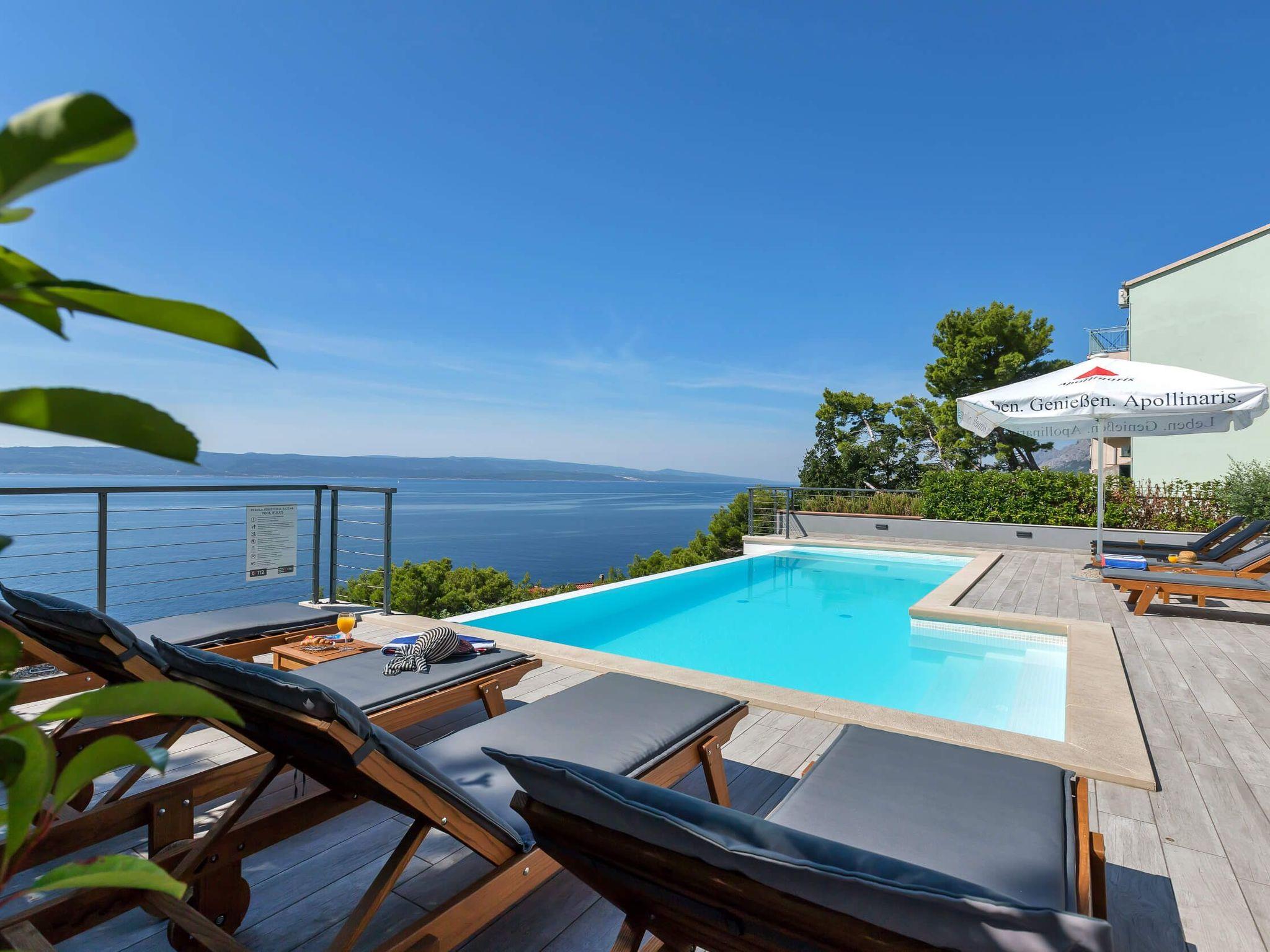 Vila MATKO OASIS in Brela offers accommodation in seven apartments at Your choice. Each apartment has a balcony with a sea view, a completely equipped kitchen, AC units and shared use of a heated pool.