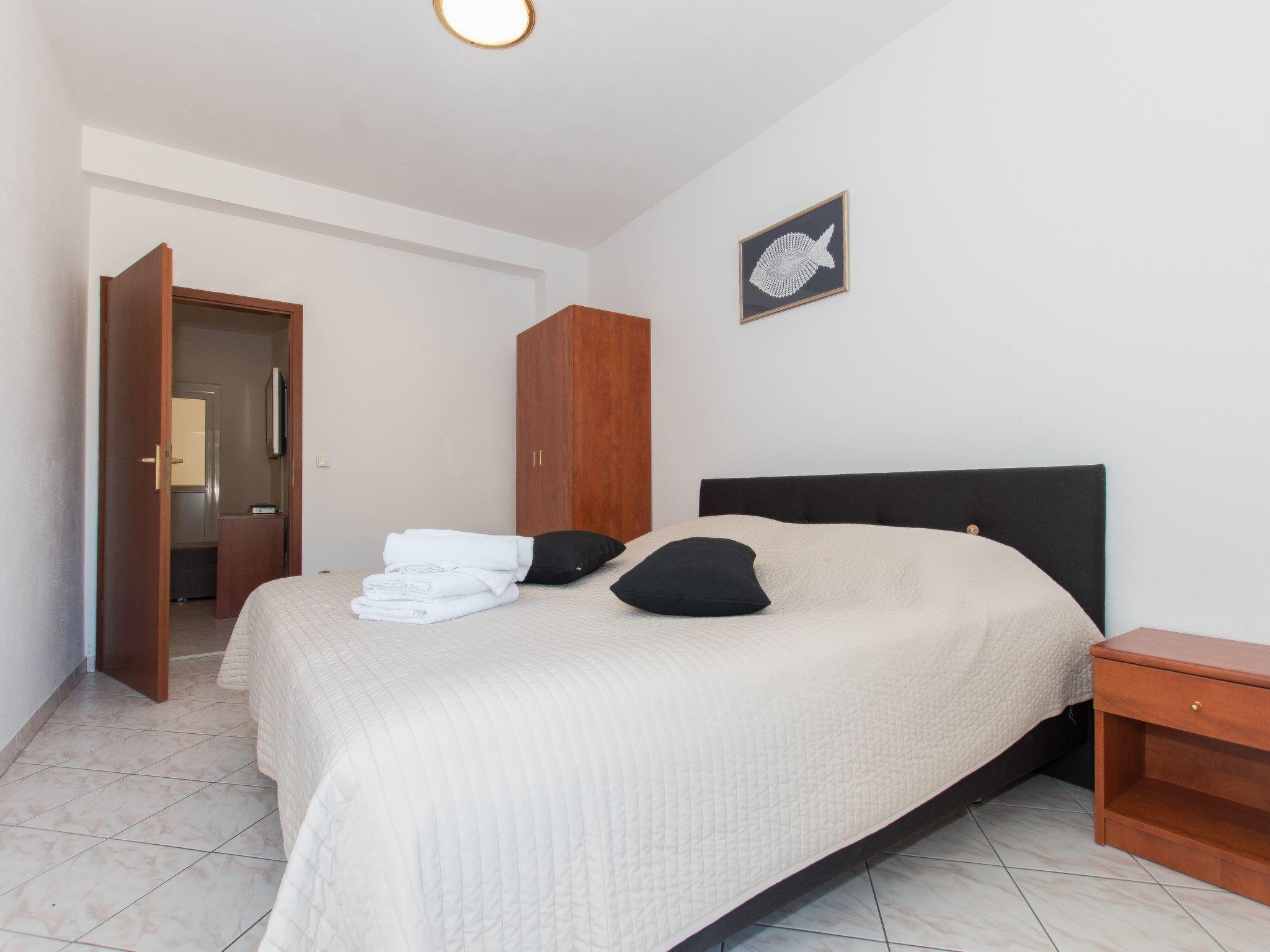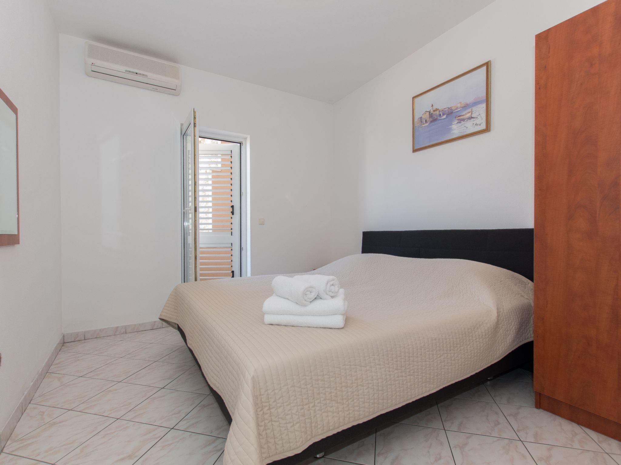 Matko's Oasis Apartments A2 has two bedrooms and one bathroom and can accommodate a maximum of 5 persons. It is situated on the first floor with a beautiful sea view from the balcony. A fully equipped kitchen is at your disposal. (Kitchen Utensils and Tableware, Oven, Electric Stove Cooking Panel, Fridge, Freezer, Kettle) Free extras include (Free parking, Free wi-fi, Free AC, Free final cleaning, Free towels and bed linen). The maximum capacity of the accommodation unit is 5 of which 1 is an extra bed. Extra bed is usually a sofa, an armchair or a folding bed. In addition, we offer you free usage of barbecue on which you can make delicious meals and enjoy with your family and friends. The apartment equipment consists of (TV, SAT, Chairs, Couch/Sofa).