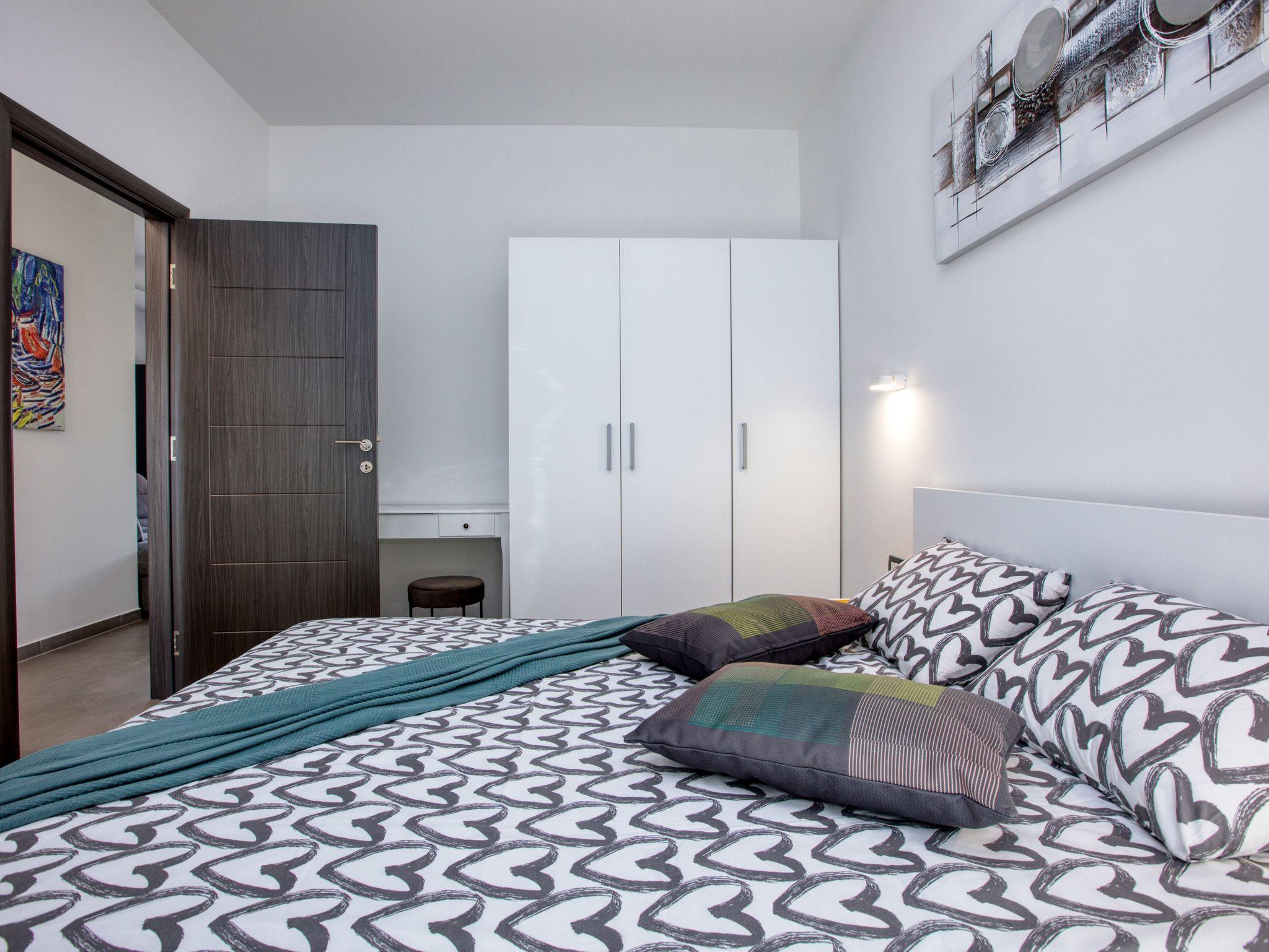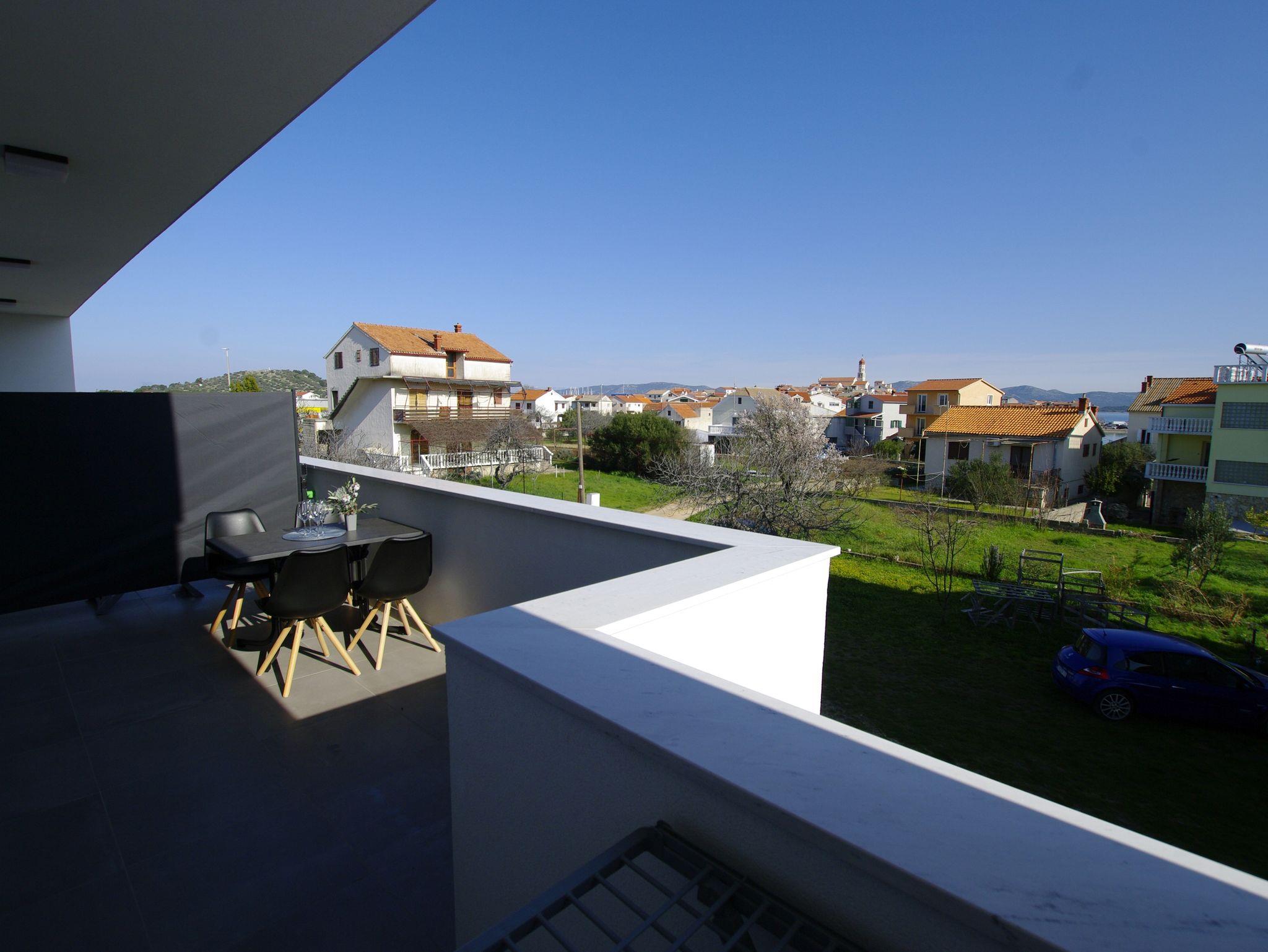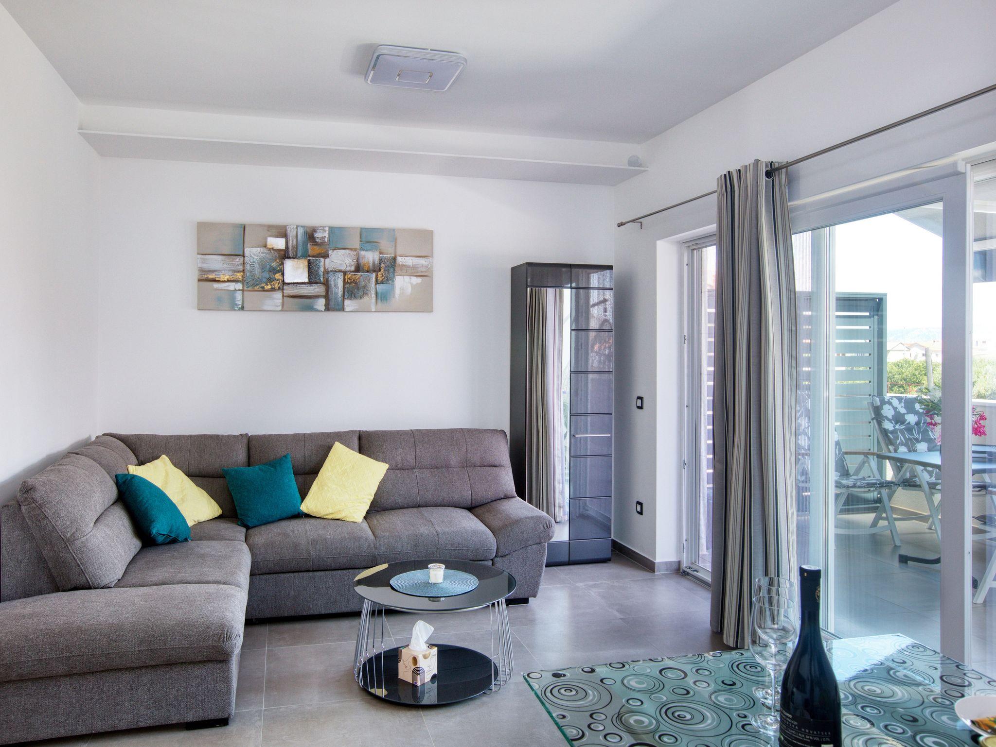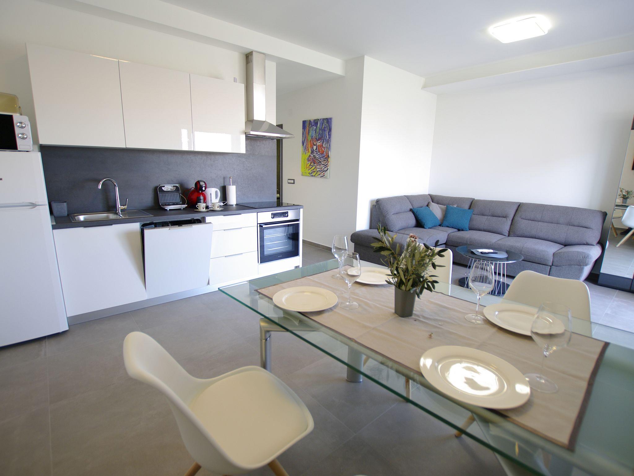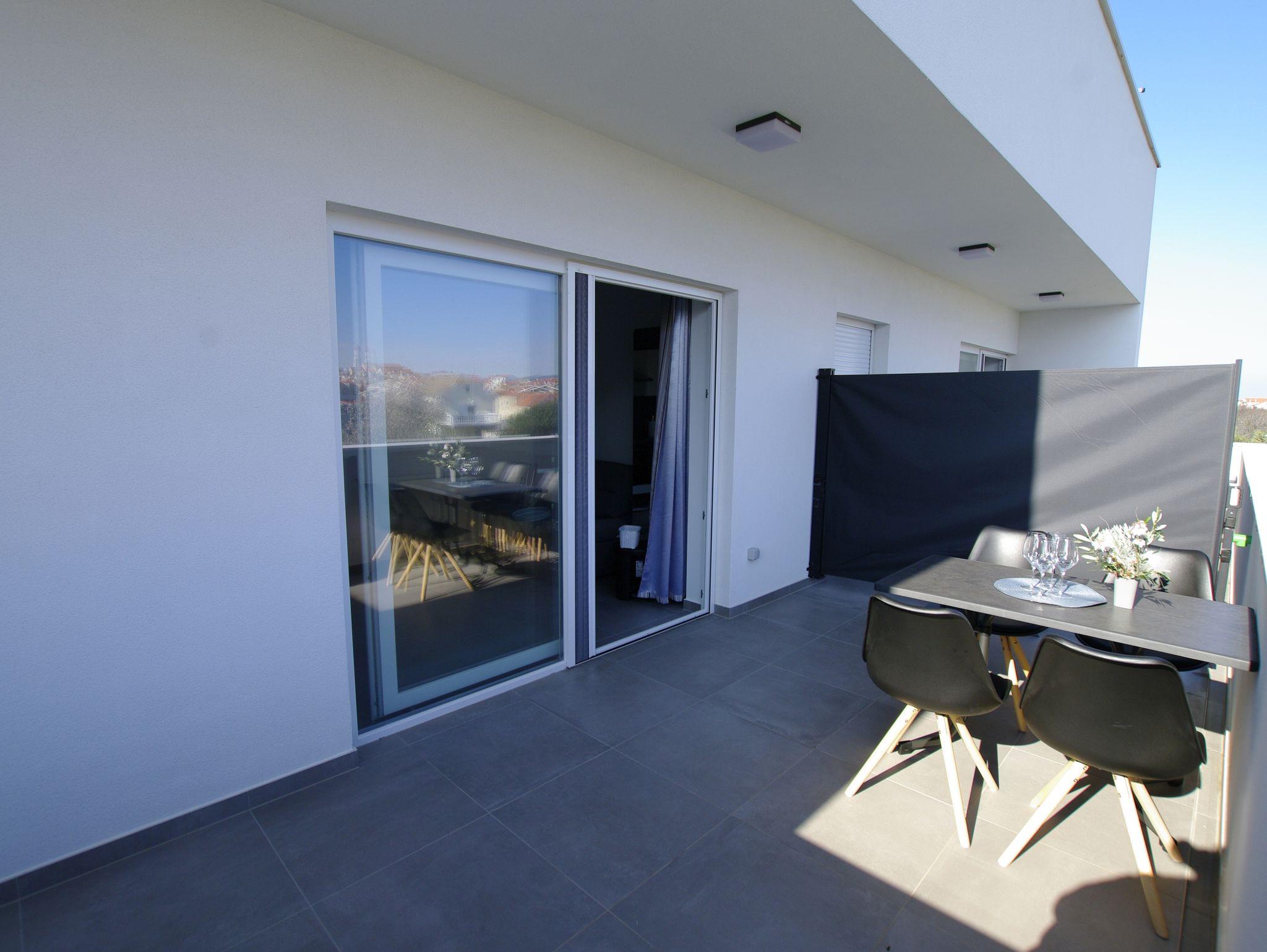 Ferienwohnung bietet Platz für 4 Gäste. Die Betten sind in Schlafzimmern, die es 1 gibt, und in Wohnzimmer, innerhalb einer Gesamtfläche von 47m2, angeordnet. Die Gäste haben eine eigene Terrasse zur Verfügung, auf der sie in warmen Sommernächten genießen können. Das Apartment bietet Meerblick. Es ist erlaubt, Speisen auf dem Gemeinschafts-Grill vorzubereiten. IM PREIS INBEGRIFFEN: Kurtaxe, Endreinigung, Klimatisierung, Parkplatz, Internet, Wäschewaschen, Kinderbett, Bügeleisen, Bügelbrett, Föhn, tragbarer Grill. VERBINDLICHE ZUSÄTZLICHE KOSTEN: Aufzahlung für Kurzaufenthalte (prozentualer Zuschlag pro Nächtigungsanzahl: 30% - 1, 20% - 2, 10% - 3). Die Verfügbarkeit zusätzlicher Dienstleistungen in Ihrem reservierten Termin und die Preise derselben (falls nicht aufgeführt) müssen im Voraus überprüft werden. Zusätzliche Dienstleistungen die in der Zahlungsaufforderung nicht aufgeführt sind werden direkt beim Vermieter bezahlt, angenommen der Gast nutzt auch diese. Ermäßigung auf den Grundpreis: Gratistag 21=19 (bei einem Aufenthalt von 21 Tagen oder mehr erhalten Sie 2 Gratistage für den Aufenthalt bis 31.12.26).