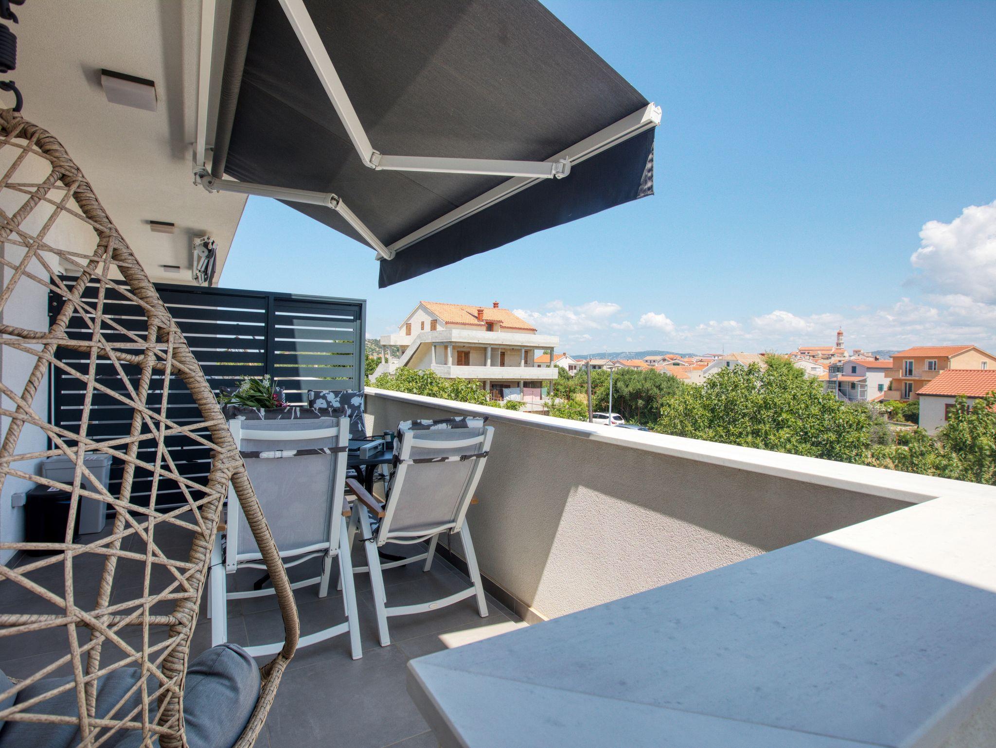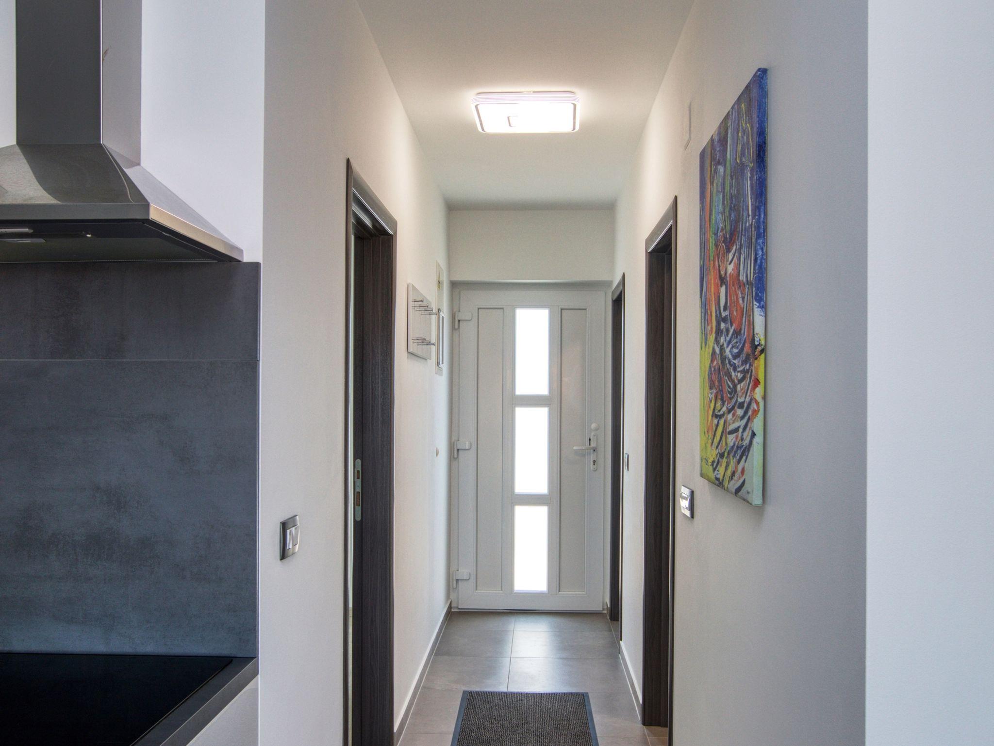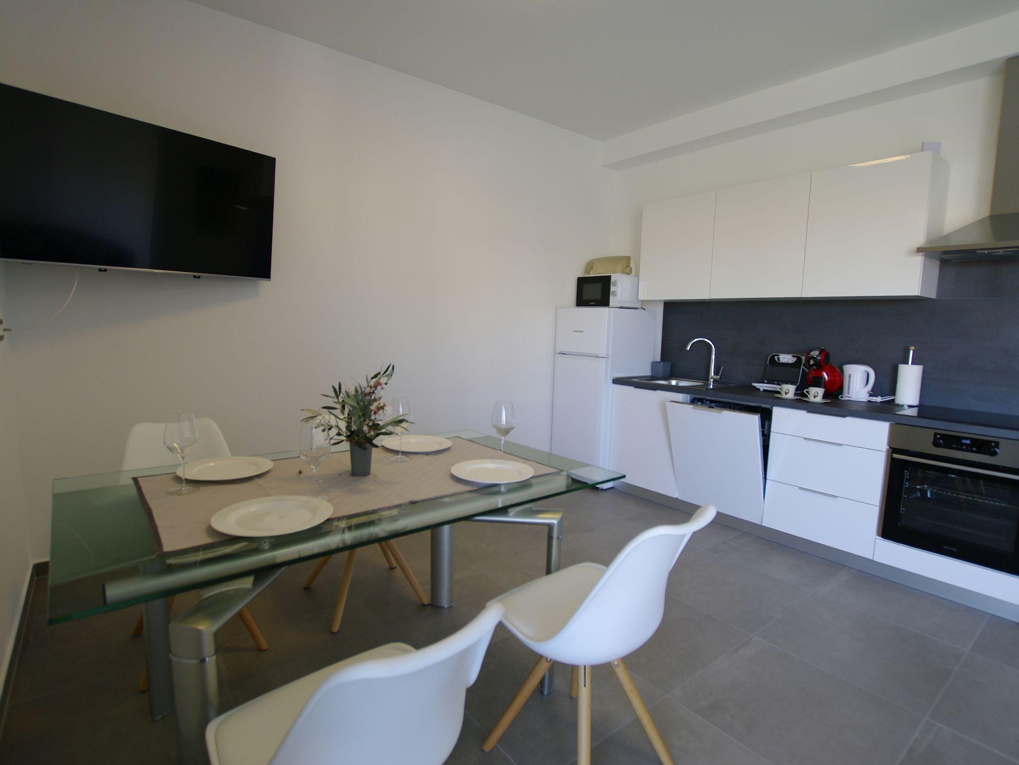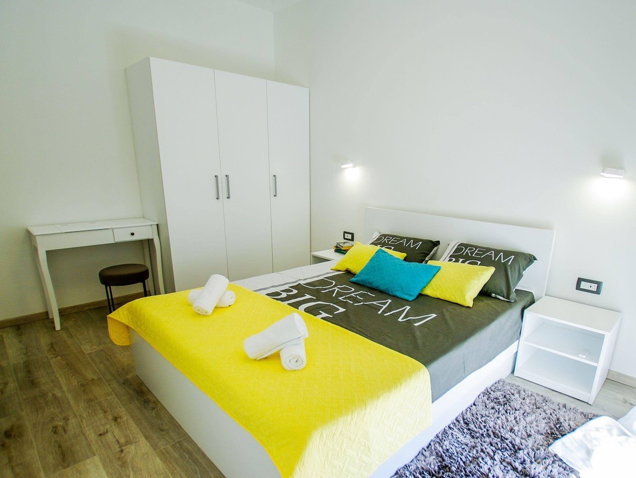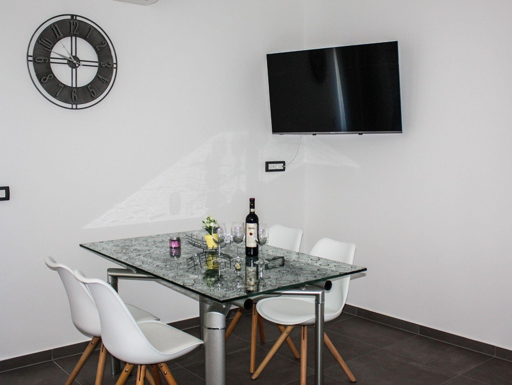 Ferienwohnung bietet Platz für 4 Gäste. Die Betten sind in Schlafzimmern, die es 1 gibt, und in Wohnzimmer, innerhalb einer Gesamtfläche von 47m2, angeordnet. Die Gäste haben eine eigene Terrasse zur Verfügung, auf der sie in warmen Sommernächten genießen können. Das Apartment bietet Meerblick. Es ist erlaubt, Speisen auf dem Gemeinschafts-Grill vorzubereiten. IM PREIS INBEGRIFFEN: Kurtaxe, Endreinigung, Klimatisierung, Parkplatz, Internet, Wäschewaschen, Kinderbett, Bügeleisen, Bügelbrett, Föhn, tragbarer Grill. VERBINDLICHE ZUSÄTZLICHE KOSTEN: Aufzahlung für Kurzaufenthalte (prozentualer Zuschlag pro Nächtigungsanzahl: 30% - 1, 20% - 2, 10% - 3). Die Verfügbarkeit zusätzlicher Dienstleistungen in Ihrem reservierten Termin und die Preise derselben (falls nicht aufgeführt) müssen im Voraus überprüft werden. Zusätzliche Dienstleistungen die in der Zahlungsaufforderung nicht aufgeführt sind werden direkt beim Vermieter bezahlt, angenommen der Gast nutzt auch diese. Ermäßigung auf den Grundpreis: Gratistag 21=19 (bei einem Aufenthalt von 21 Tagen oder mehr erhalten Sie 2 Gratistage für den Aufenthalt bis 31.12.26).