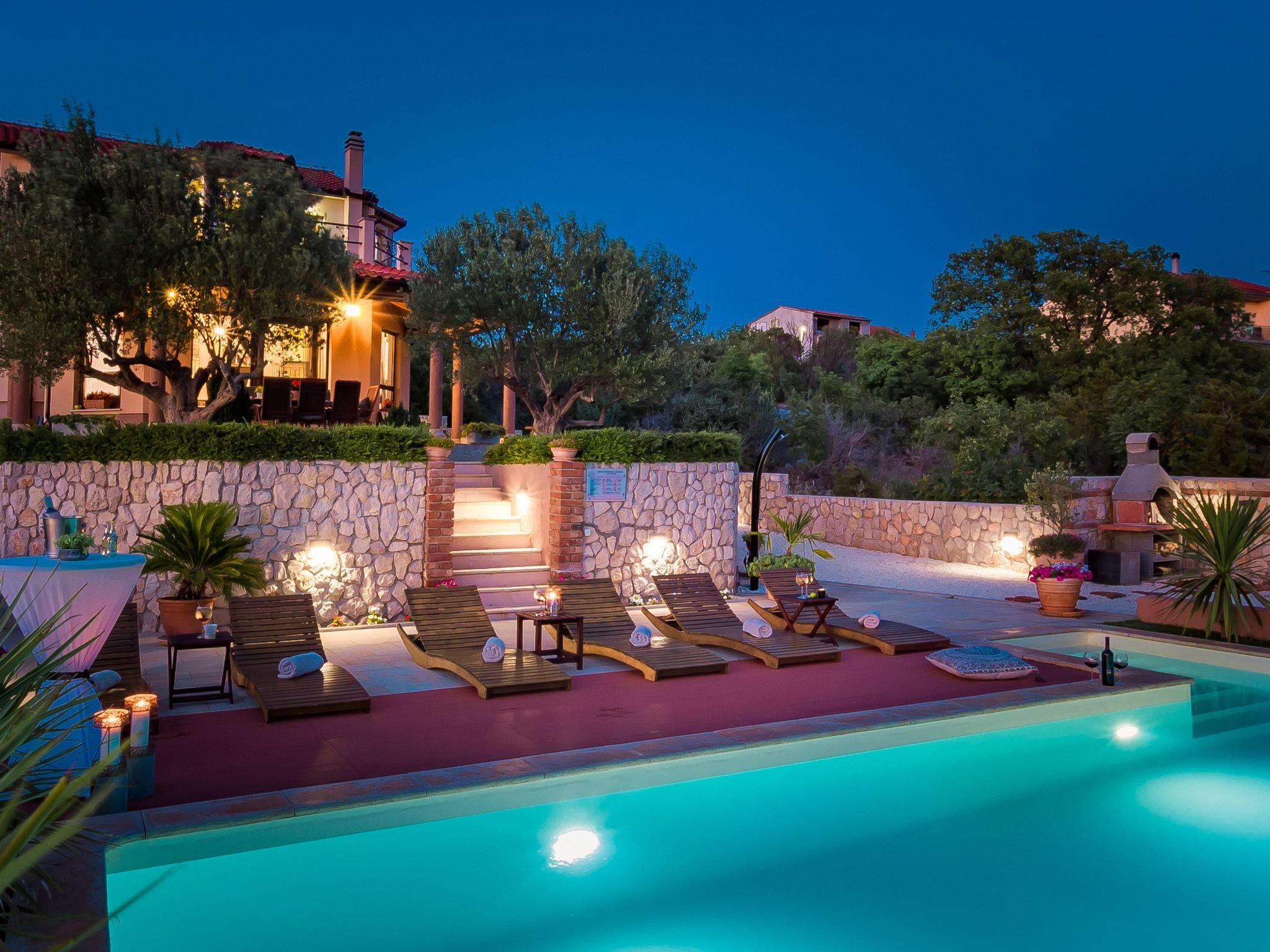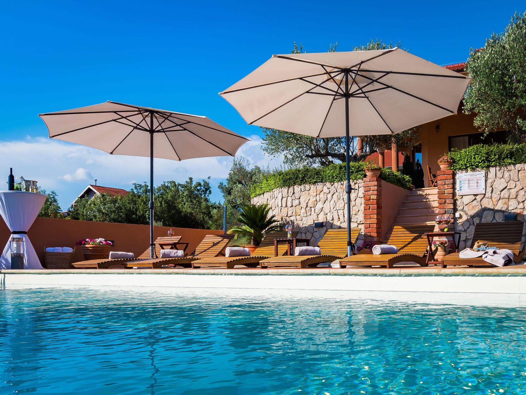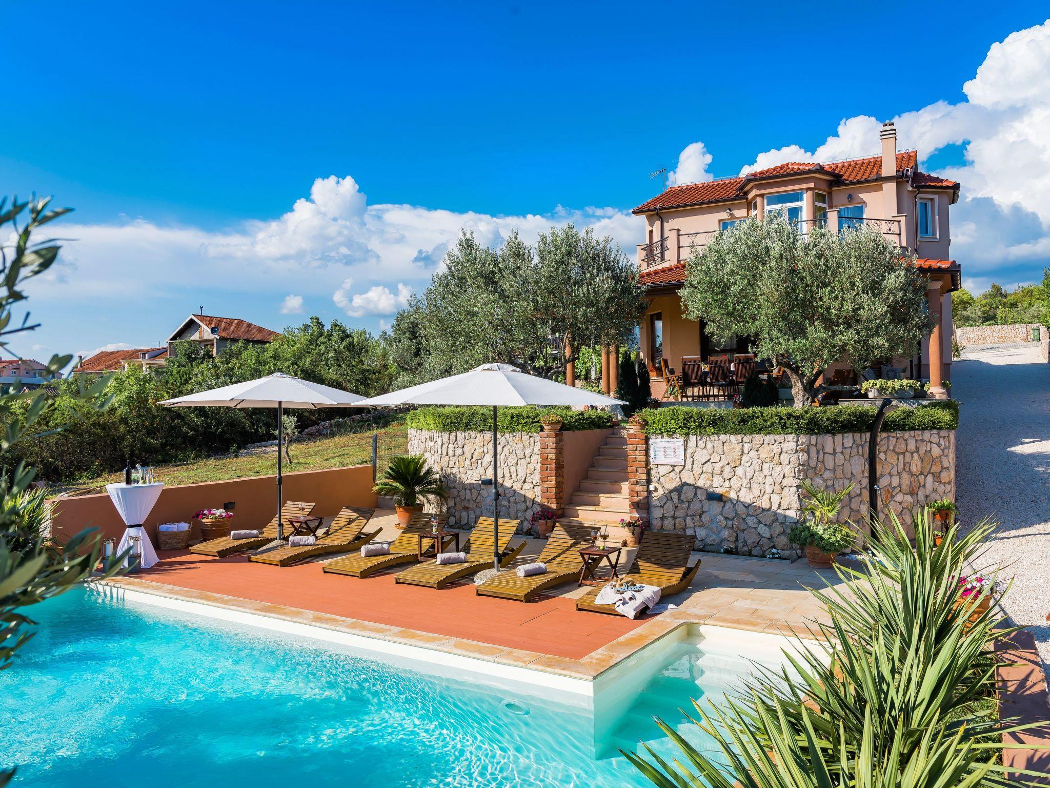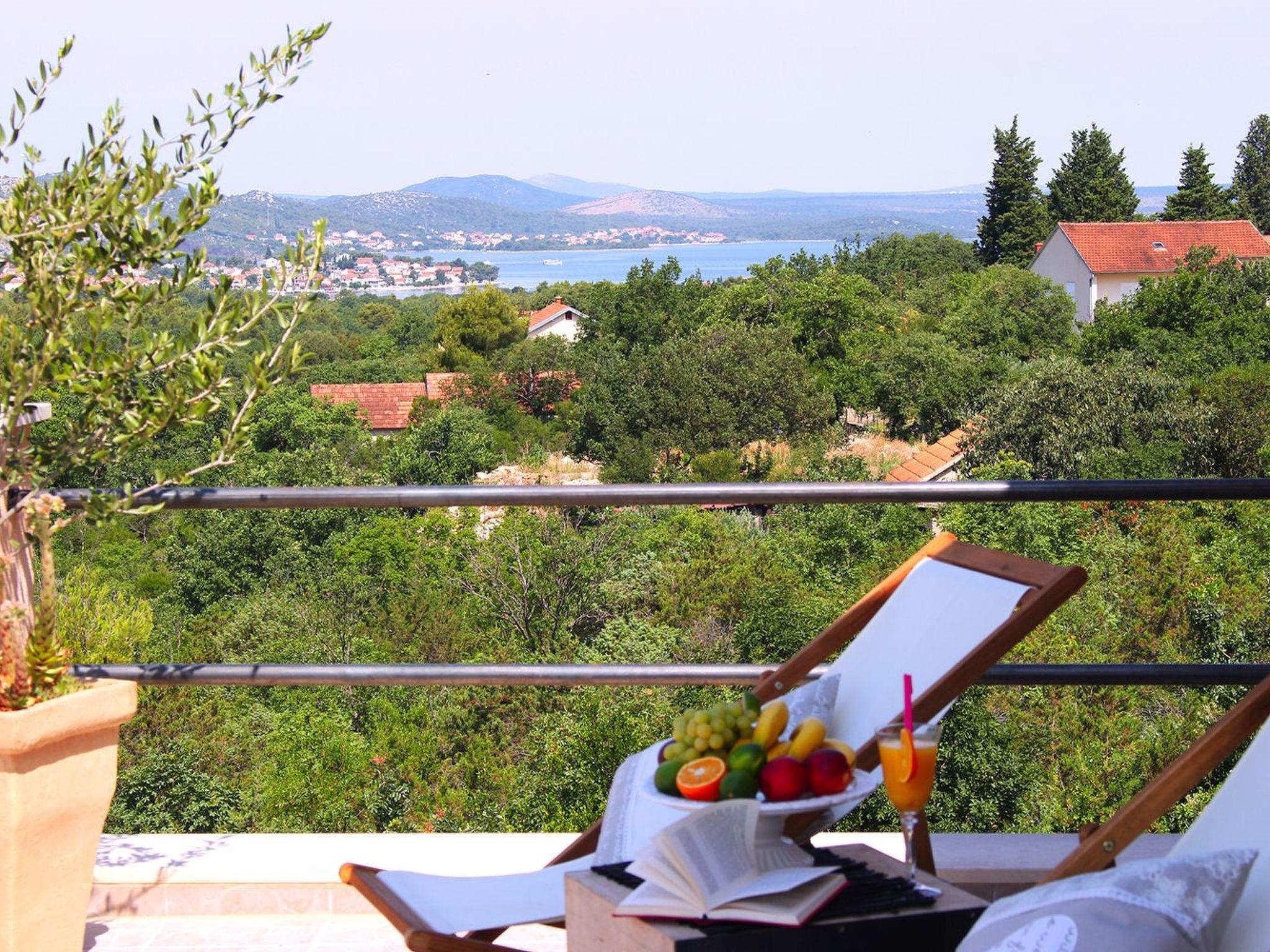 Restaurants, cafés, bars and shops for your daily needs are approx. 1 km away. With views of the sea and wooded nature, this luxurious holiday home is an ideal place for guests who want a relaxing holiday away from the hustle and bustle of the city, but close enough to the cultural and social life of Dalmatia. The nearest beach is approx. 800 metres away. Visit the historic town centre of Šibenik and the imposing Cathedral of St. James, approx. 4 km away. The scenically impressive Krka National Park with its thundering waterfalls is only about 6 km from your holiday accommodation. The small town of Vodice, approx. 12 km away, is known for its lively nightlife.
