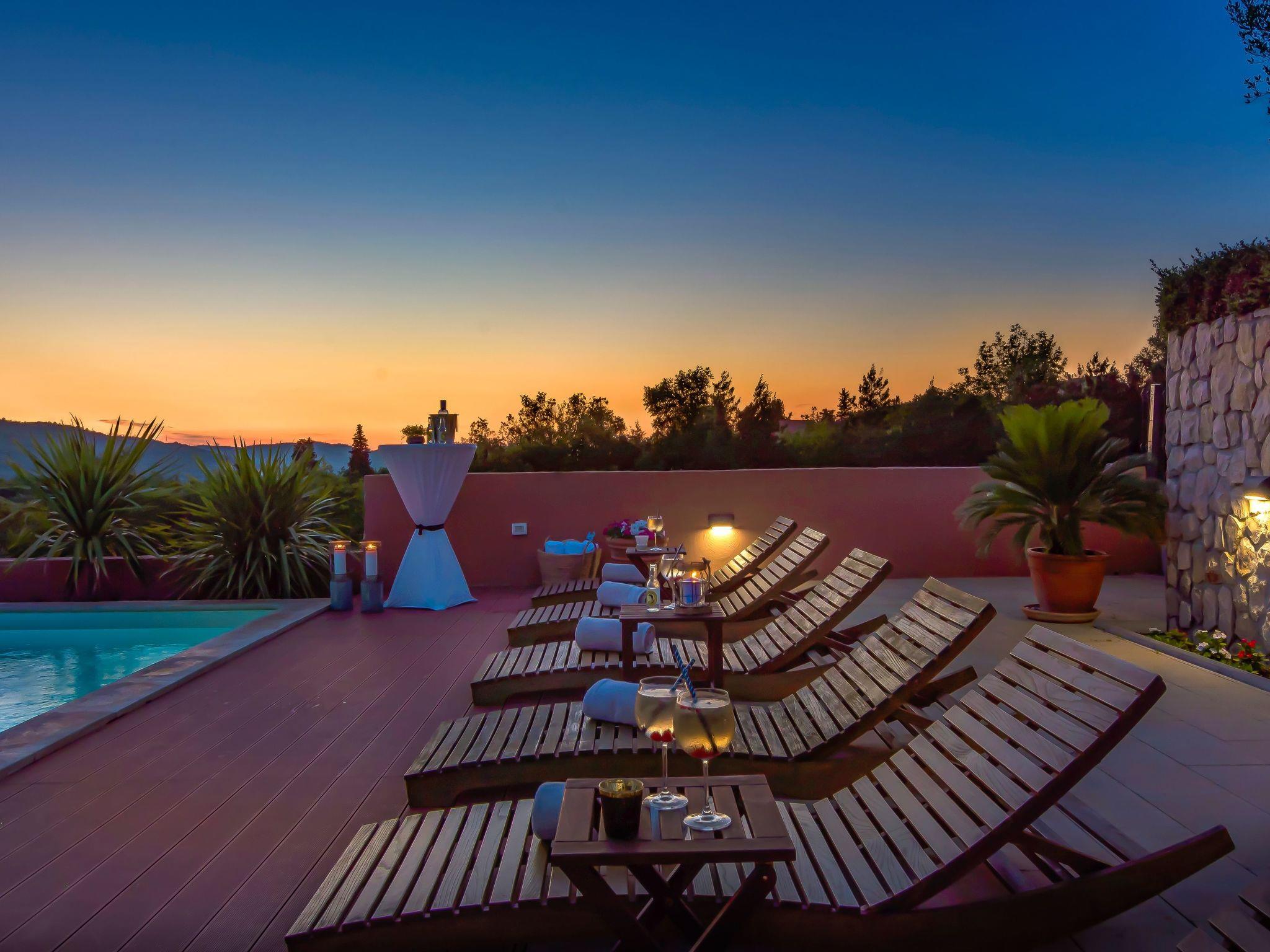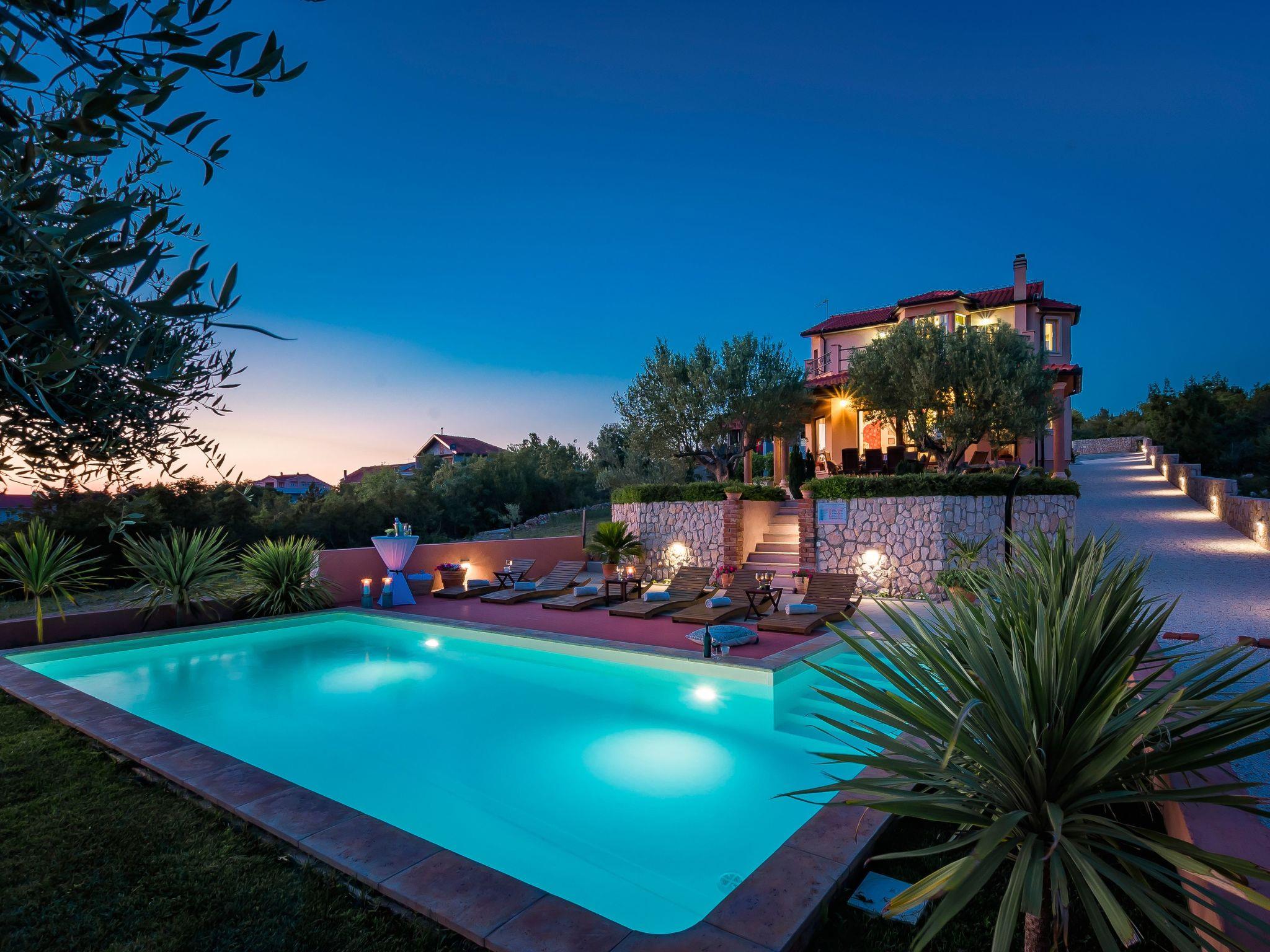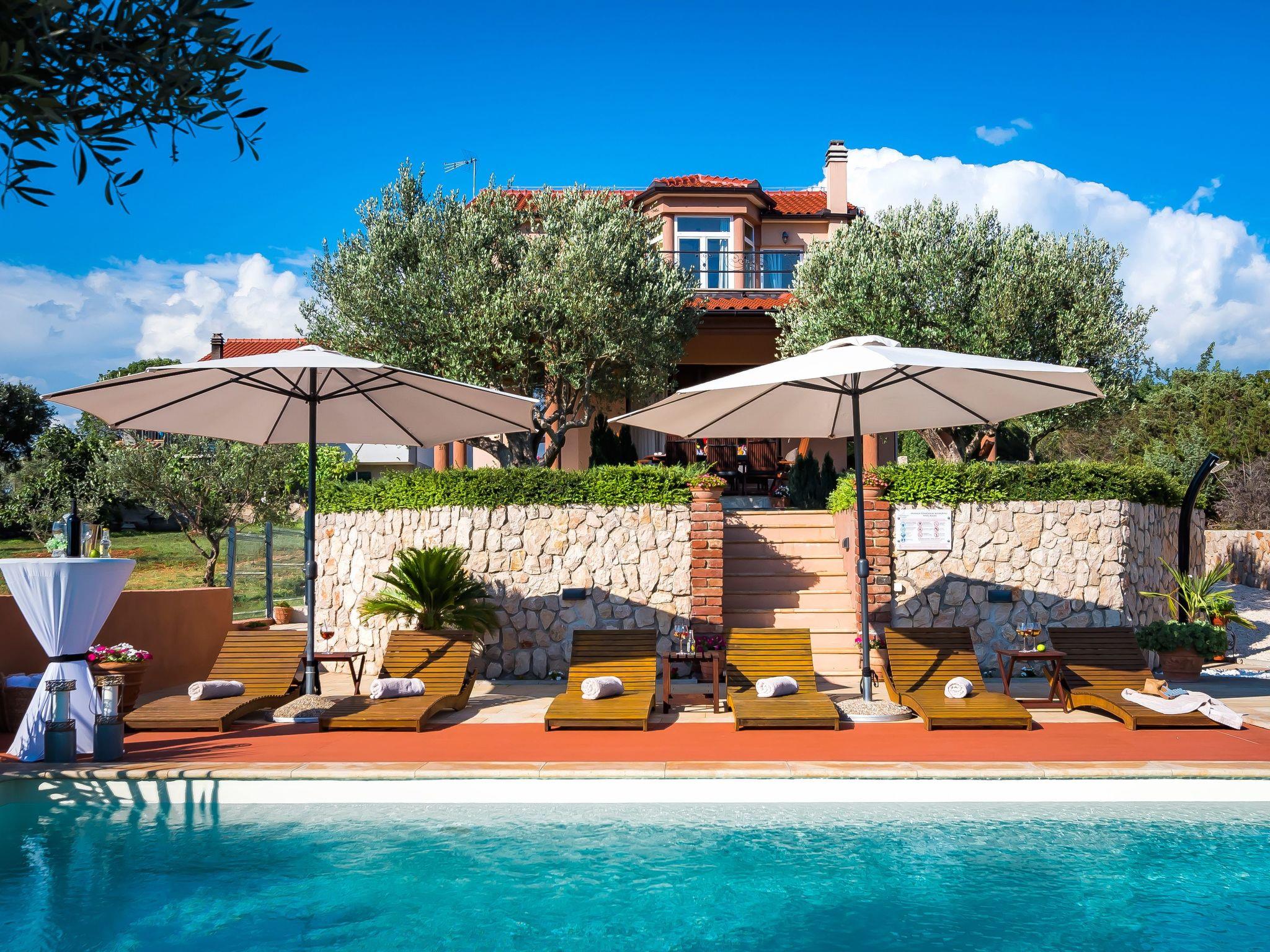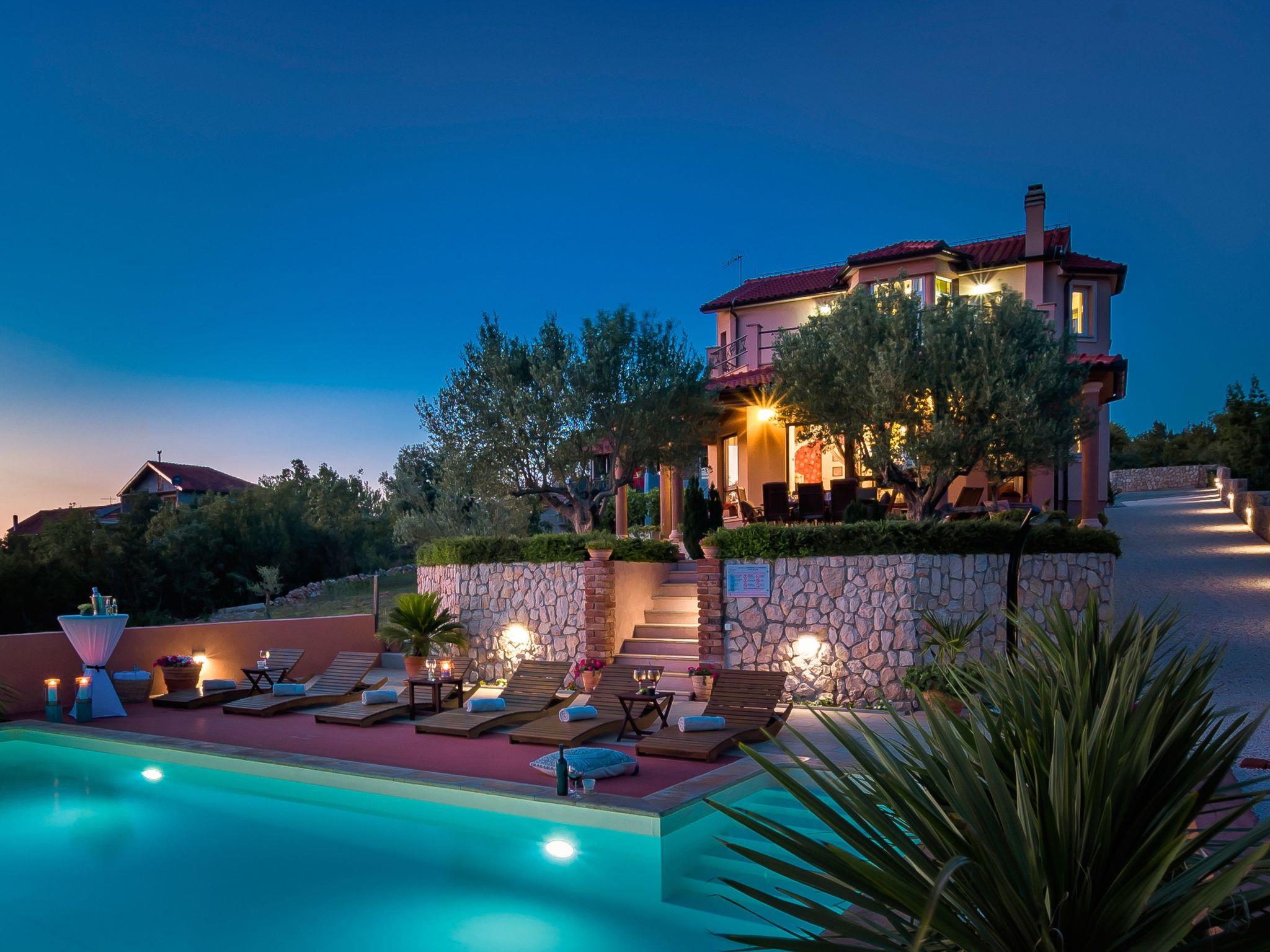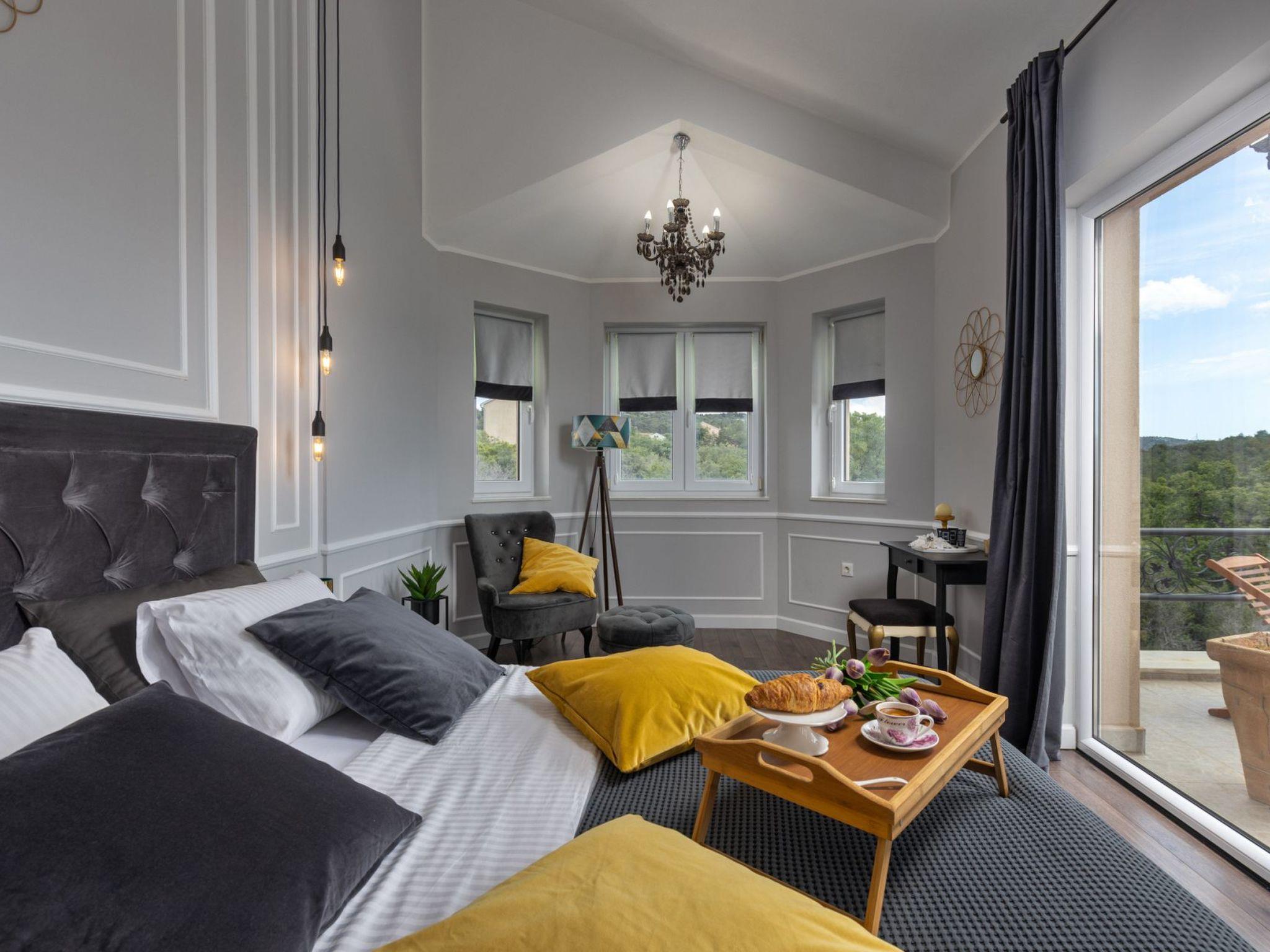 Restaurants, cafés, bars and shops for your daily needs are approx. 1 km away. With views of the sea and wooded nature, this luxurious holiday home is an ideal place for guests who want a relaxing holiday away from the hustle and bustle of the city, but close enough to the cultural and social life of Dalmatia. The nearest beach is approx. 800 metres away. Visit the historic town centre of Šibenik and the imposing Cathedral of St. James, approx. 4 km away. The scenically impressive Krka National Park with its thundering waterfalls is only about 6 km from your holiday accommodation. The small town of Vodice, approx. 12 km away, is known for its lively nightlife.