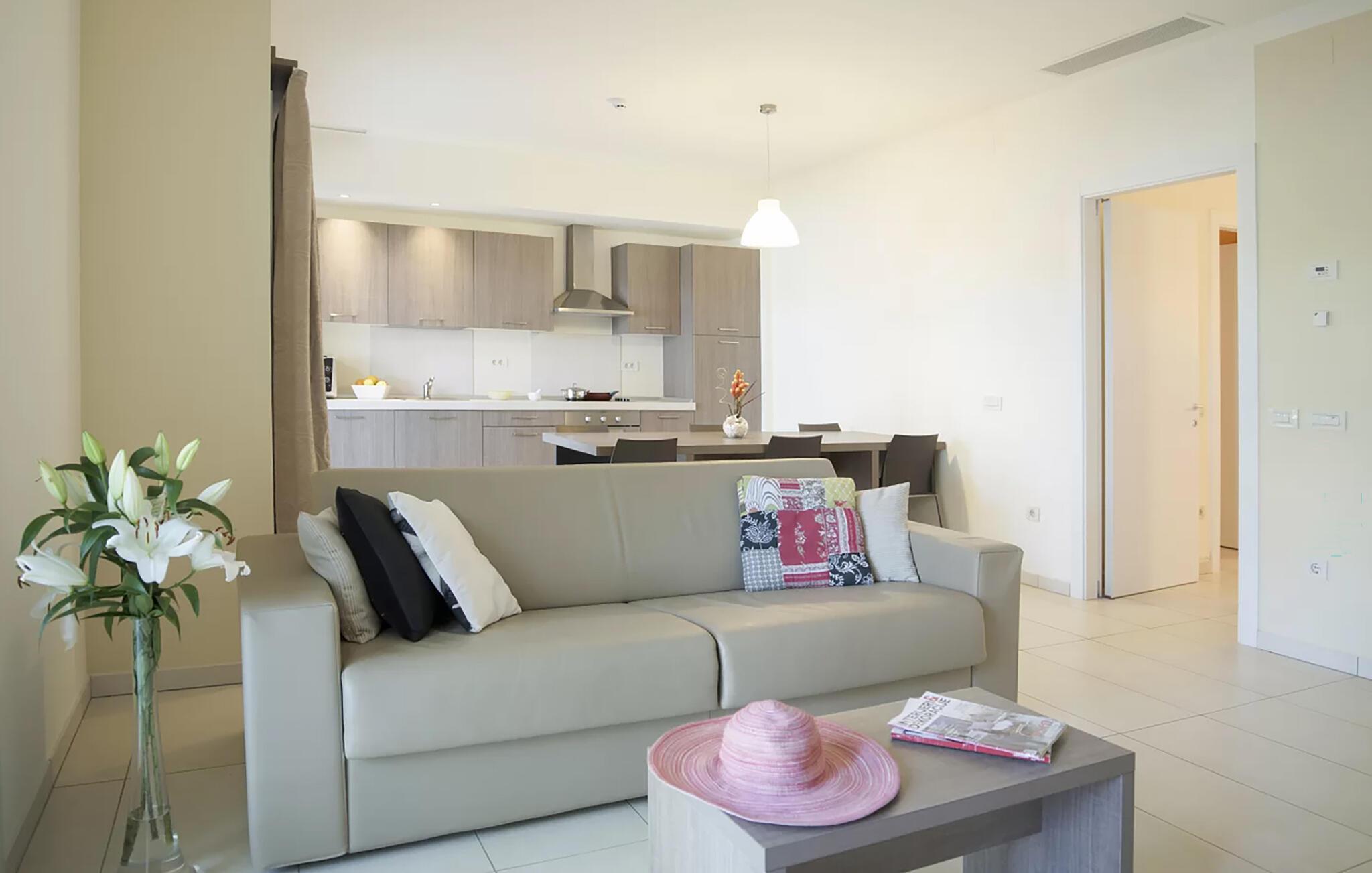 Nyd en ferie ved havet med base i denne komfortable ferielejlighed og få adgang til pools og wellnessfaciliteter.