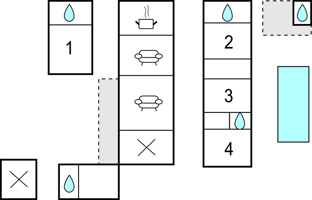 Badeværelse 4m2 (nr. 4) - WC. Varmt og koldt vand. Bruser