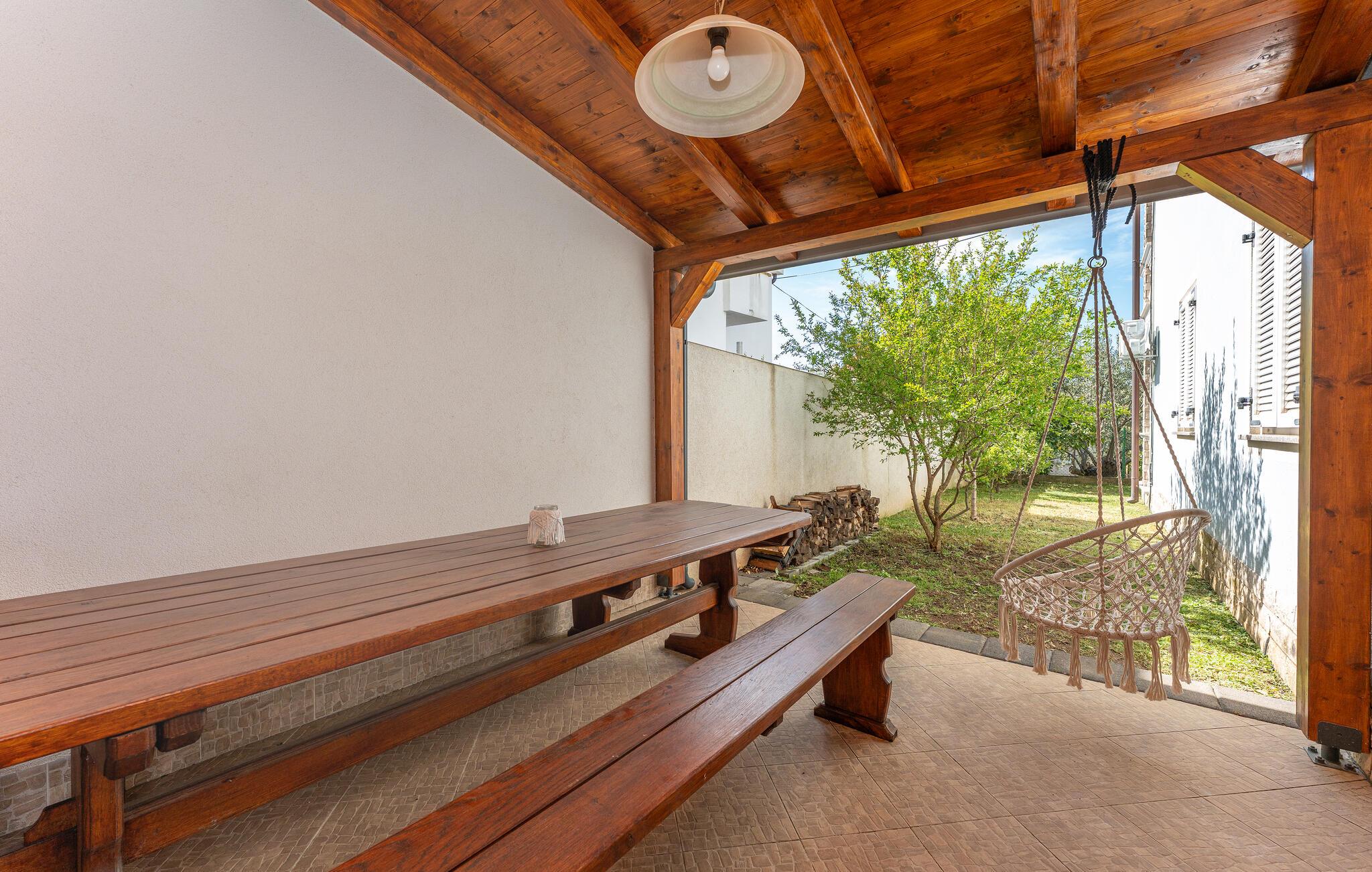 I dette indbydende lejlighed med havudsigt kan I og jeres familie se frem til afslappende feriedage fyldt med komfort og privatliv. Den lyse og praktiske indretning gør ferielejligheden ideel til storfamilier eller vennefamilier, som her kan skabe uforglemmelige minder sammen. Den grønne have med grillplads og terrassen indbyder til udendørs måltider og til at nyde den kroatiske sol. Efter en dag på den nærliggende strand kan I afslutte aftenen med en god middag under åben himmel.
