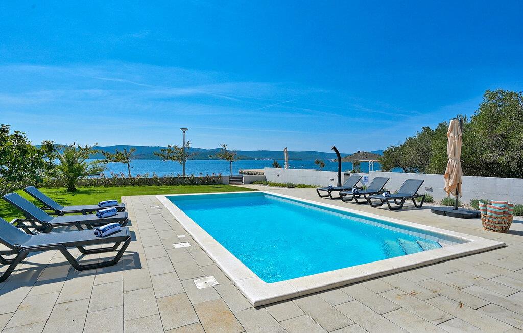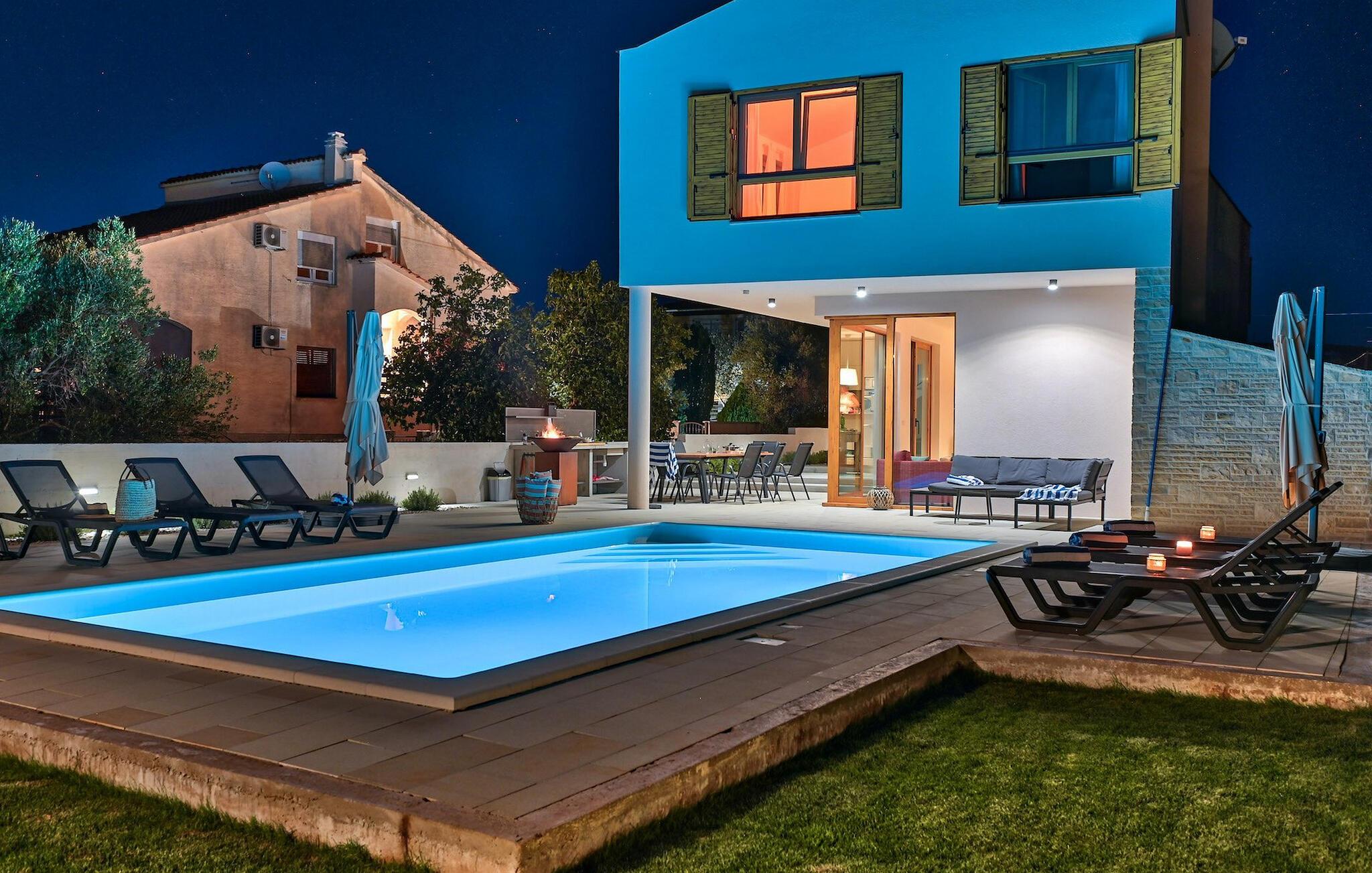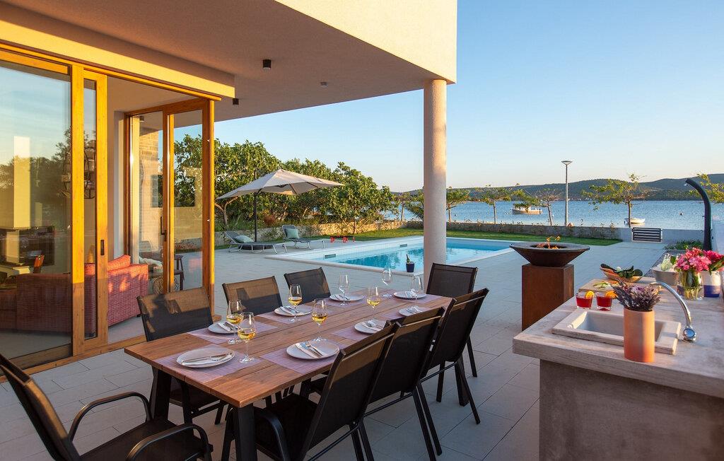 Glæd dig til en unik ferie på den kroatiske kyst med sol og sand. Det lyse hus er det ideelle feriested for dig og din familie, hvis I vil lave noget samt slappe af ved swimmingpoolen.