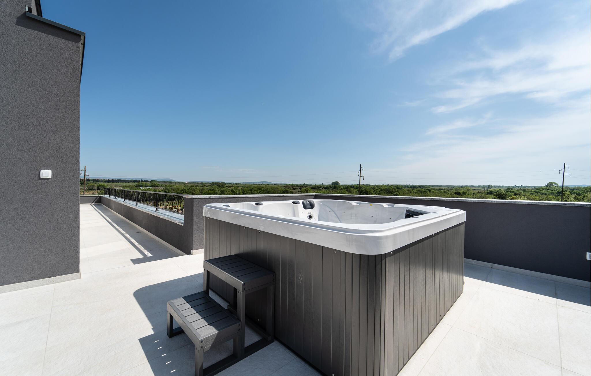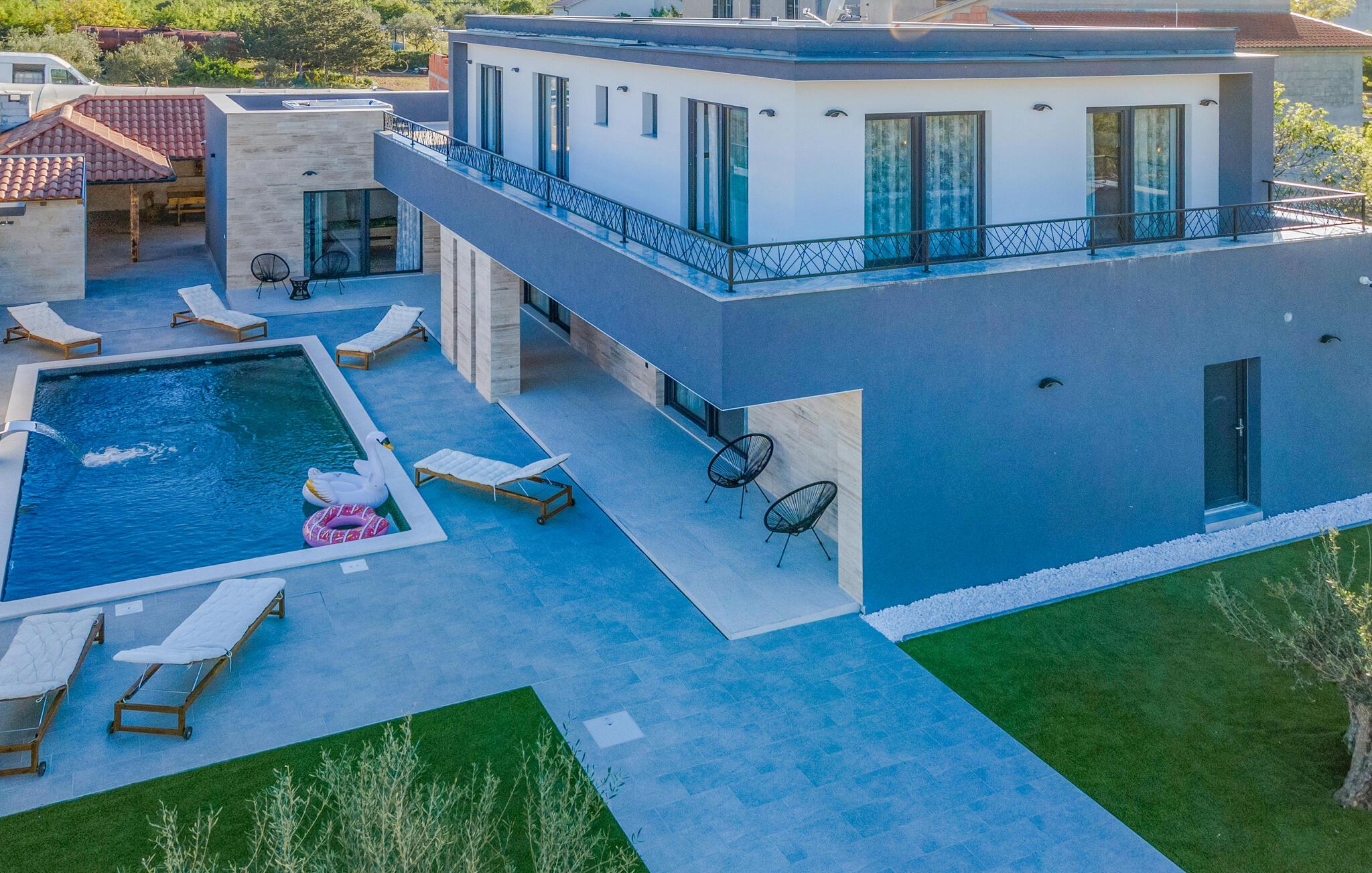 Velkommen til denne rummelige luksusvilla med swimmingpool og mange faciliteter i Biograds bagland.