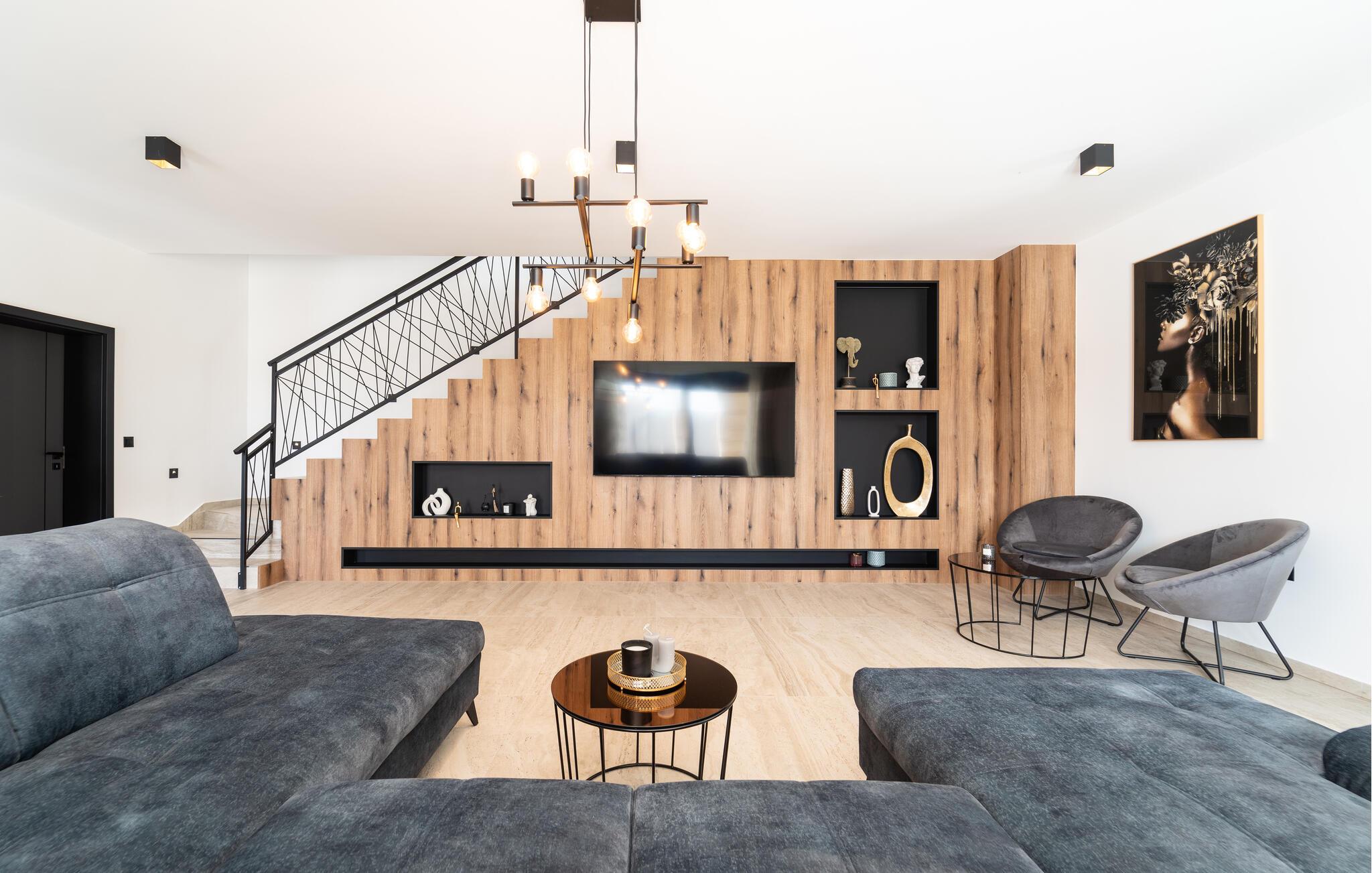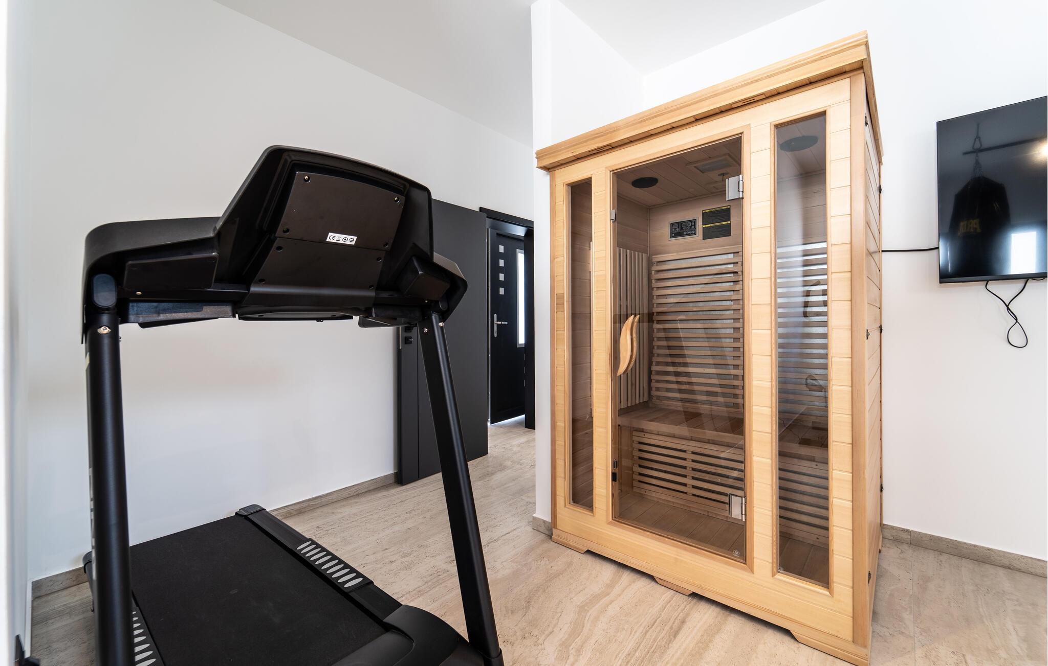 Hvis I er på udkig efter en ferie med sus, dus og masser af god komfort, er denne vidunderlige villa det helt rigtige valg for jer. Her venter jer, udover de mange kvadratmeter, en flot og stilsikker indretning og mange moderne faciliteter, der gør det nemt at sænke skuldrene og glemme hverdagens bekymringer med det samme, I ankommer. Køkkenet er stort og veludstyret, så lad blot familiens kokke tage sig god tid til madlavningen, mens andre duellerer i pool eller dart eller træner igennem i fitness-lokalet. Efter en aktiv feriedag er der få ting, der slår en ordentlig svedetur i den infrarøde sauna.