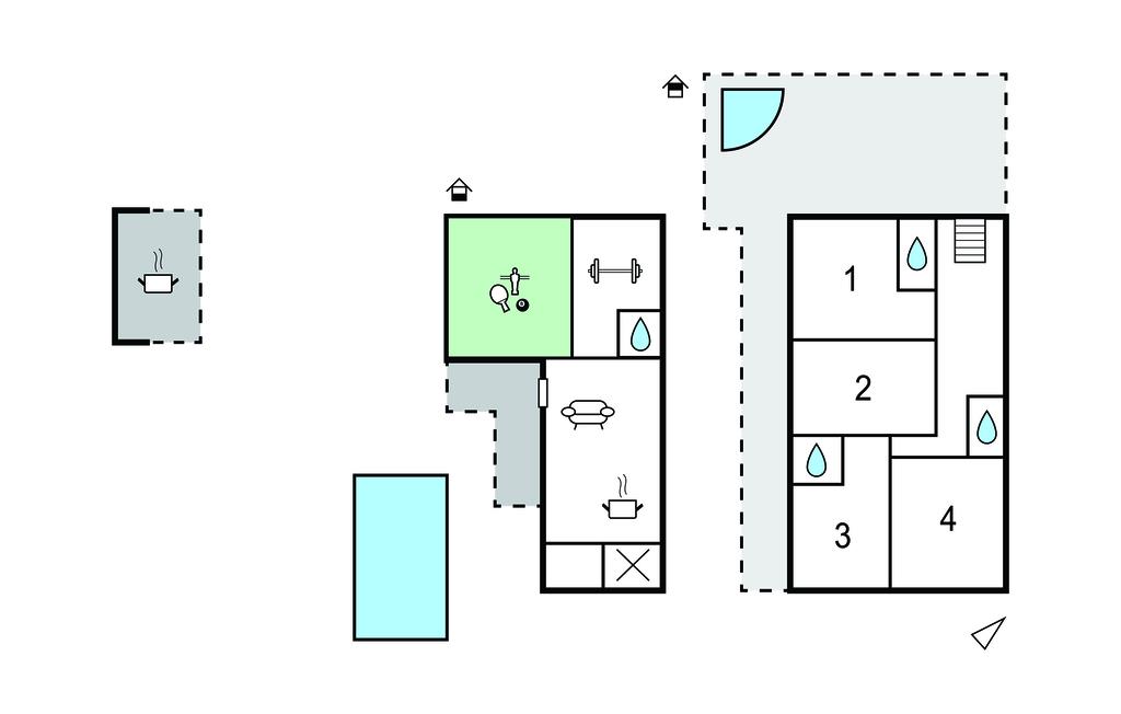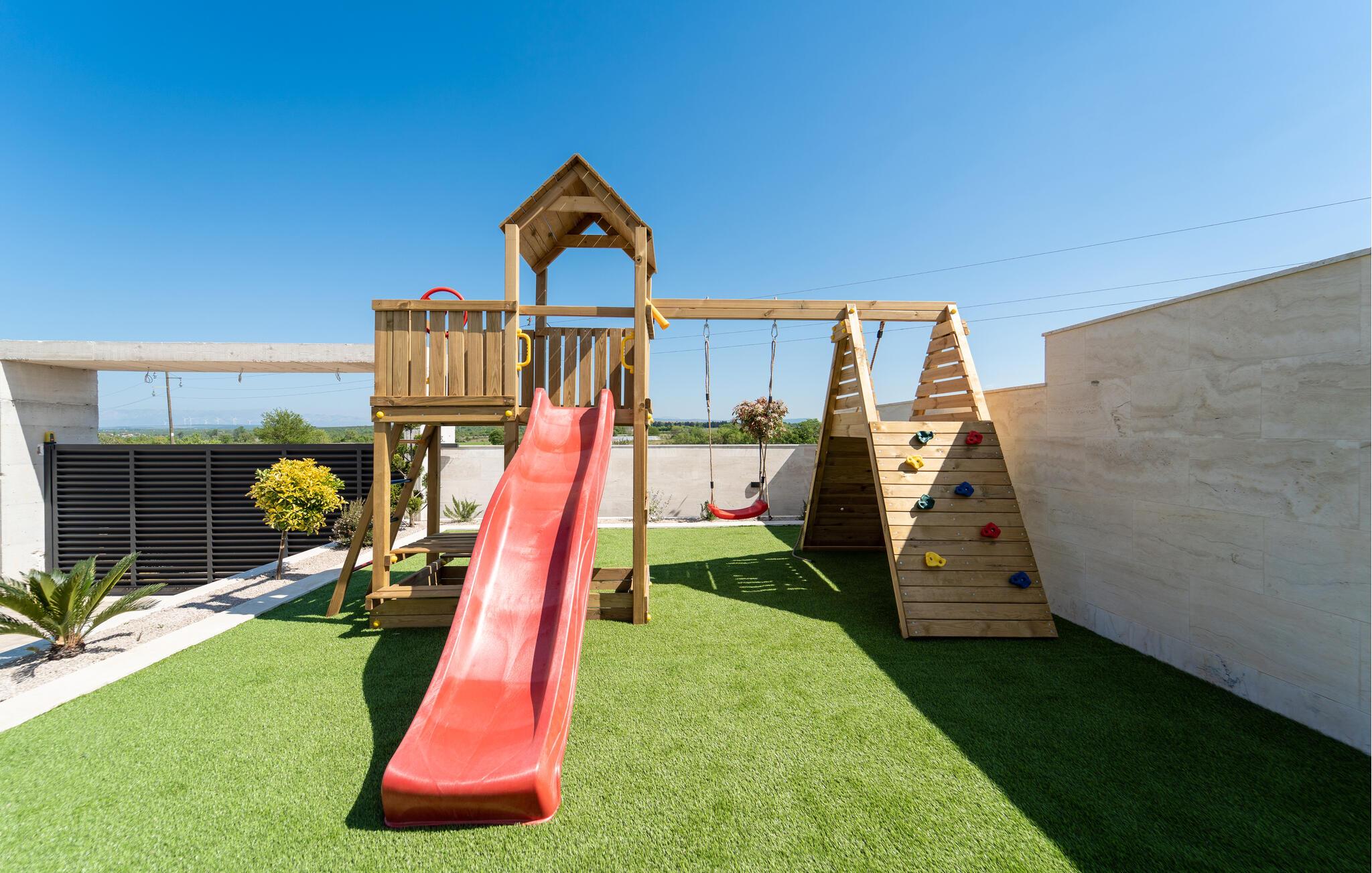 På de varme dage, og de bliver mange, kan I nyde solen i fulde drag på altanen eller terrassen fra morgen til aften. Når solen har bagt jer godt igennem, kan I køle jer af i poolen, og for børnene er der en veludstyret legeplads og en basketball-kurv, så ingen kommer til at kede sig. Lad en smuk sommerdag gå på hæld med saftige bøffer fra grillen og et godt glas vin, mens I lægger planer for de kommende dage.