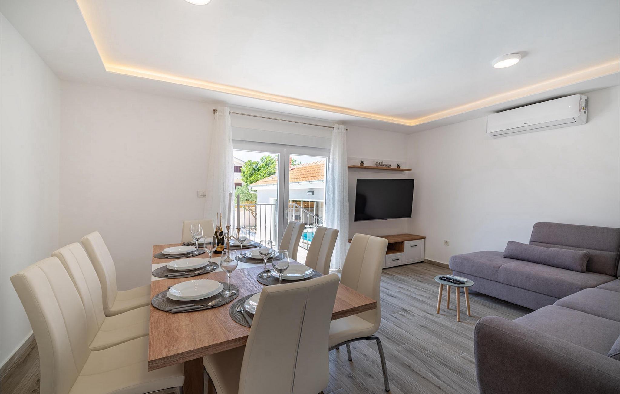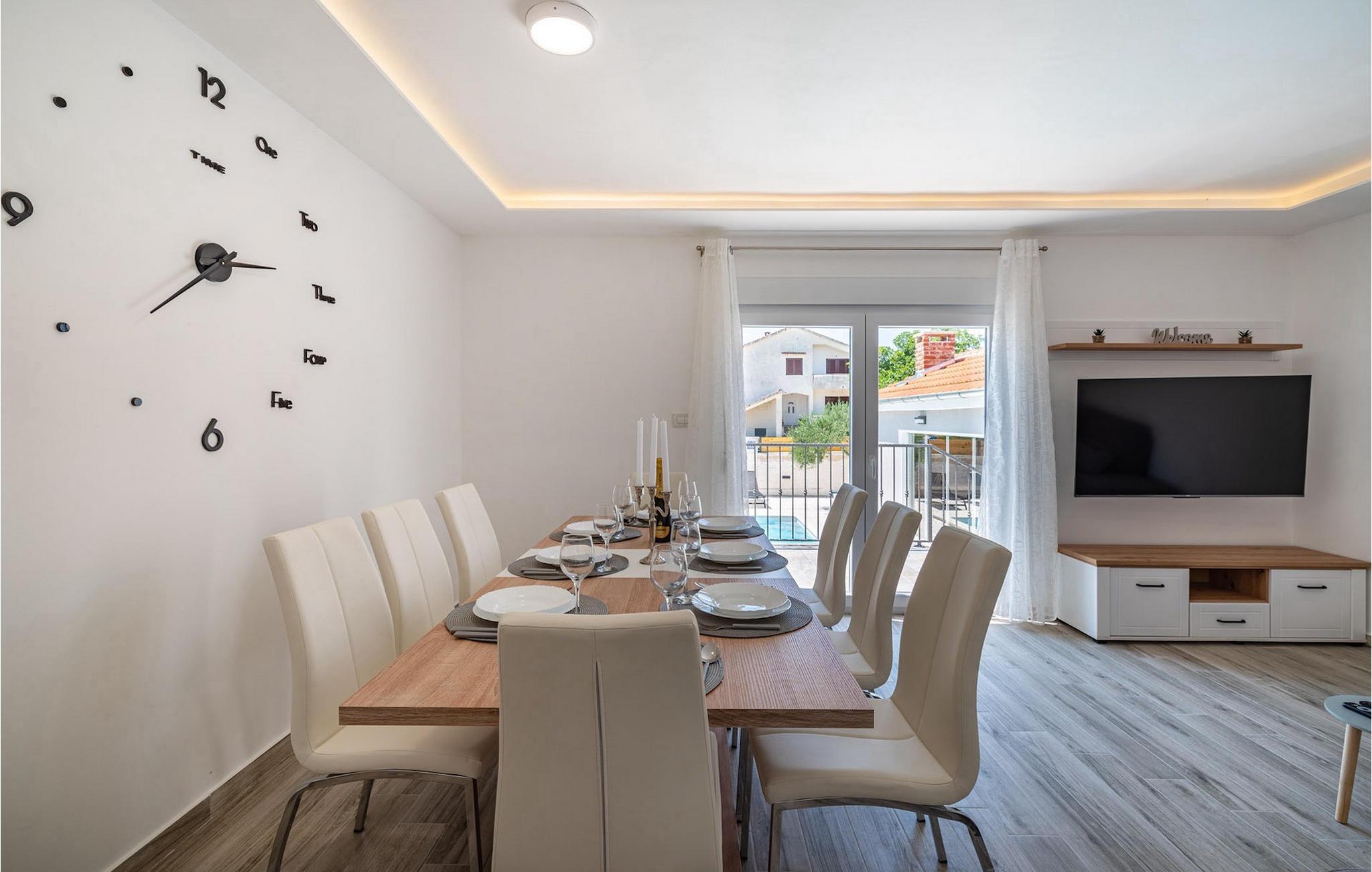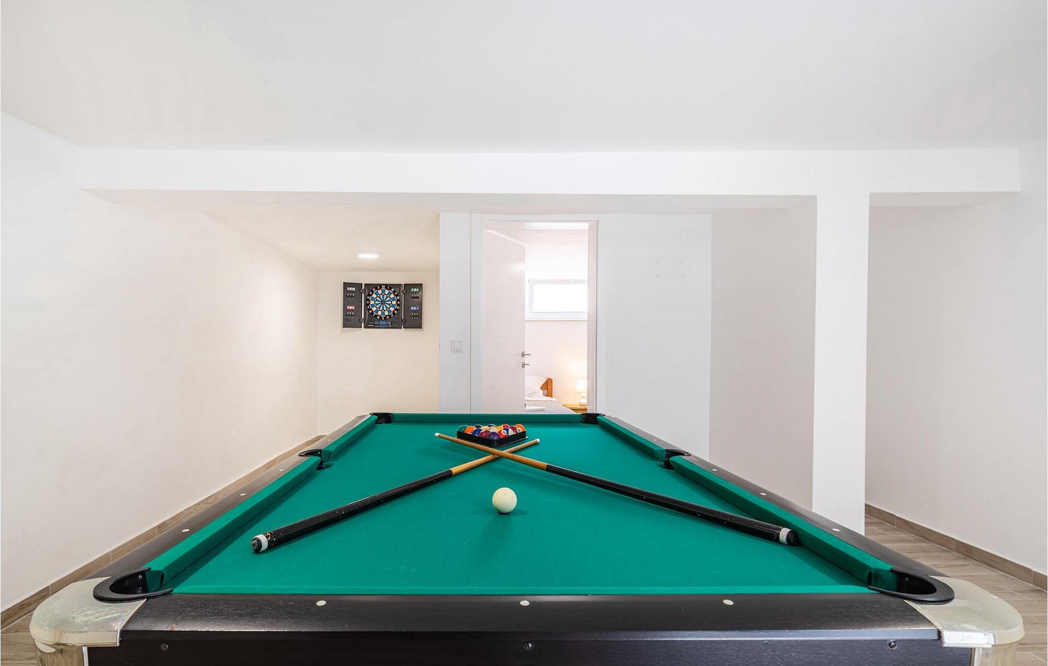 Villa Feniks, beliggende i landsbyen Polaca, er en ideel villa til en ferie med familien. Haven er fuldstændig indhegnet og vil give dig det ønskede privatliv under din ferie. Foran denne skønne villa er der en 32 kvadratmeter stor swimmingpool, hvor man kan forfriske sig fra sommervarmen. Hvis du er fan af solbadning, kan du slappe af i liggestolene ved poolen og nyde forfriskende drinks og interessant læsning. Ved poolen er der et overdækket område med udekøkken og et spisebord i træ med 8 siddepladser, hvor du kan nyde dalmatiske specialiteter tilberedt på grillen. Væk barnet i dig og hyg dig med familiens yngste medlemmer på trampolinen. Der skorter ikke på underholdning inde i villaen, hvor man kan spille billard eller dart i kælderrummet. Villaens indre vil heller ikke skuffe dig. I stueetagen af villaen er der et køkken med alt nødvendigt for at tilberede måltider, et åbent rum med en hyggelig stue og en spisestue. På første sal i villaen er der et badeværelse, et soveværelse med dobbeltseng, et andet soveværelse, der også har en dobbeltseng, og et tredje soveværelse med en køjeseng, som helt sikkert vil være en favorit blandt de yngste gæster. Soveværelserne på første sal har tv og aircondition. I villaens kælder er der et fjerde soveværelse med to enkeltsenge og aircondition. En ferie i Villa Feniks vil genoplive og forfriske dig. Gå ikke glip af en sjov familieferie i den dalmatiske atmosfære i Polaca. Villa Feniks ligger i Polaca, nær byen Biograd na moru. Det er beliggende i området Ravni Kotar, kendt for sine autoktone Maraska-kirsebær og agriturisme. Besøg Vrana Lake Nature Park, hjemsted for den største naturlige sø og et af de største vådområder i Middelhavets Kroatien. Der er 95 arter beskyttet ved lov i parkens område. Den gamle bydel i Vrana blev bygget i umiddelbar nærhed af søen i middelalderen. Benediktinerklosteret blev senere brugt af tempelridderne, og insignierne - symboler på det kroatiske kongeriges magt - blev holdt inde i murene i lang tid. Tag til turistcentrene Biograd na Moru og Pakoštane. Pakoštane er beliggende i centrum af Dalmatien med mange kulturelle og historiske seværdigheder såsom kirkerne St. Justin, St. Michael, St. Roka og lokale festligheder såsom karneval, sommerlege. Biograd na moru er et velkendt yndet sommerferiested med smukke sandstrande, og for historieelskere kan du besøge Biograd-museet. Besøg talrige øer såsom Pašman, Galesnjak og NP Kornati. En uundgåelig destination er Zadar, Kroatiens kulturelle og historiske vugge, berømt for kirken St. Donata, St. Stošija og St. Mary, Skt. Šimunas kiste, hovedgaden Kalelarga, Havorgel og en hilsen til solen.
