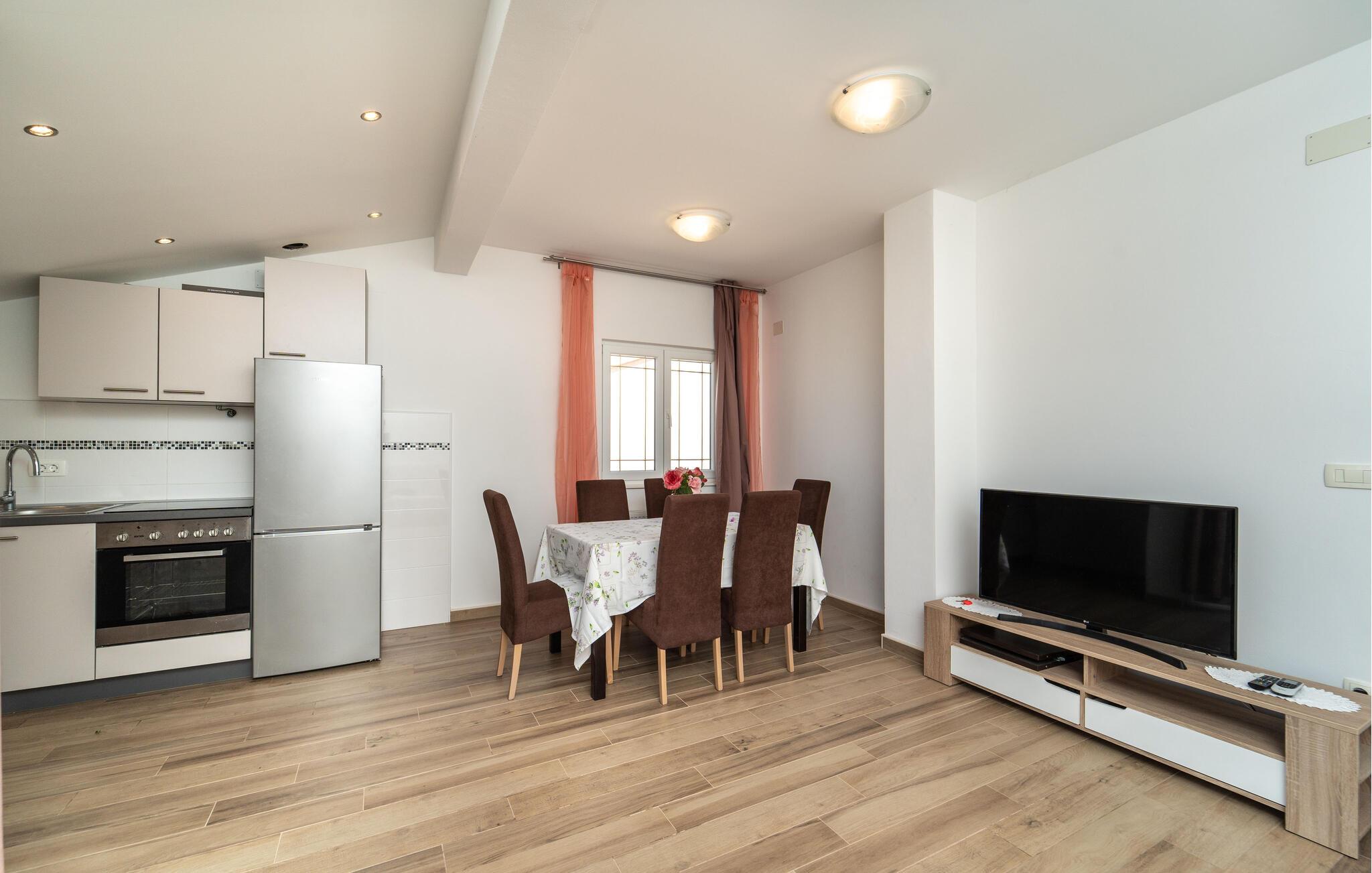 Rejs med familien til Biograd na Moru, og opdag denne dejlige ferielejlighed. Den attraktive indretning og det indbydende miljø skaber en oase af velvære, hvor I straks vil føle jer hjemme. Det lyse, åbne opholdsområde med det veludstyrede køkken byder på alt, hvad I behøver for et afslappende ophold.
