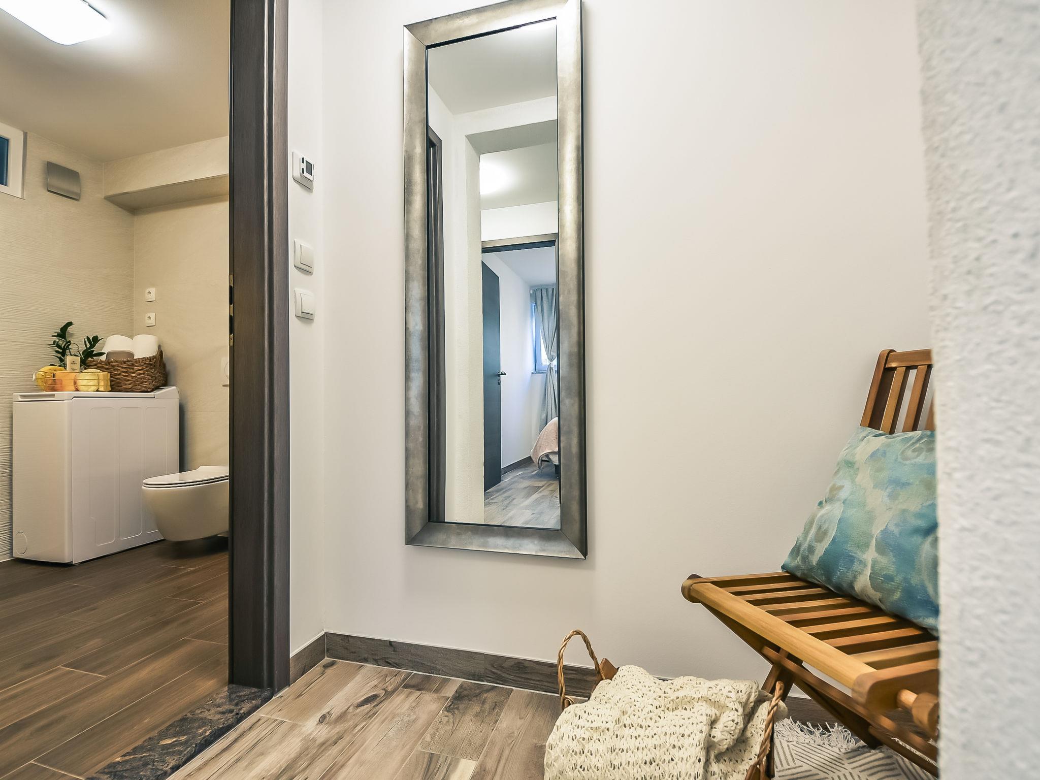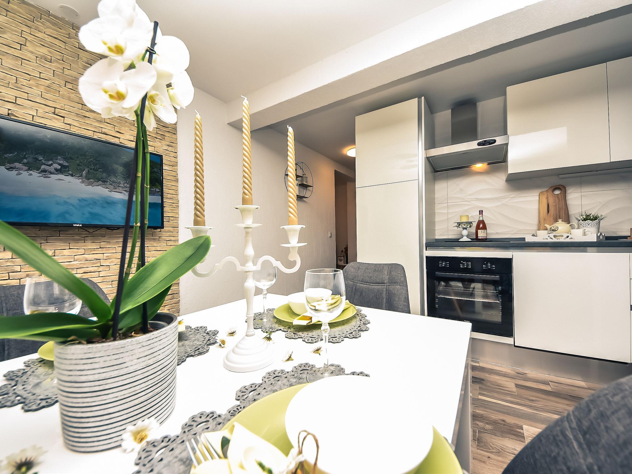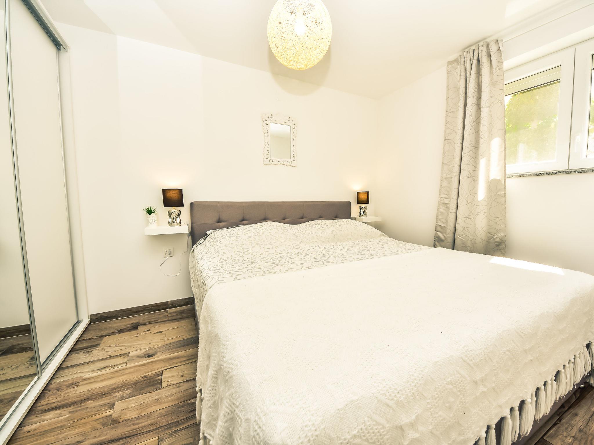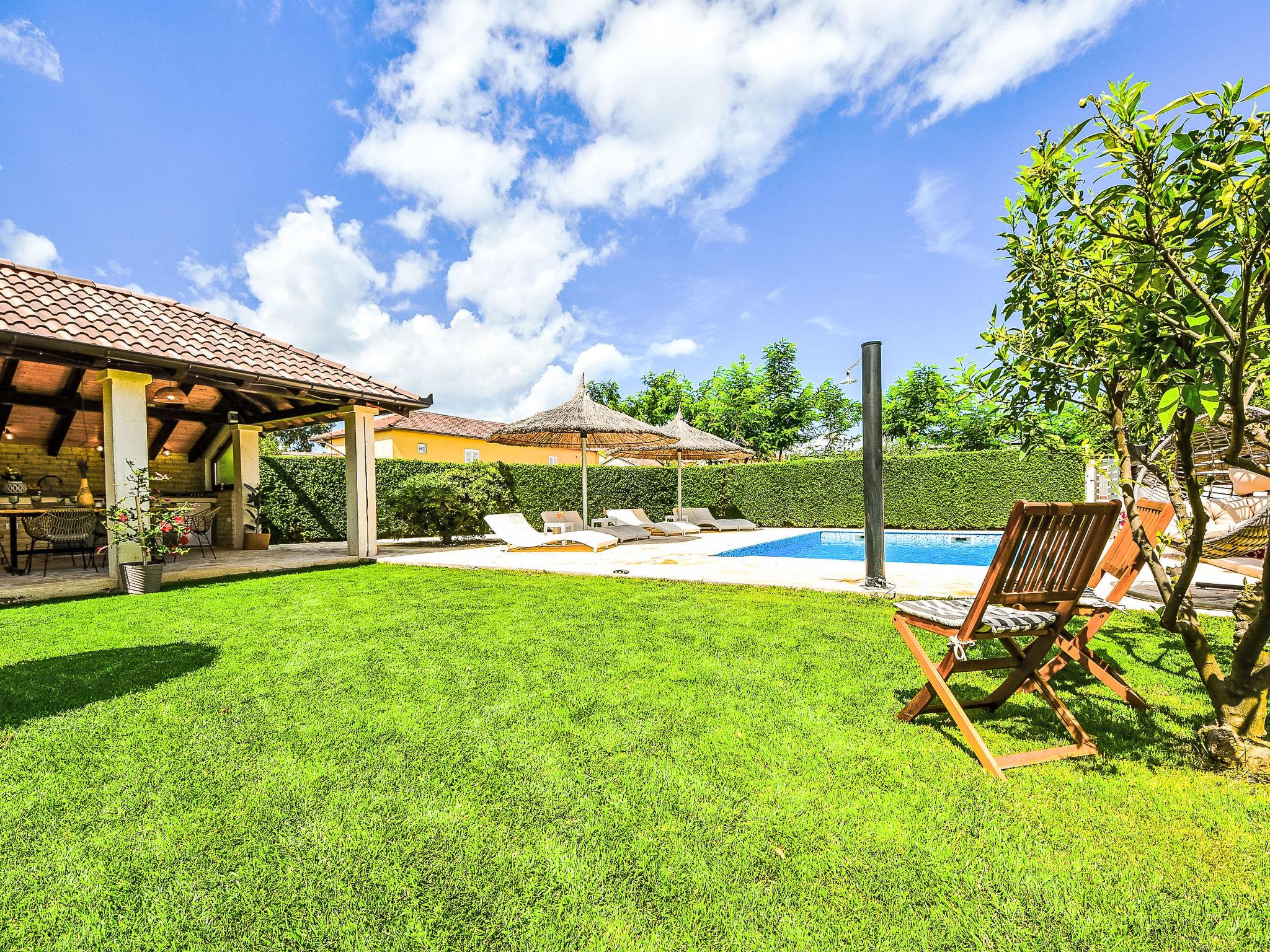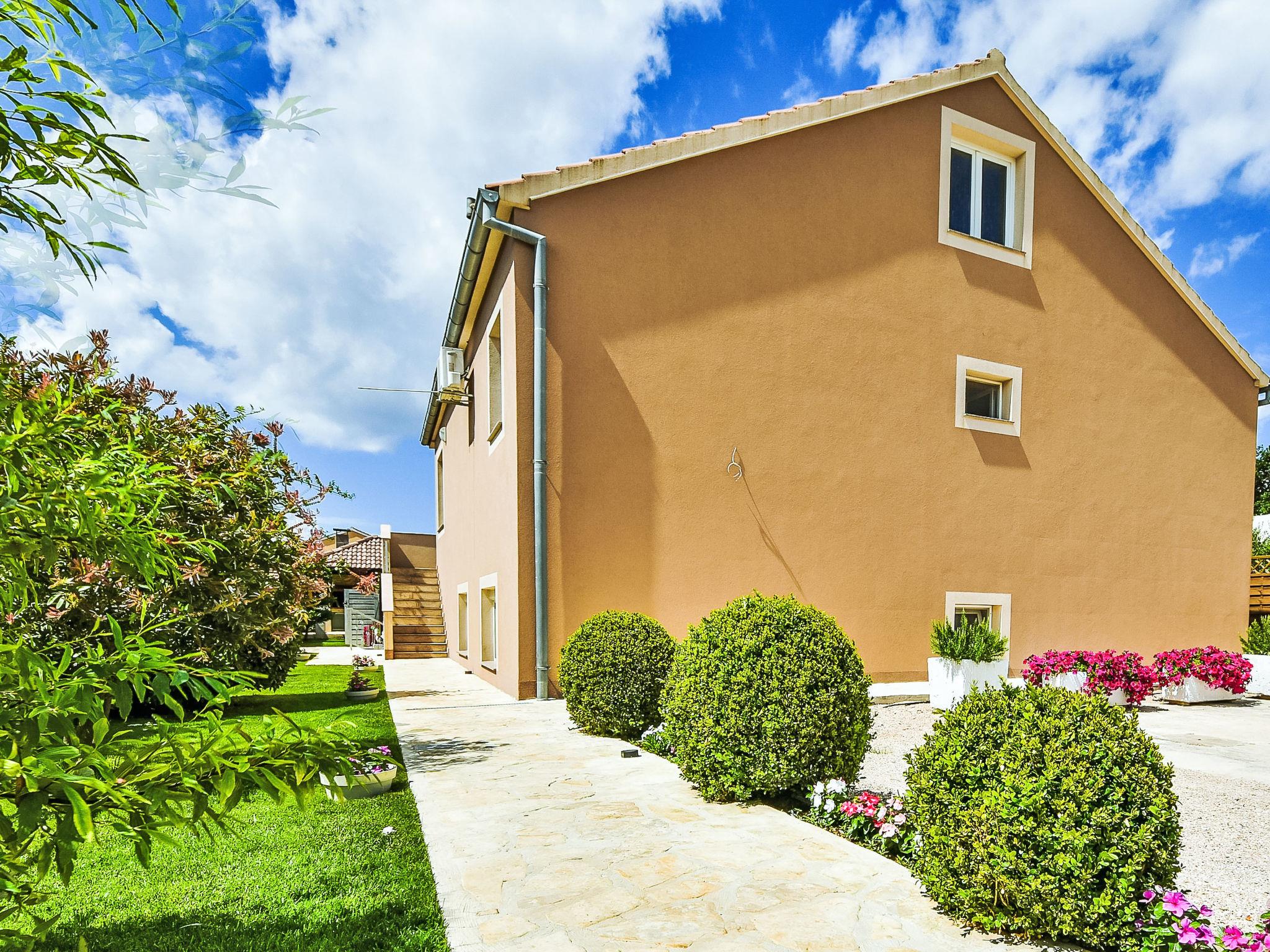 3-family house "Petra". 2 km from the centre of Biograd na Moru, in a quiet, sunny position, 2.5 km from the sea, 2.5 km from the beach. For shared use: property 1'000 m2 (fenced) with lawn and plants, swimming pool angular (8 x 4 m, depth 140 cm, seasonal availability: 01.May. - 01.Oct.) with internal staircase. Outdoor shower, garden furniture, barbecue. In the house: internet access. Parking at the house on the premises. Shop 500 m, restaurant 1 km, bus stop 700 m, pebble beach 2.5 km. Tennis 2.5 km. Nearby attractions: amusement park 2.5 km.