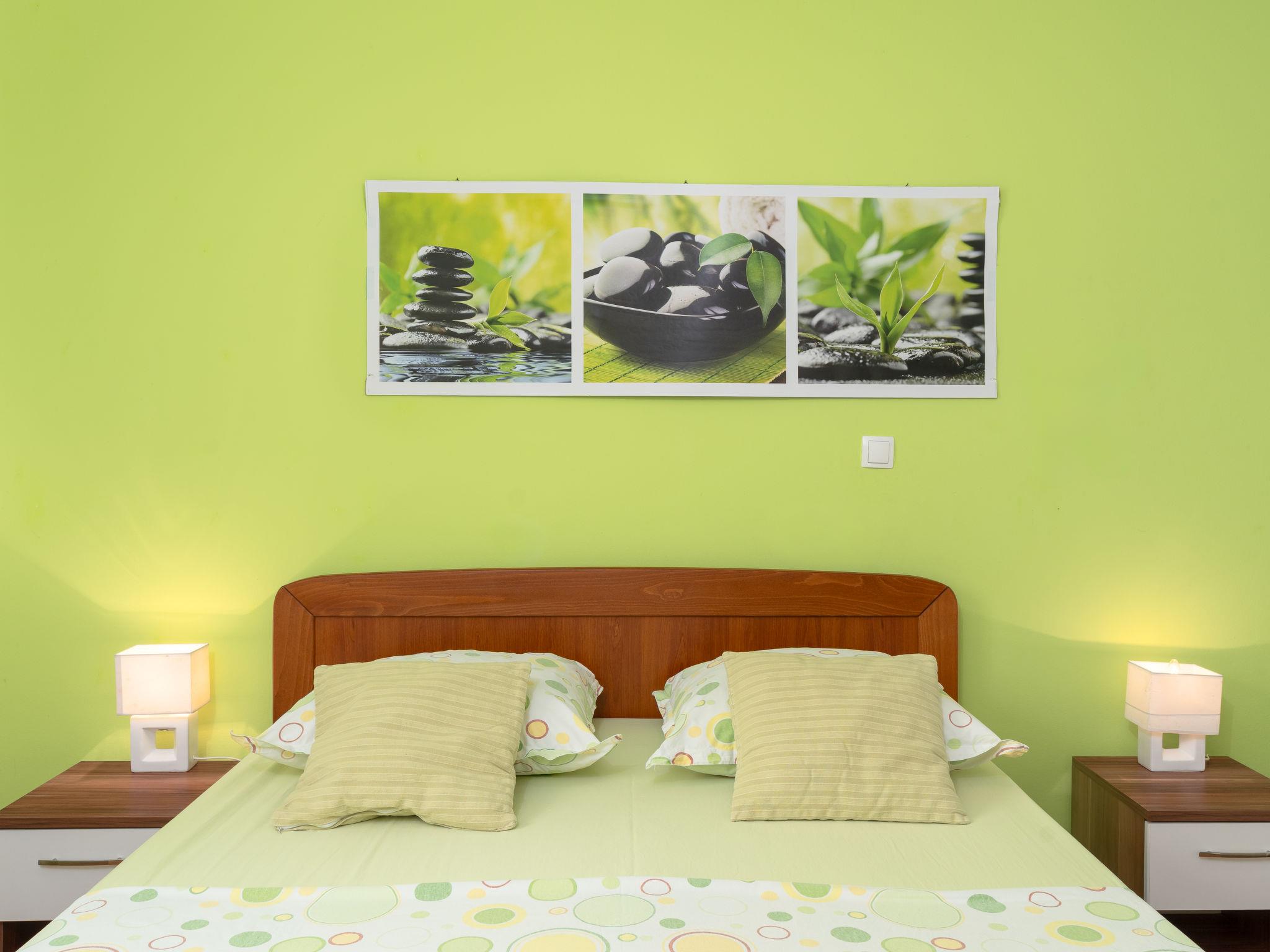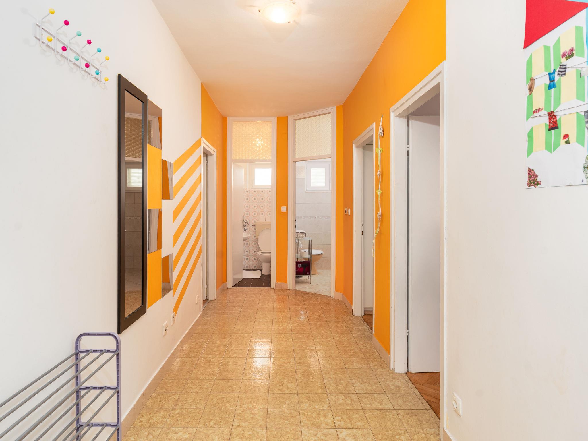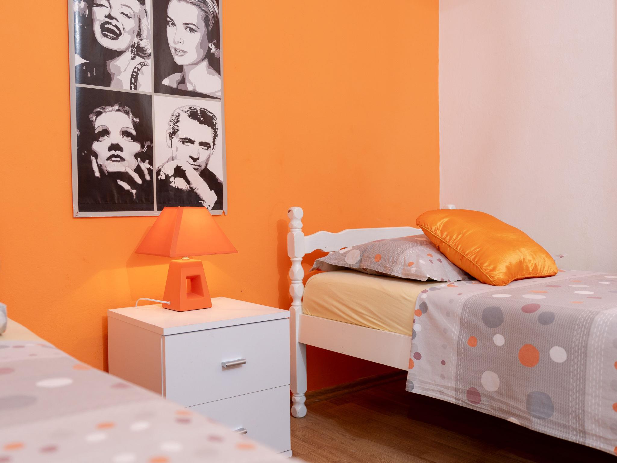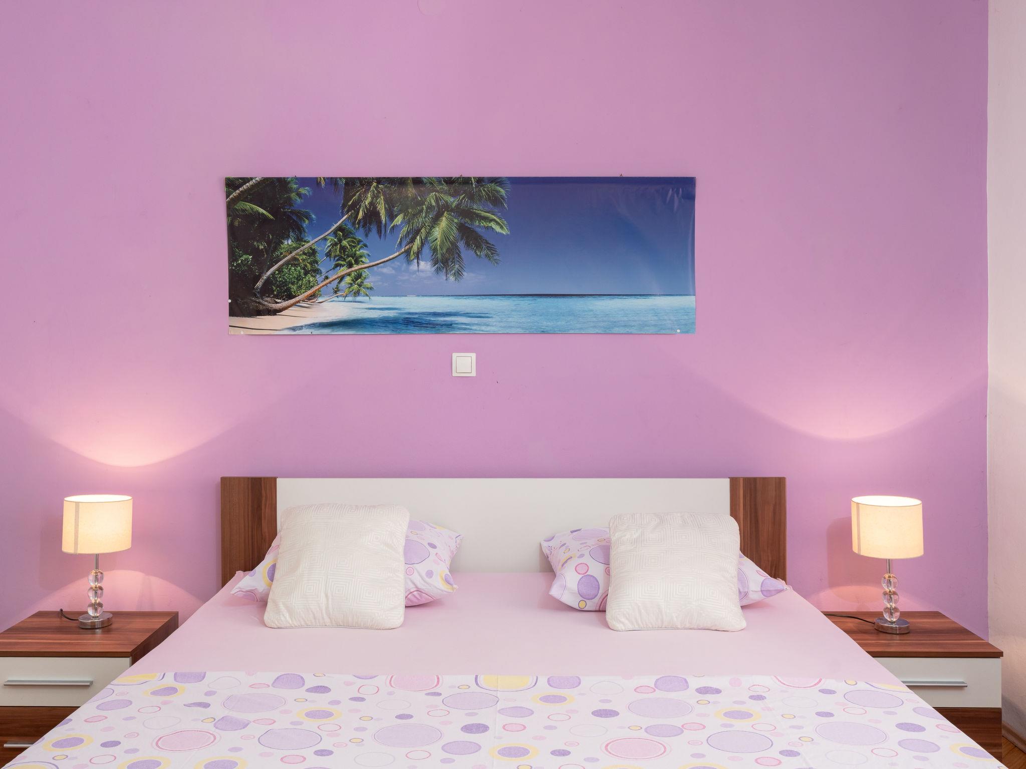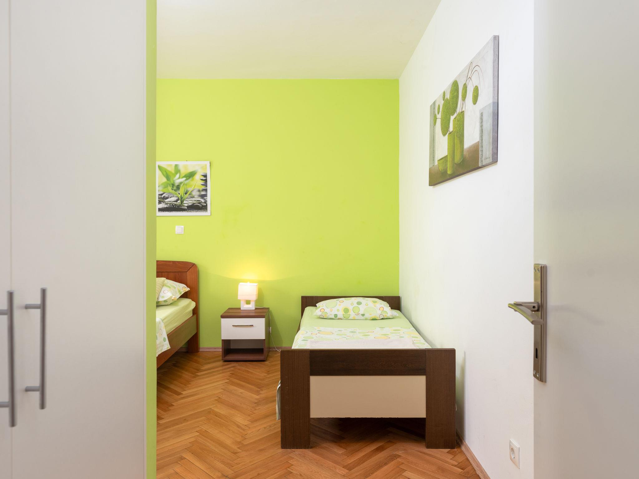 "Vjera", 4-room apartment 83 m2, on the ground floor. Living/dining room with satellite TV and air conditioning. Exit to the terrace. 1 room with 1 bed (90 cm, length 200 cm), 1 french bed (160 cm, length 200 cm). 1 room with 2 beds (90 cm, length 200 cm). 1 room with 1 double bed (2 x 90 cm, length 200 cm). Open kitchen (1 hot plate, oven, dishwasher, 3 gas rings, toaster, kettle, microwave, electric coffee machine). Shower/WC, sep. WC. No heating option. Terrace 25 m2 partly roofed. Terrace furniture, deck chairs. Facilities: washing machine. Internet (WiFi, free). Please note: non-smoking house.