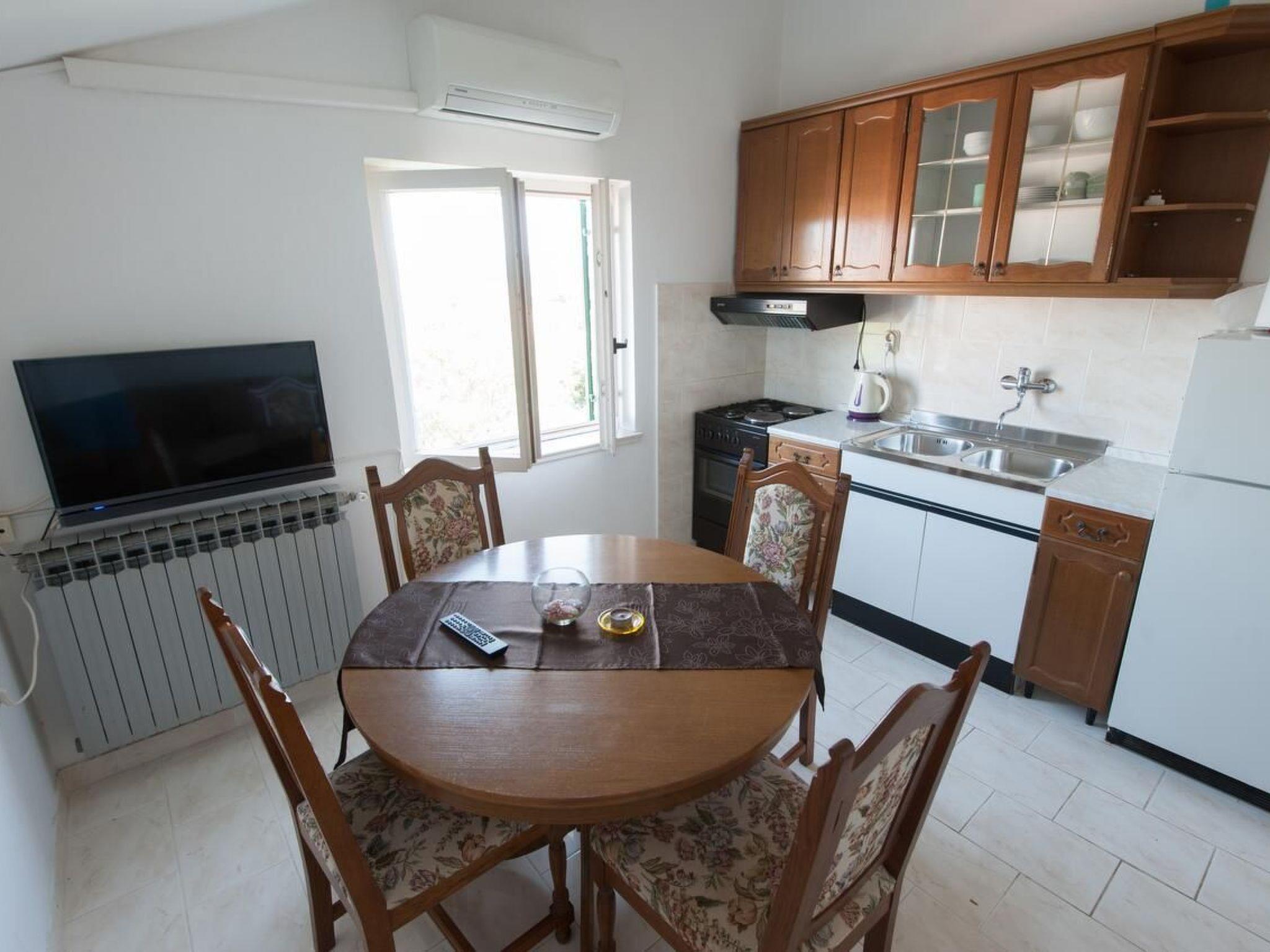 Step outside to discover a shared garden, an oasis of tranquility for communal use where you can immerse yourself in the laid-back Dalmatian lifestyle. The apartment benefits from both a balcony and a terrace, offering versatile outdoor spaces for relaxation or dining al fresco. These spots are ideal for unwinding after a day of exploration or simply enjoying the company of your travel companions in the fresh air.