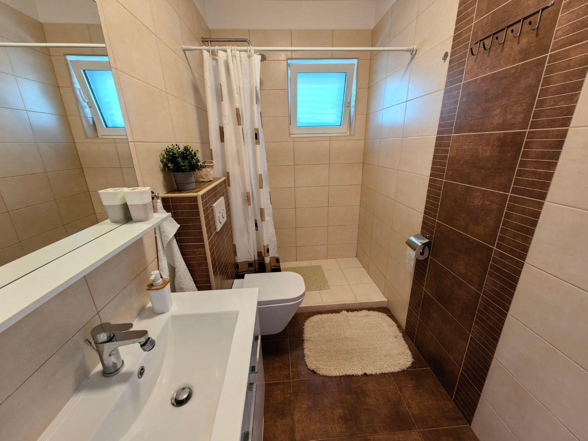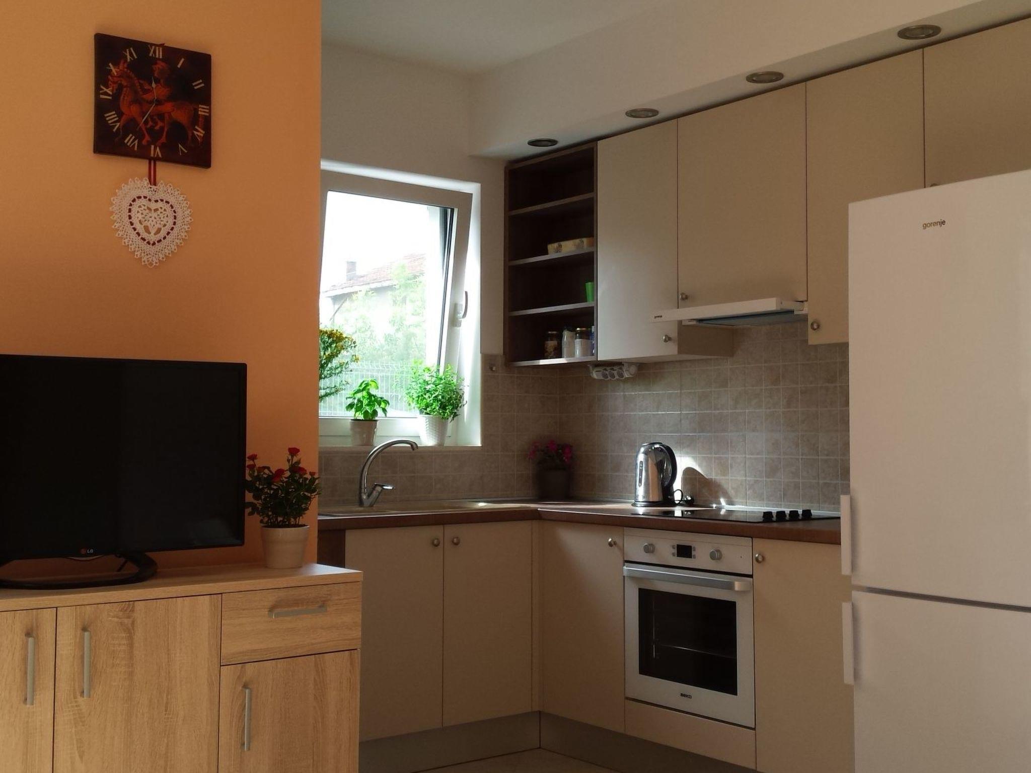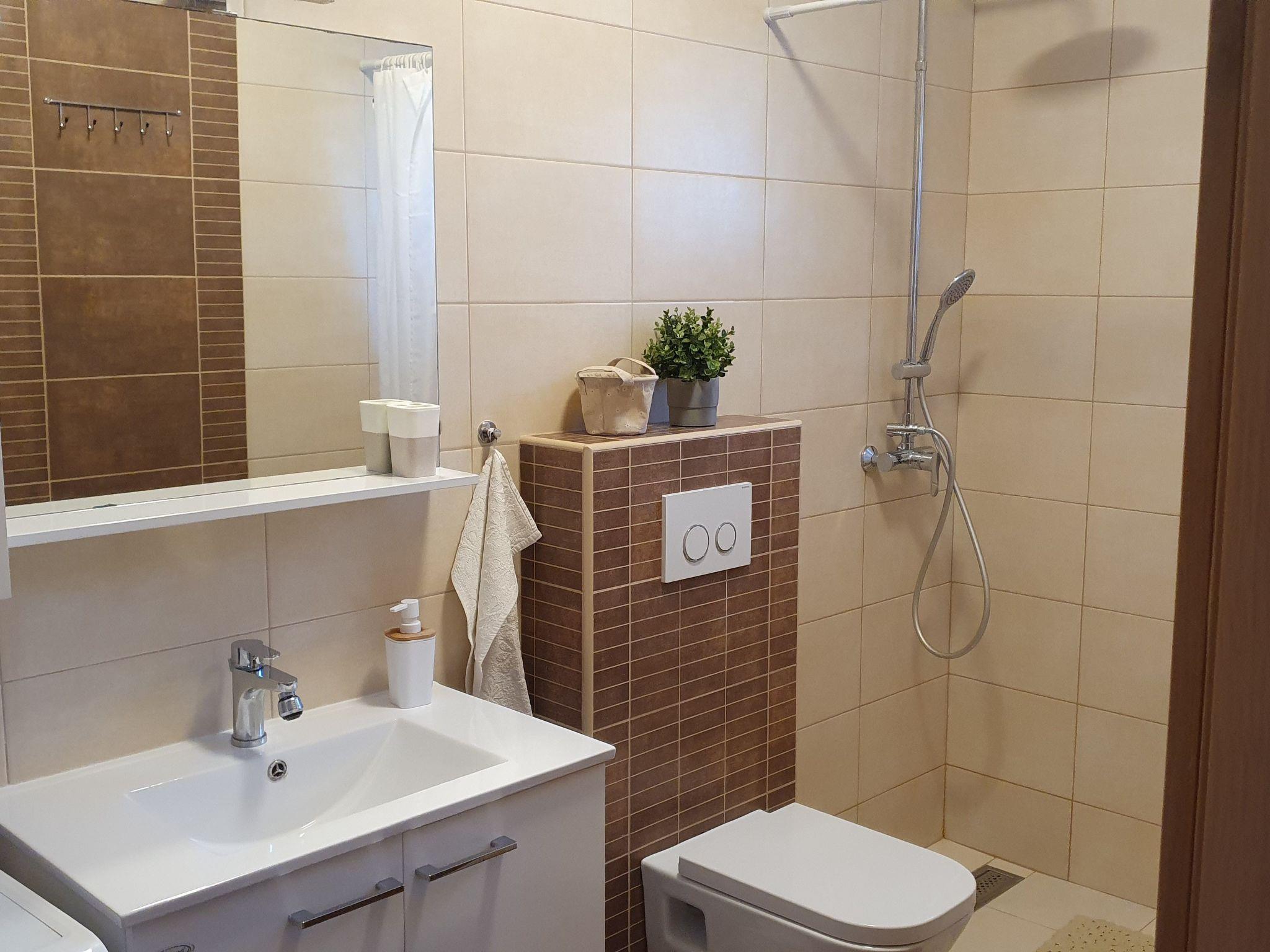 There is only one apartment for rent, on the ground floor, (50m2) for up to 4 persons. Because of that you will be the only guests and enjoy like you're in your own home. The apartment has one bedroom with a double bed. In the living room is a sofa bed for two persons (150 cm wide). Both rooms have air conditioner. There is a big shower in the bathroom, washing machine and hairdryer. Kitchen is fully equipped with dishes, cutlery, oven, cooking stove, kettle, and big refrigerator with freezer.