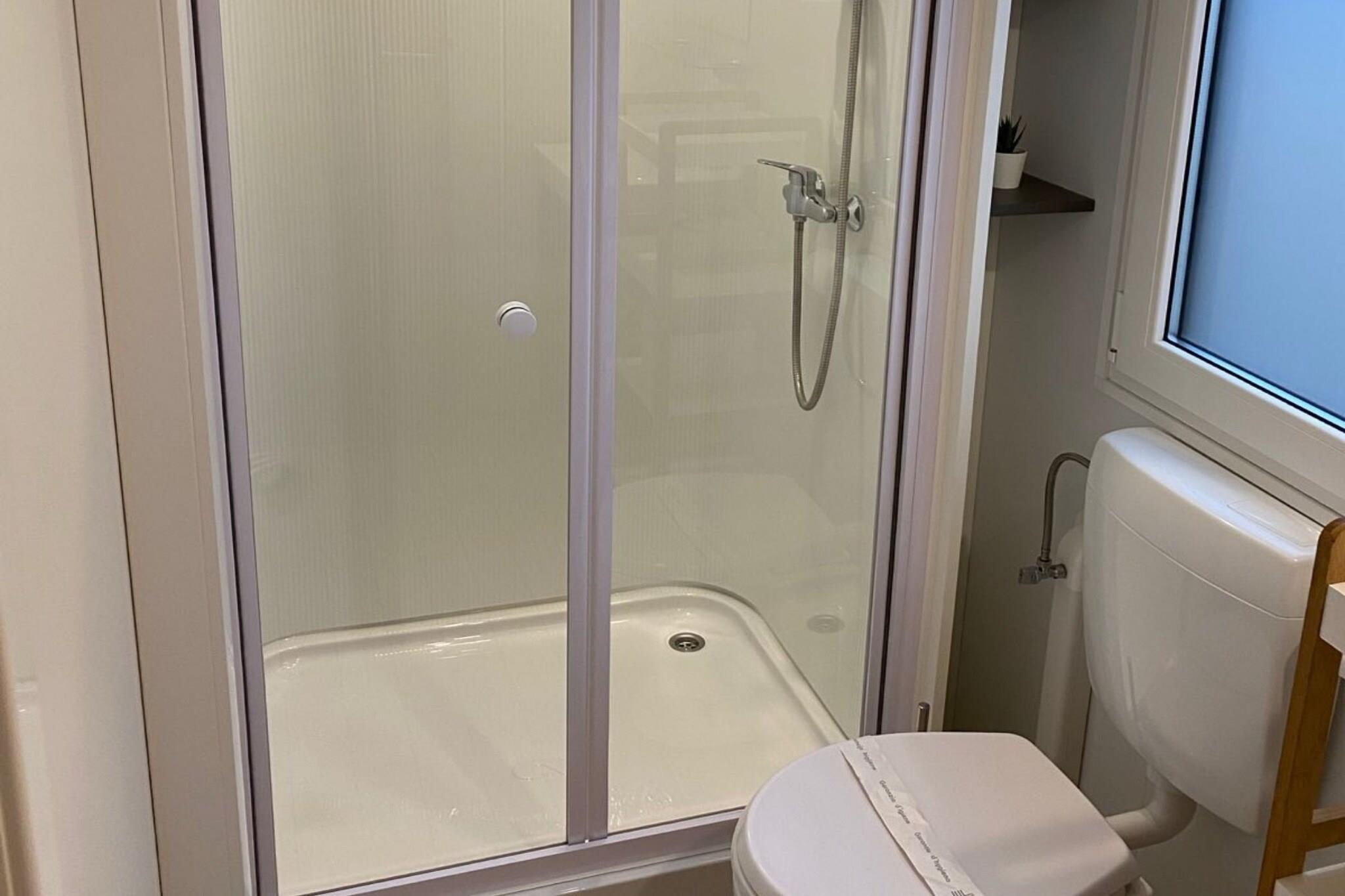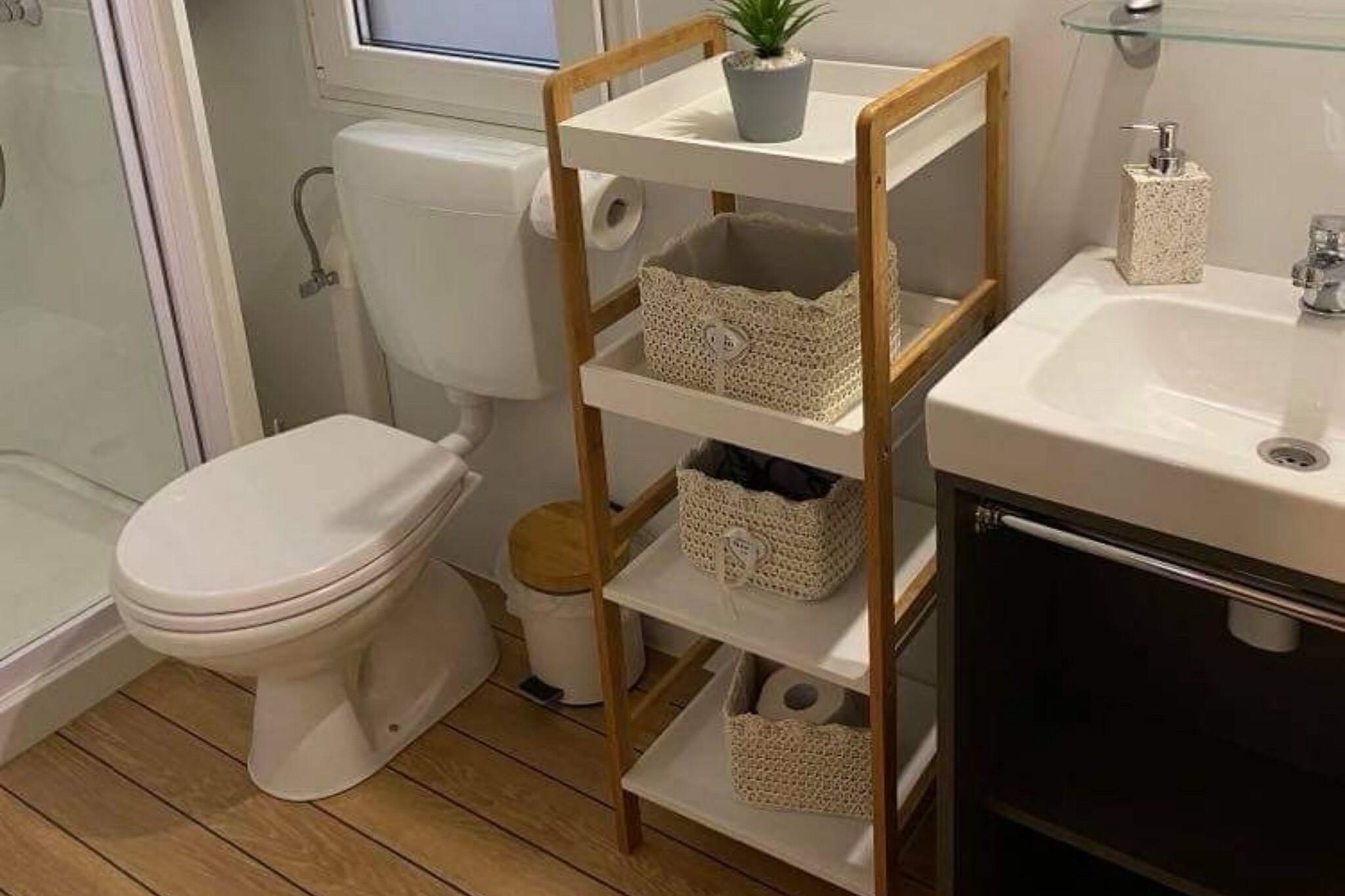 Smuk ejendom Oliva Mobile Home ligger i Biograd na Moru, byen er kendt for sin historiske og kulturelle betydning, såvel som sin smukke kystbeliggenhed. Parkeringspladsen er privat og reservation er påkrævet, men der er kun én plads til én bil, og den er lige ved siden af mobile home'en. For andre biler kan gæsterne finde parkering inden for campingpladsen, og der er ikke gratis parkering. Oliva Mobile Home, kategoriseret 4 stjerner, ligger i Camp Soline, hvor gæsterne har alle faciliteter til sjov og en fantastisk ferie. Byskat er ikke inkluderet i prisen. Den er 1,5 euro pr. person/pr. dag for alle gæster over 18 år. Gæster mellem 12-18 år skal betale 50% af byskat. Gæsteregistrering koster 1,5 euro pr. person. Alle gebyrer skal betales i receptionen på campingpladsen. Kæledyr er tilladt med varsel, gebyrer kan forekomme. Rengøringsgebyret er 80 euro pr. ophold. Rengøringsgebyret betales under reservationsprocessen, men det vises separat fra indkvarteringsprisen. Oliva Mobile Home har komfortabel plads til maksimalt 6 gæster. Den har 2 soveværelser, sengelinned, håndklæder, ekstra puder, tæpper, bøjler og fladskærms-tv. Hele enheden er placeret i stueetagen. Der er gratis Wi-Fi overalt på ejendommen. Denne ejendom ligger 300 m fra restauranten, caféerne og barerne. Gæsterne kan nyde stranden, som ligger kun 200 m fra ejendommen, og der findes et købmandsforretning og supermarked, som kun ligger 500 m væk. Oliva Mobile Home er en dobbeltbolig. Den nærmeste lufthavn er Zadar Lufthavn, 28 km fra Oliva Mobile Home, mens Biograd na Moru Central Busstation ligger 1,7 km væk.