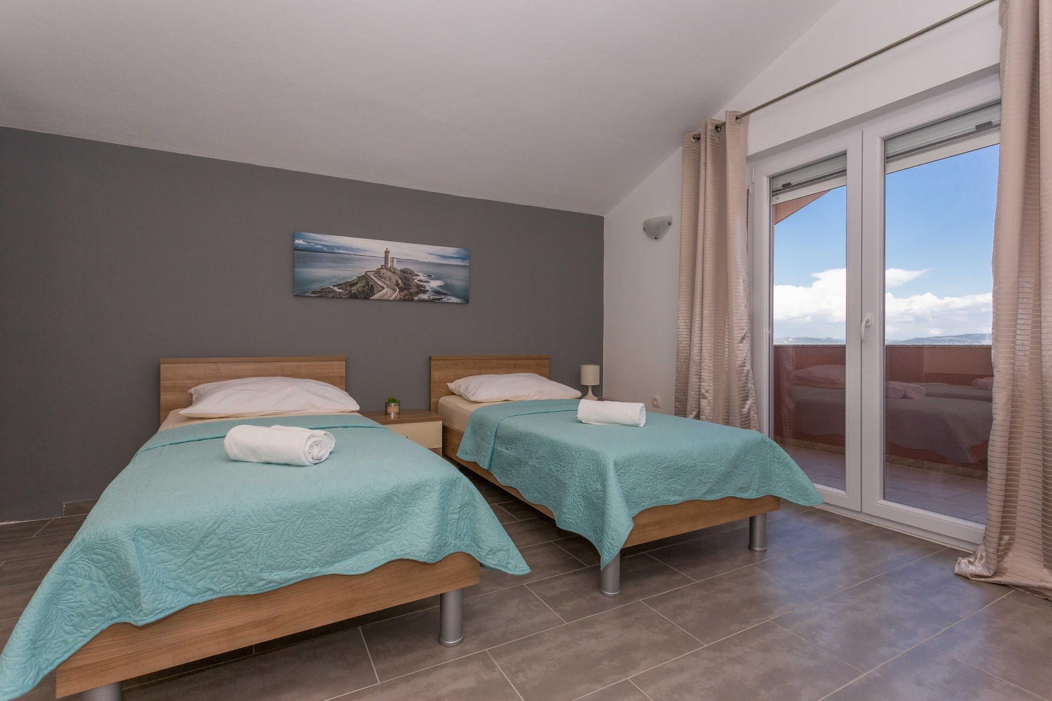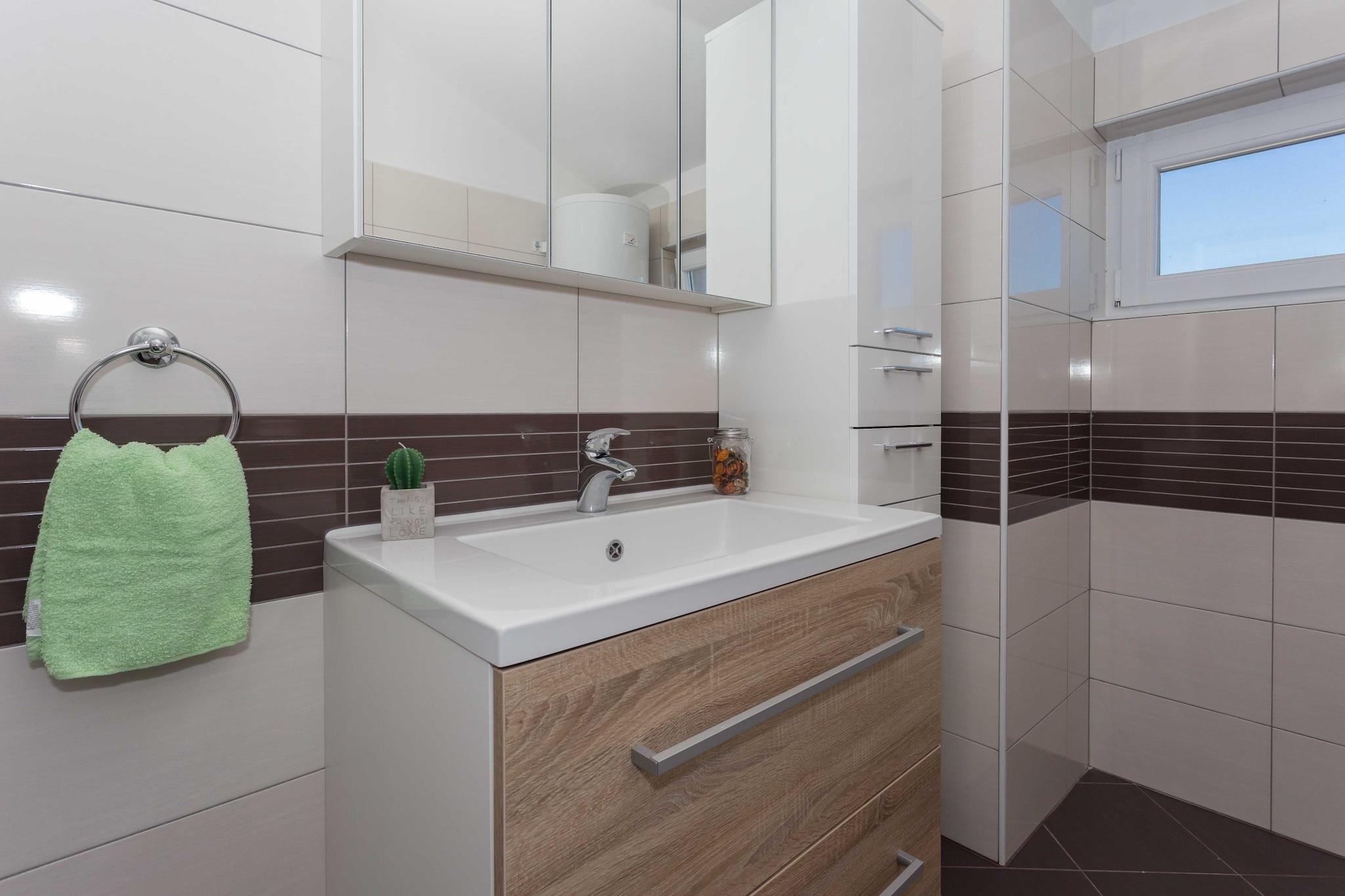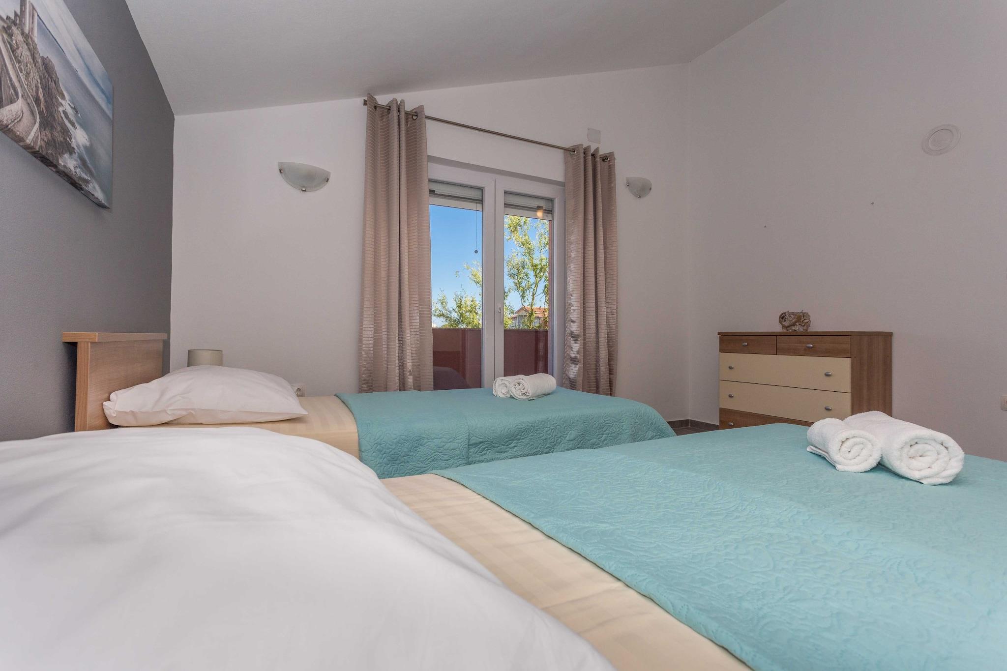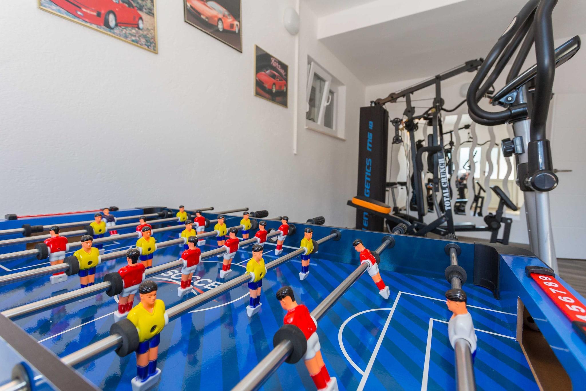Velkommen til dette spektakulære feriehus med aircondition i centrum af Biograd na moru, perfekt til en stor gruppeferie. Denne ejendom strækker sig over et rummeligt areal på 350 m² og kan komfortabelt rumme 10 personer. Den rummelige planløsning omfatter fire soveværelser med dobbeltsenge og et femte med 2 enkeltsenge, samt fire komplette badeværelser med brusere, hvilket sikrer komfort og privatliv for alle gæster. Ejendommen har endda et ekstra toilet i stueetagen. Den store, indhegnede grund på 1400 m² er et højdepunkt med en privat udendørs swimmingpool, en stor terrasse på 40 m², en afslappende have med liggestole og et dedikeret grill- og udendørs pejseområde til udendørs spisning. Indenfor byder huset på en familievenlig atmosfære med et børneområde og en kælder dedikeret til underholdning og fitness, komplet med et fitnessrum, bordfodbold og fitnessudstyr. Opholdsstuerne har 2 smart-tv'er med satellitkanaler og en hyggelig pejs i stueetagen. Hjemmet ligger i byens centrum, kun 1 km fra byens centrum og tæt på en restaurant og café (200 m). Du er perfekt placeret til at udforske Dalmatiens naturlige skønhed, med Vrana-søen (3 km) og nationalparkerne Kornati (20 km), Krka (40 km) og Plitvice-søerne (80 km) let tilgængelige. Huset er fuldt udstyret med et åbent induktionskøkken (opvaskemaskine, ovn, mikrobølgeovn, kaffemaskine osv.), vaskemaskine, Wi-Fi og aircondition overalt, hvilket giver al komfort til en luksuriøs og aktiv ferie.