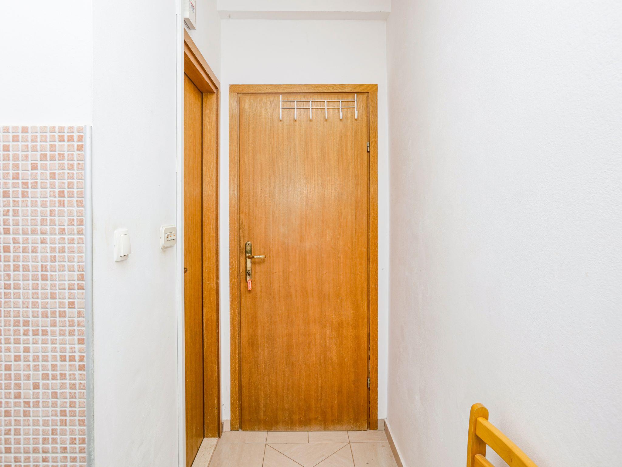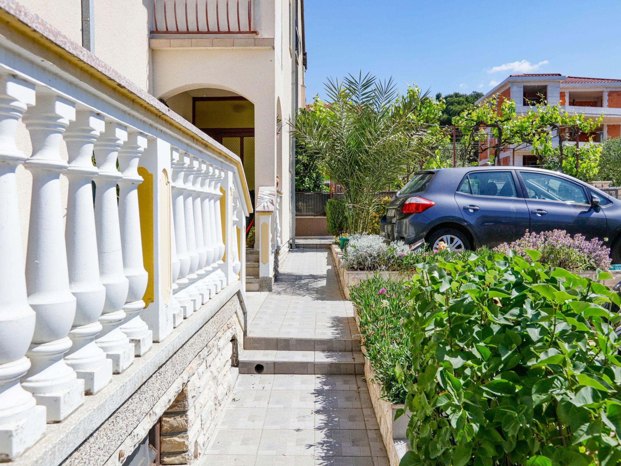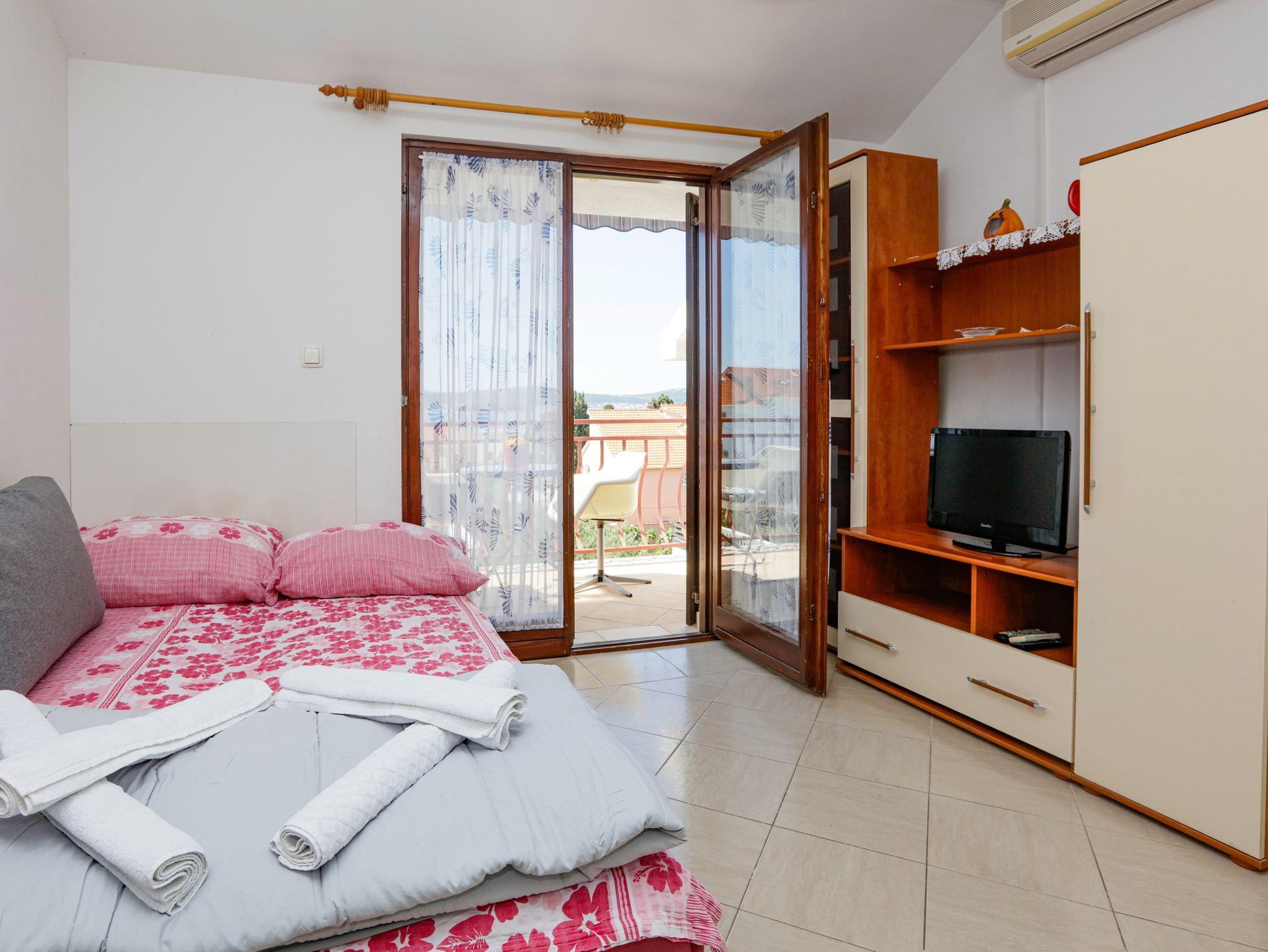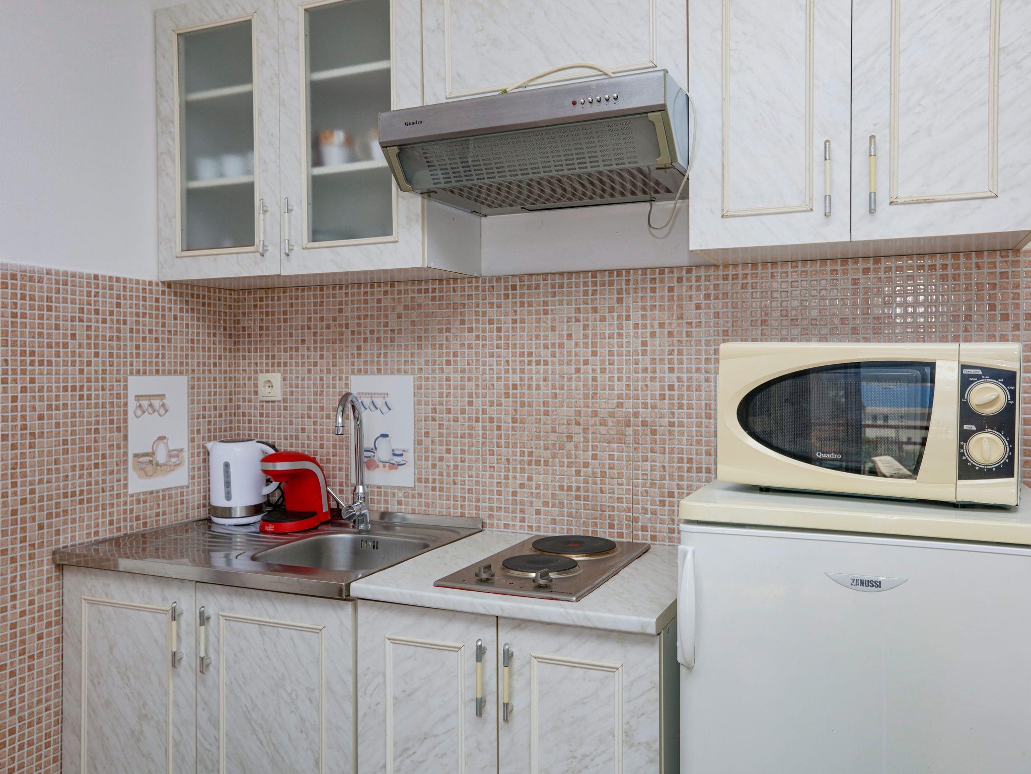 Studio bietet Platz für 2 Gäste. Die Betten sind in Wohnzimmer, innerhalb einer Gesamtfläche von 22m2, angeordnet. Die Gäste haben eine eigene Terrasse zur Verfügung, auf der sie in warmen Sommernächten genießen können. Das Studio-Apartment bietet Meerblick. Es ist erlaubt, Speisen auf dem Gemeinschafts-Grill vorzubereiten. IM PREIS INBEGRIFFEN: Kurtaxe, Endreinigung, Klimatisierung, Parkplatz, Internet, Kinderbett, Bügeleisen, Bügelbrett, Föhn. VERBINDLICHE ZUSÄTZLICHE KOSTEN: Aufzahlung für Kurzaufenthalte (prozentualer Zuschlag pro Nächtigungsanzahl: 30% - 1, 20% - 2, 10% - 3). Die Verfügbarkeit zusätzlicher Dienstleistungen in Ihrem reservierten Termin und die Preise derselben (falls nicht aufgeführt) müssen im Voraus überprüft werden. Zusätzliche Dienstleistungen die in der Zahlungsaufforderung nicht aufgeführt sind werden direkt beim Vermieter bezahlt, angenommen der Gast nutzt auch diese.