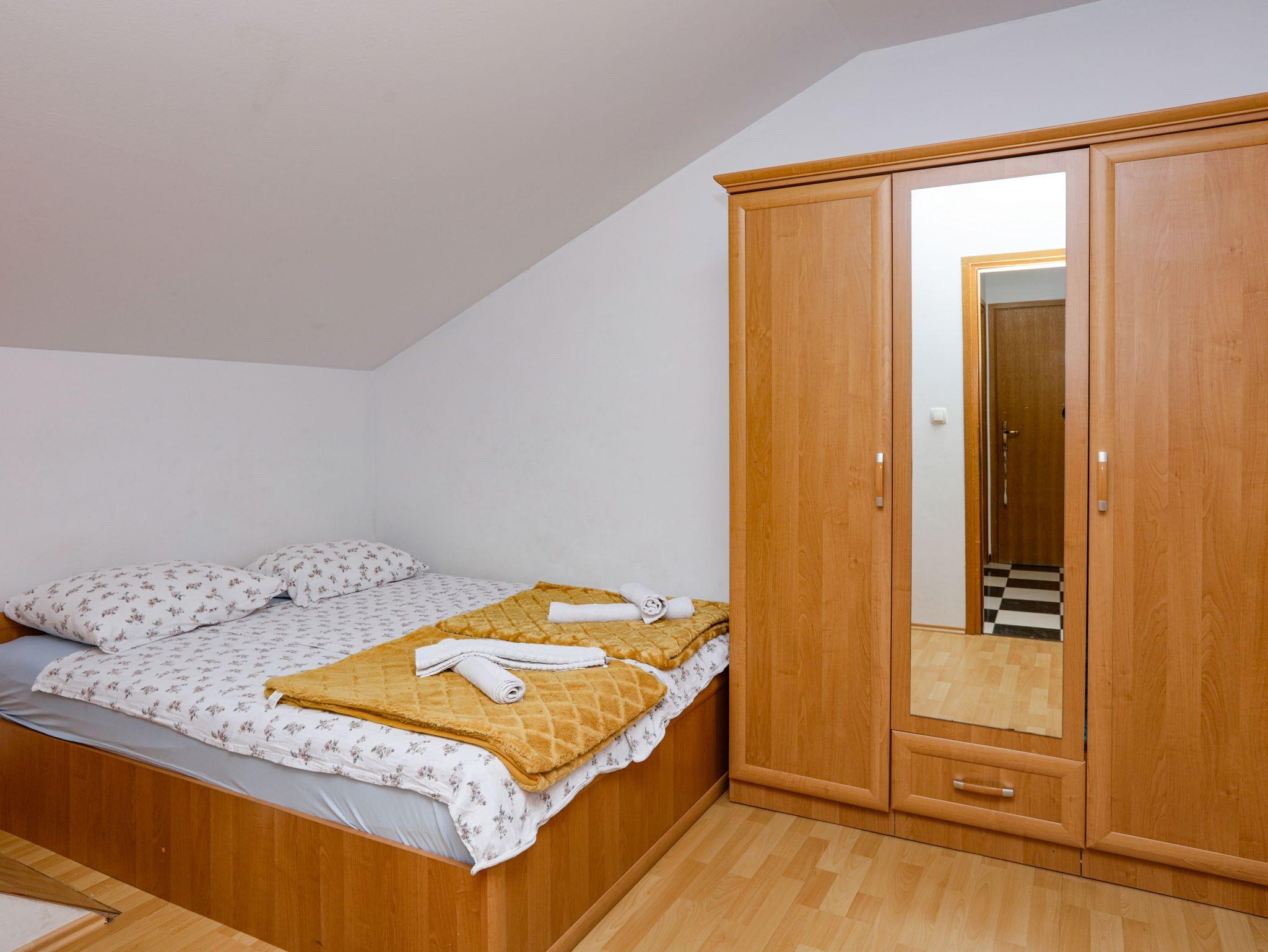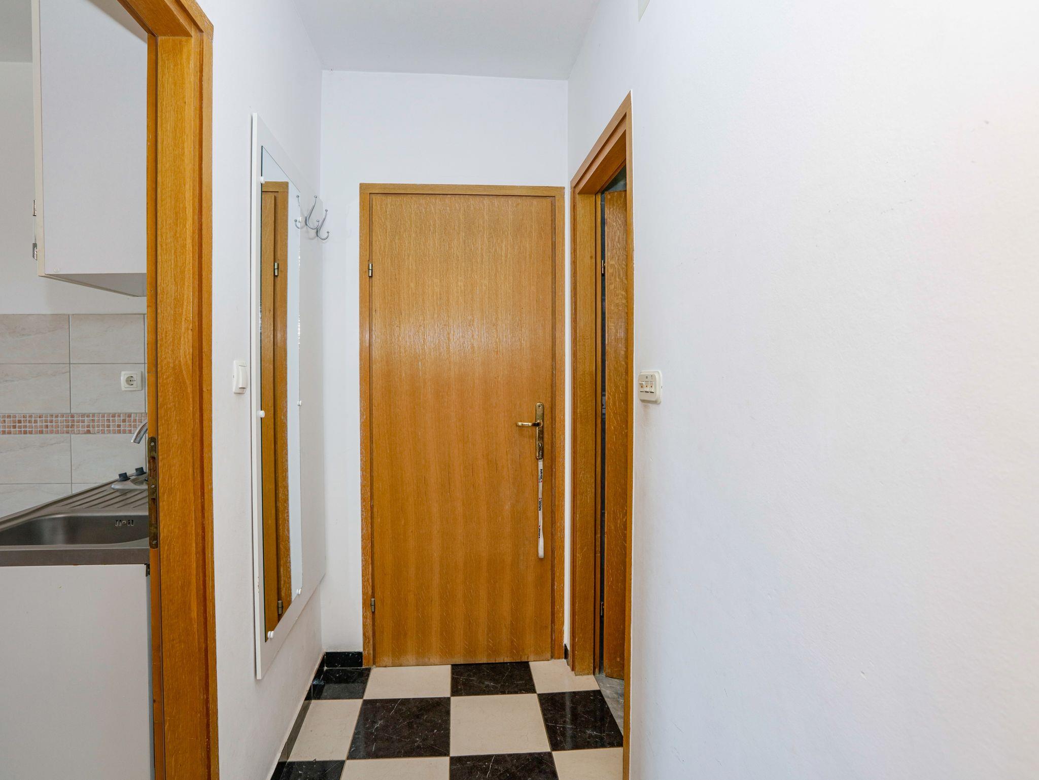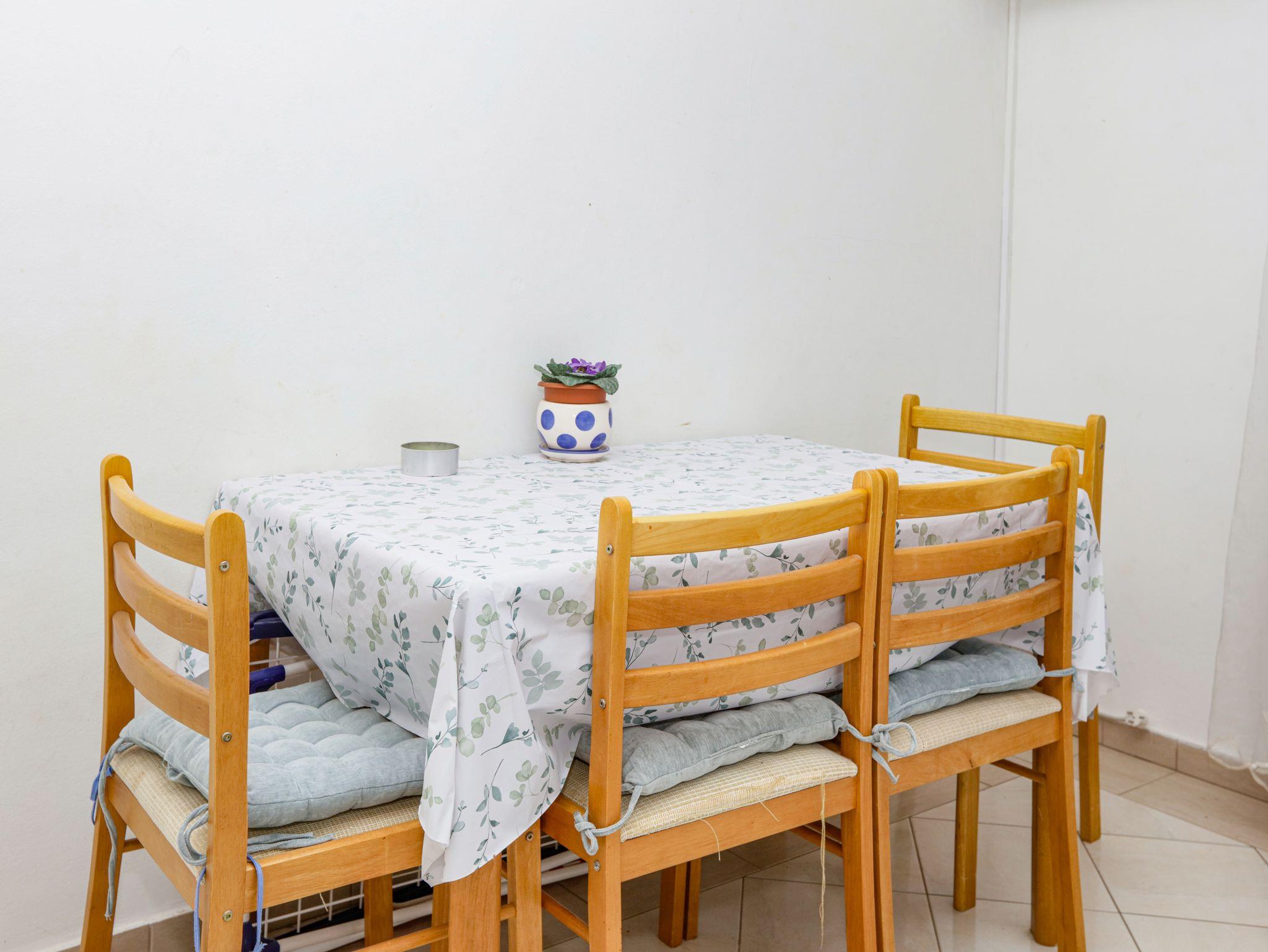 Ferienwohnung bietet Platz für 4 Gäste. Die Betten sind in Schlafzimmern, die es 1 gibt, und in Wohnzimmer, innerhalb einer Gesamtfläche von 29m2, angeordnet. Die Gäste haben eine eigene Terrasse zur Verfügung, auf der sie in warmen Sommernächten genießen können. Das Apartment bietet Meerblick. Es ist erlaubt, Speisen auf dem Gemeinschafts-Grill vorzubereiten. IM PREIS INBEGRIFFEN: Kurtaxe, Endreinigung, Klimatisierung, Parkplatz, Internet, Kinderbett, Bügeleisen, Bügelbrett, Föhn. VERBINDLICHE ZUSÄTZLICHE KOSTEN: Aufzahlung für Kurzaufenthalte (prozentualer Zuschlag pro Nächtigungsanzahl: 30% - 1, 20% - 2, 10% - 3). UNVERBINDLICHE ZUSÄTZLICHE KOSTEN: Zusatzbett (5,00 € pro Nacht). Die Verfügbarkeit zusätzlicher Dienstleistungen in Ihrem reservierten Termin und die Preise derselben (falls nicht aufgeführt) müssen im Voraus überprüft werden. Zusätzliche Dienstleistungen die in der Zahlungsaufforderung nicht aufgeführt sind werden direkt beim Vermieter bezahlt, angenommen der Gast nutzt auch diese.