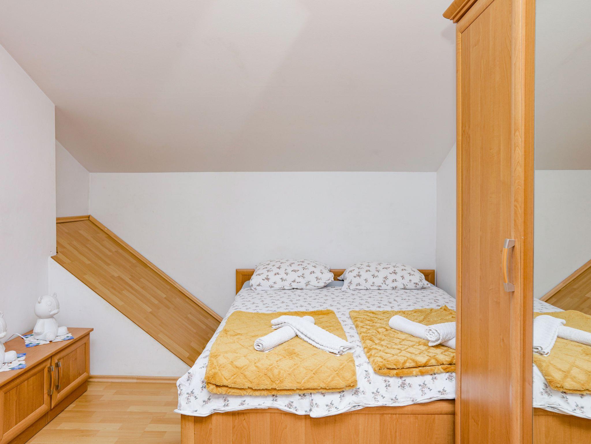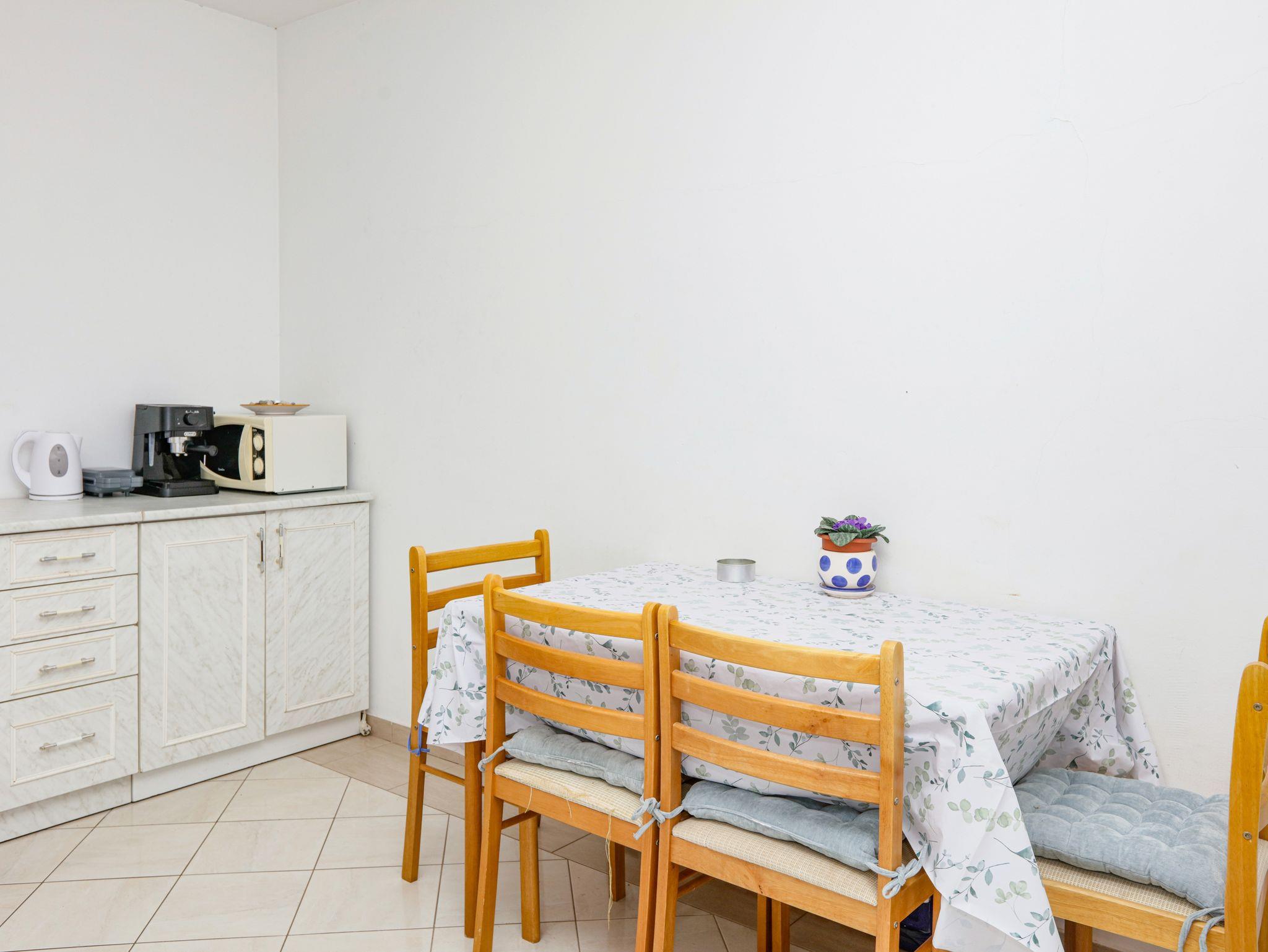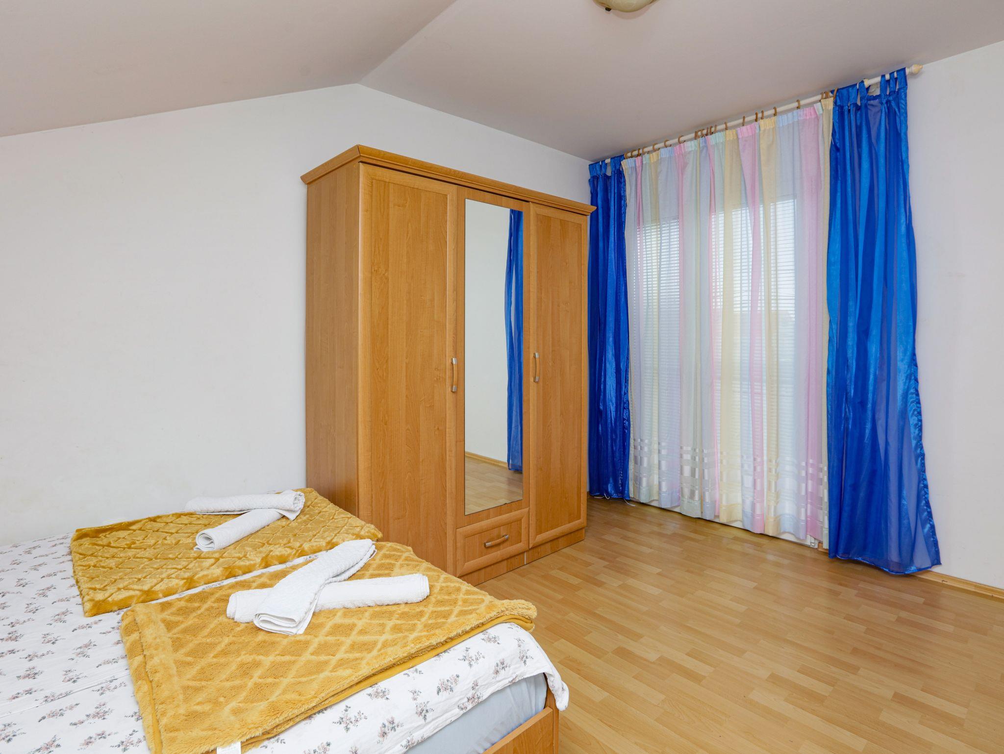 Ferienwohnung bietet Platz für 4 Gäste. Die Betten sind in Schlafzimmern, die es 1 gibt, und in Wohnzimmer, innerhalb einer Gesamtfläche von 29m2, angeordnet. Die Gäste haben eine eigene Terrasse zur Verfügung, auf der sie in warmen Sommernächten genießen können. Das Apartment bietet Meerblick. Es ist erlaubt, Speisen auf dem Gemeinschafts-Grill vorzubereiten. IM PREIS INBEGRIFFEN: Kurtaxe, Endreinigung, Klimatisierung, Parkplatz, Internet, Kinderbett, Bügeleisen, Bügelbrett, Föhn. VERBINDLICHE ZUSÄTZLICHE KOSTEN: Aufzahlung für Kurzaufenthalte (prozentualer Zuschlag pro Nächtigungsanzahl: 30% - 1, 20% - 2, 10% - 3). UNVERBINDLICHE ZUSÄTZLICHE KOSTEN: Zusatzbett (5,00 € pro Nacht). Die Verfügbarkeit zusätzlicher Dienstleistungen in Ihrem reservierten Termin und die Preise derselben (falls nicht aufgeführt) müssen im Voraus überprüft werden. Zusätzliche Dienstleistungen die in der Zahlungsaufforderung nicht aufgeführt sind werden direkt beim Vermieter bezahlt, angenommen der Gast nutzt auch diese.