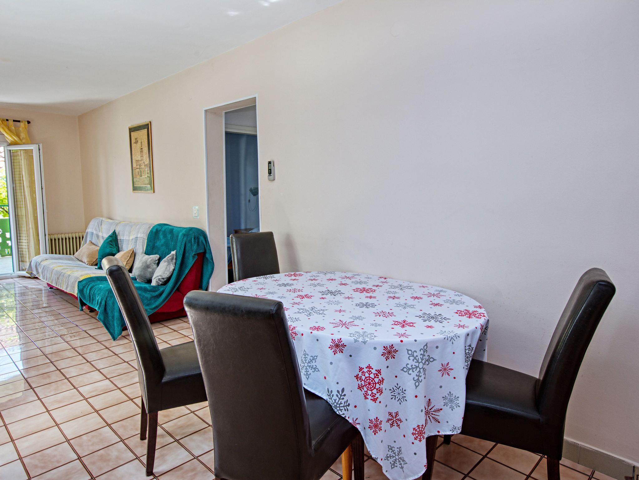 Ferienwohnung bietet Platz für 6 Gäste. Die Betten sind in Schlafzimmern, die es 2 gibt, und in Wohnzimmer, innerhalb einer Gesamtfläche von 57m2, angeordnet. Die Gäste haben eine eigene Terrasse zur Verfügung, auf der sie in warmen Sommernächten genießen können. Es ist erlaubt, Speisen auf dem Gemeinschafts-Grill vorzubereiten. In der Unterkunftseinheit besteht die Möglichkeit des Mitbringens von Haustieren gegen Aufpreis. IM PREIS INBEGRIFFEN: Kurtaxe, Endreinigung, Klimatisierung, Parkplatz, Internet, Kinderbett. VERBINDLICHE ZUSÄTZLICHE KOSTEN: Aufzahlung für Kurzaufenthalte (prozentualer Zuschlag pro Nächtigungsanzahl: 30% - 1, 20% - 2, 10% - 3). UNVERBINDLICHE ZUSÄTZLICHE KOSTEN: Wäschewaschen (7,00 € Waschen), Haustiere (10,00 € pro Nacht). Die Verfügbarkeit zusätzlicher Dienstleistungen in Ihrem reservierten Termin und die Preise derselben (falls nicht aufgeführt) müssen im Voraus überprüft werden. Zusätzliche Dienstleistungen die in der Zahlungsaufforderung nicht aufgeführt sind werden direkt beim Vermieter bezahlt, angenommen der Gast nutzt auch diese.