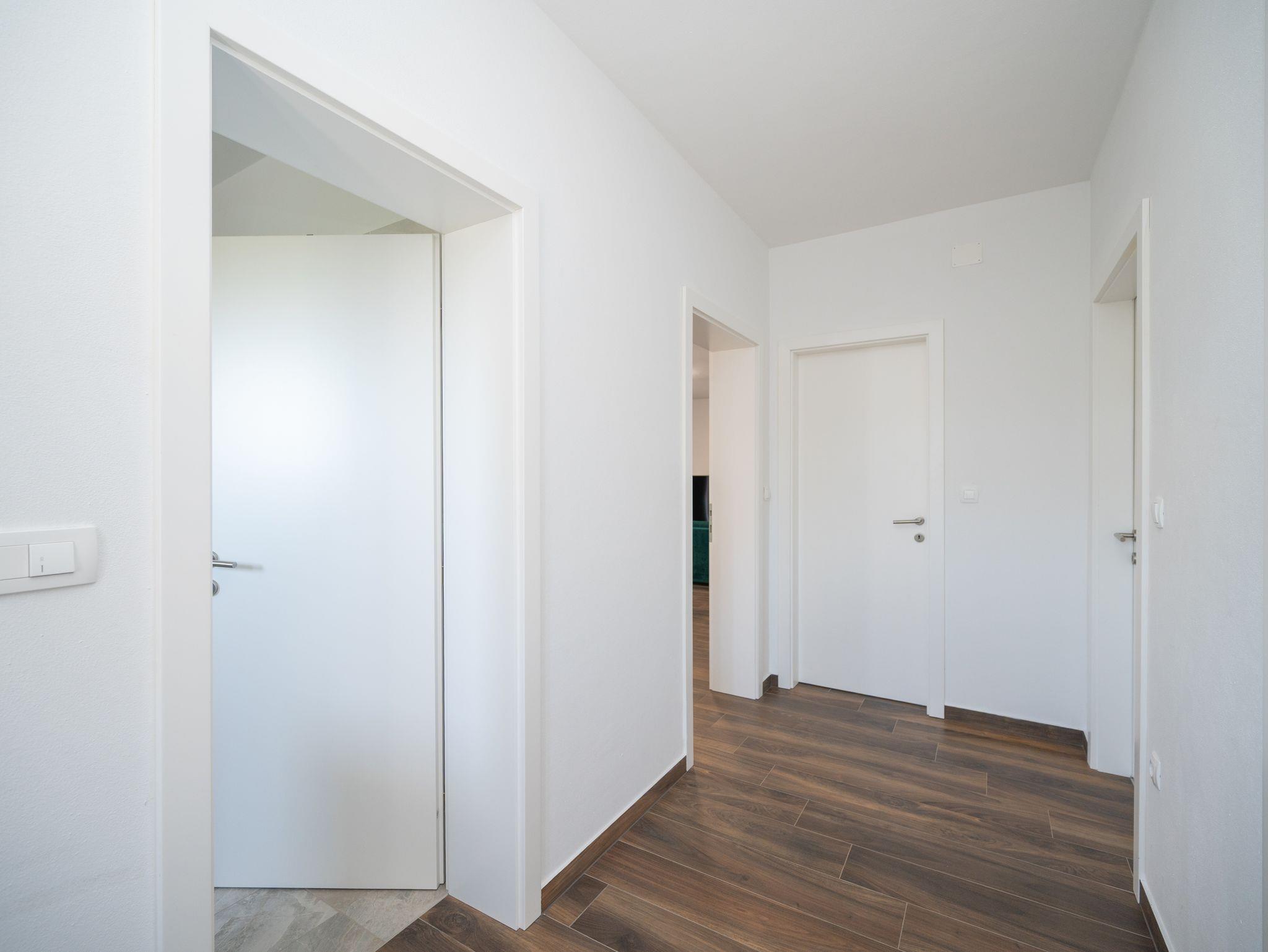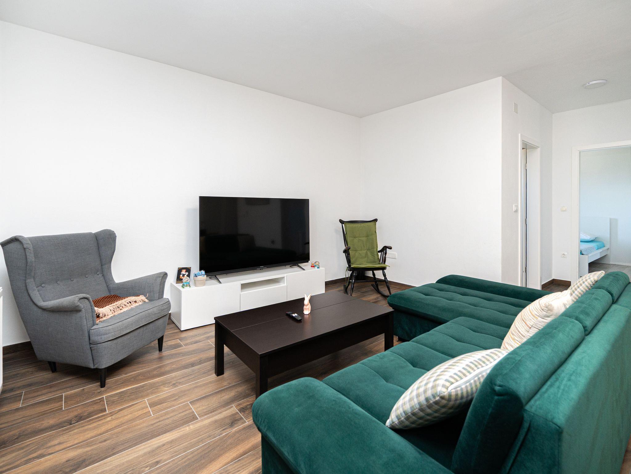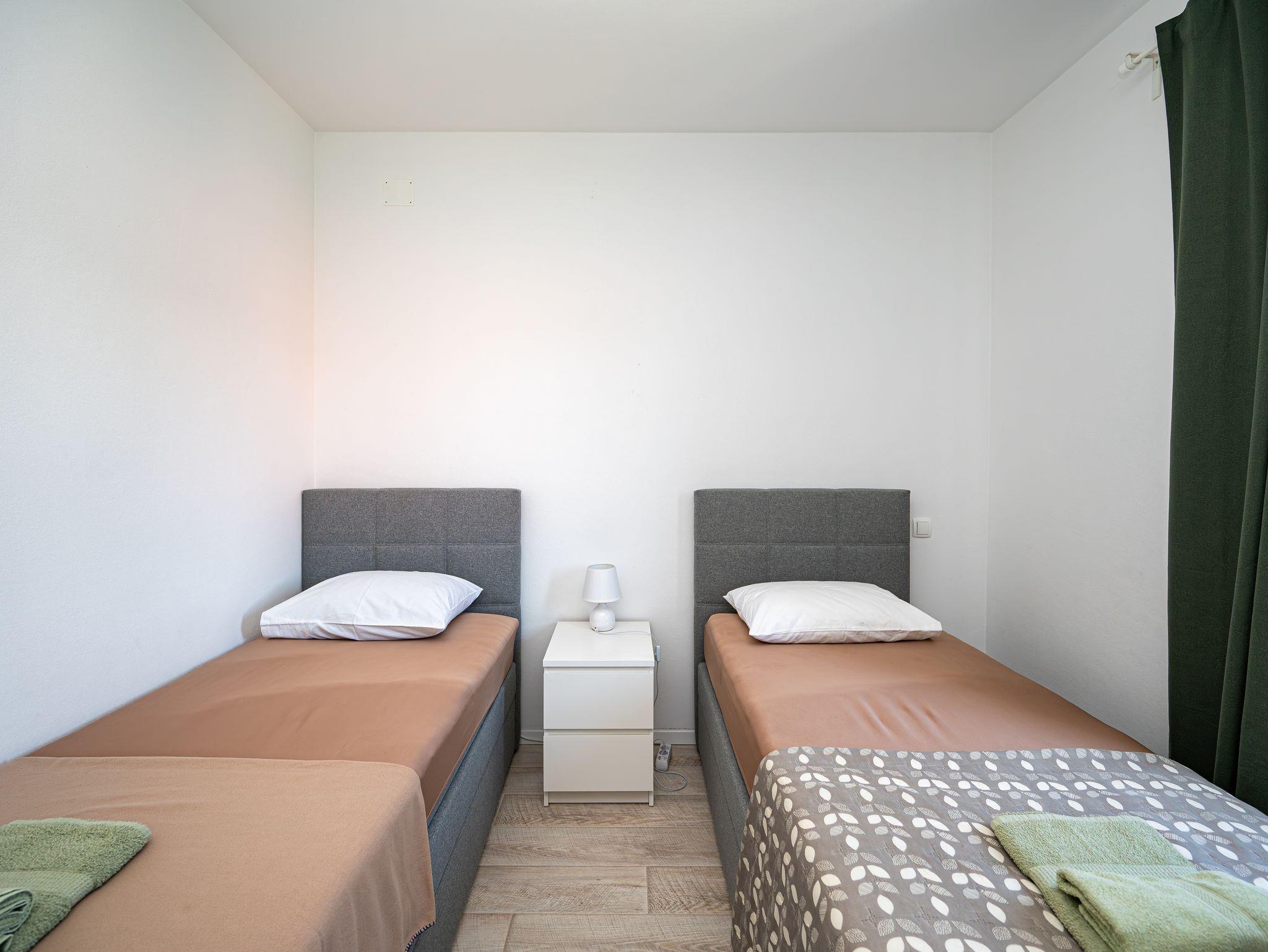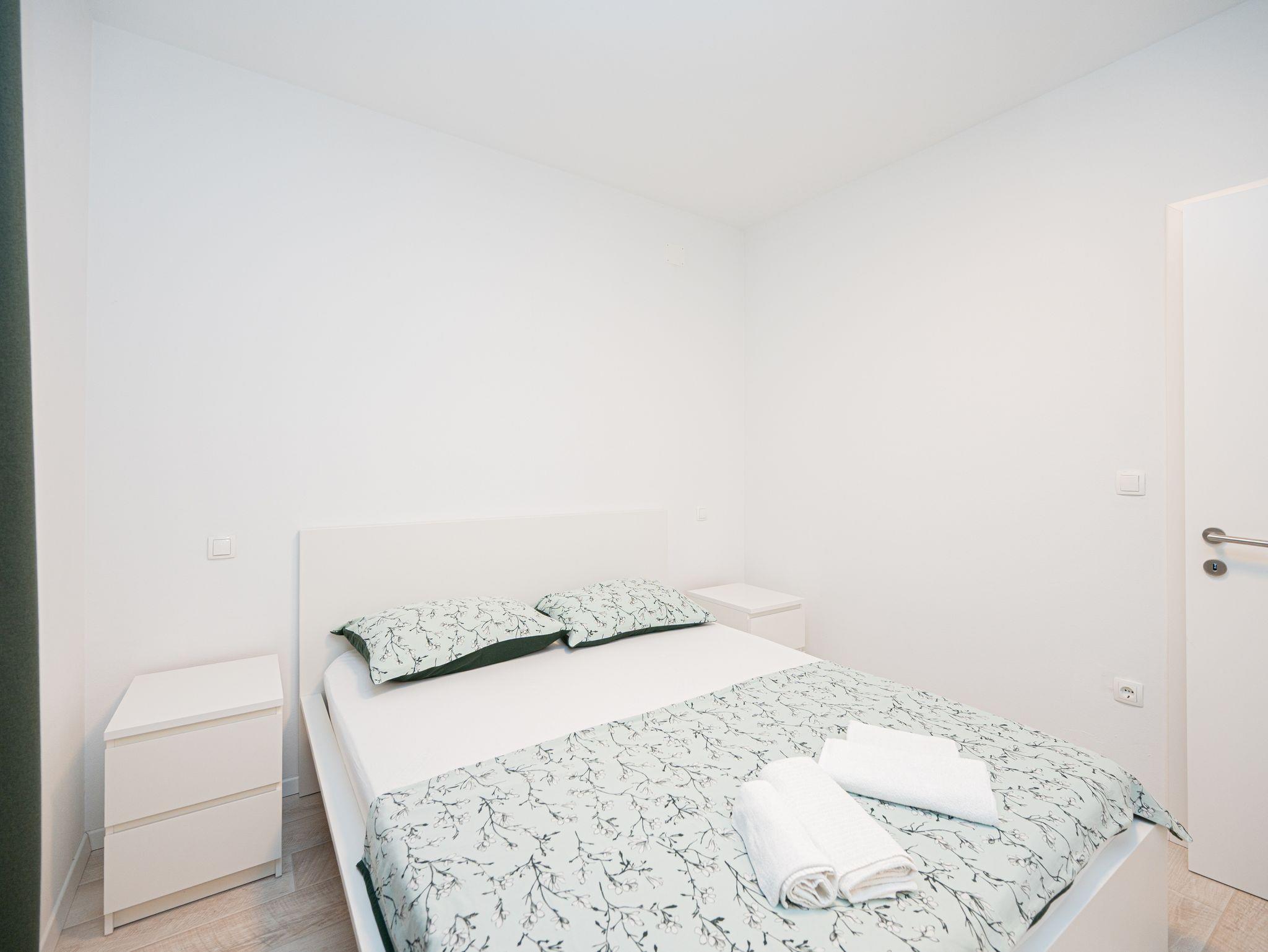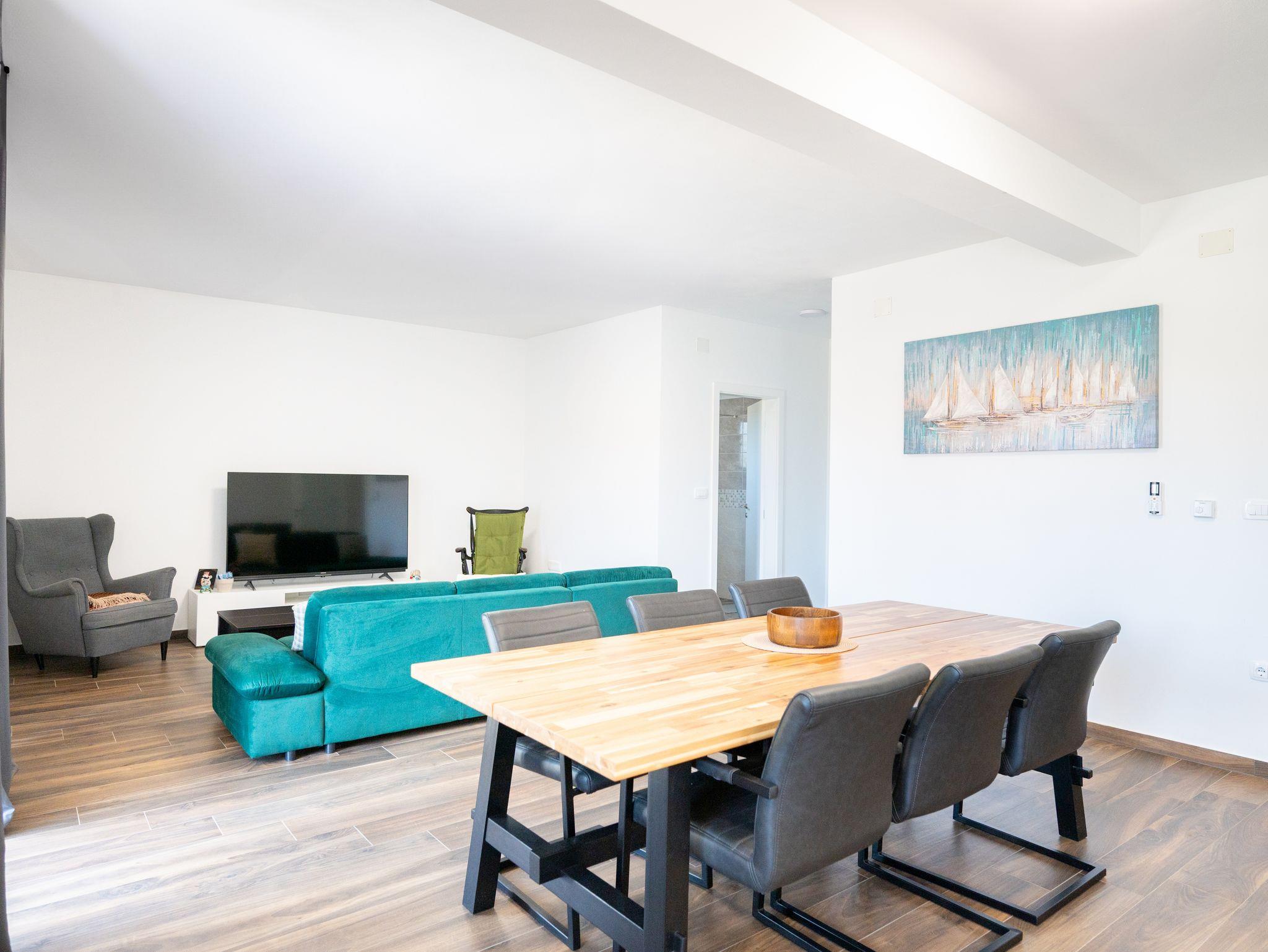 Ferienwohnung bietet Platz für 8 Gäste. Die Betten sind in Schlafzimmern, die es 3 gibt, und in Wohnzimmer, innerhalb einer Gesamtfläche von 86m2, angeordnet. Die Gäste haben eine eigene Terrasse zur Verfügung, auf der sie in warmen Sommernächten genießen können. Es ist erlaubt, Speisen auf dem Gemeinschafts-Grill vorzubereiten. IM PREIS INBEGRIFFEN: Kurtaxe, Endreinigung, Klimatisierung, Parkplatz, Internet, Kinderbett, Föhn. VERBINDLICHE ZUSÄTZLICHE KOSTEN: Aufzahlung für Kurzaufenthalte (prozentualer Zuschlag pro Nächtigungsanzahl: 30% - 1, 20% - 2, 10% - 3). UNVERBINDLICHE ZUSÄTZLICHE KOSTEN: Zentralheizung (5,00 € pro Nacht). Die Verfügbarkeit zusätzlicher Dienstleistungen in Ihrem reservierten Termin und die Preise derselben (falls nicht aufgeführt) müssen im Voraus überprüft werden. Zusätzliche Dienstleistungen die in der Zahlungsaufforderung nicht aufgeführt sind werden direkt beim Vermieter bezahlt, angenommen der Gast nutzt auch diese. Ermäßigung auf den Grundpreis: Gratistag 14=13 (bei einem Aufenthalt von 14 Tagen oder mehr erhalten Sie einen Gratistag für den Aufenthalt bis 31.12.26).