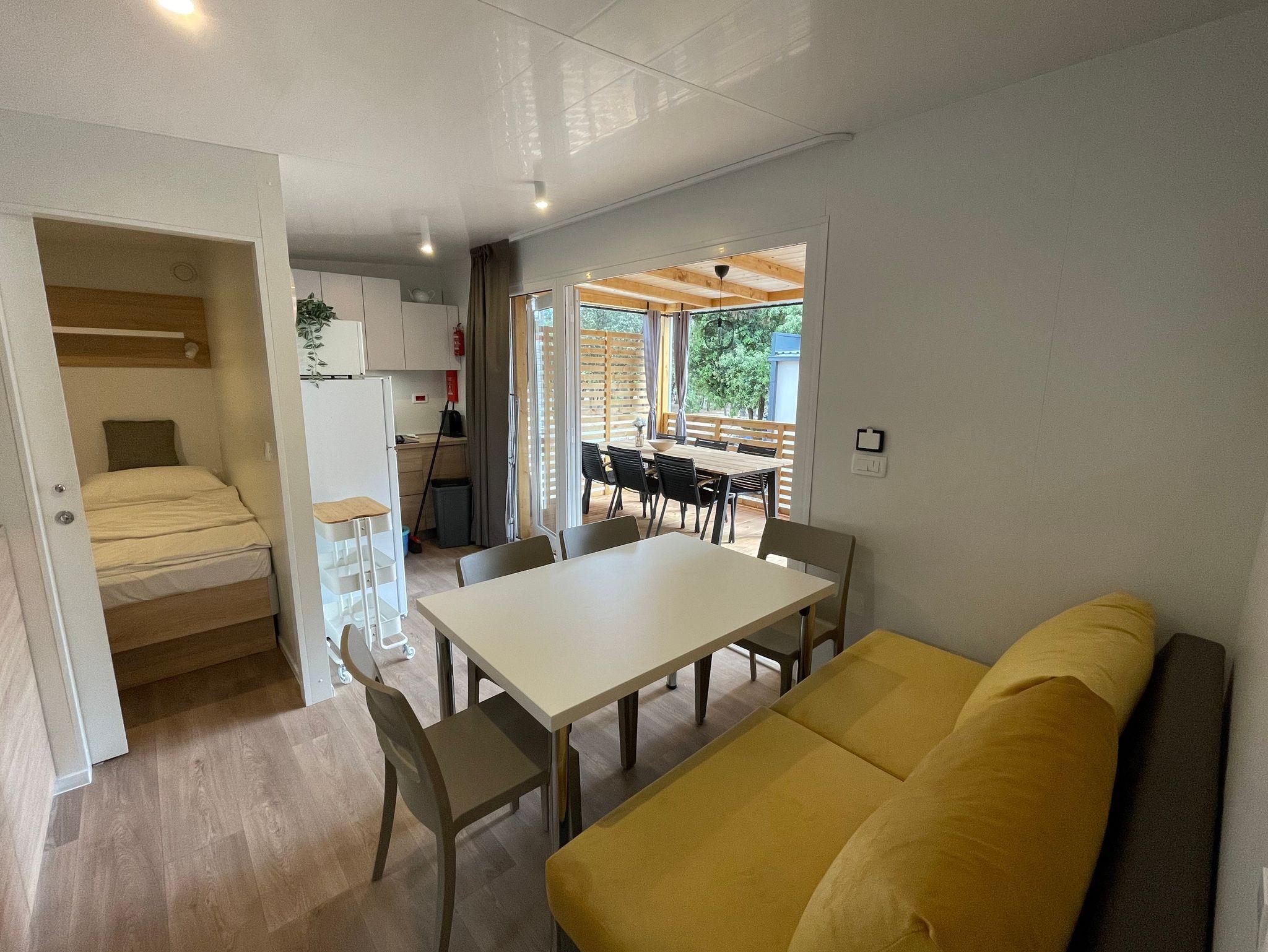 Ferienwohnung bietet Platz für 5 Gäste. Die Betten sind in Schlafzimmern, die es 2 gibt, und in Wohnzimmer, innerhalb einer Gesamtfläche von 37m2, angeordnet. Die Gäste haben eine eigene Terrasse zur Verfügung, auf der sie in warmen Sommernächten genießen können. Für vollen Genuss und Entspannung gibt es einen privaten Grill für Gäste dieser Unterkunft. IM PREIS INBEGRIFFEN: Endreinigung, Klimatisierung, Parkplatz, Internet, Bügeleisen, Bügelbrett, Föhn. VERBINDLICHE ZUSÄTZLICHE KOSTEN: Kurtaxe (Erwachsene 0,93 € - 1,50 € Nacht/Person, Kinderermäßigung 12 - 17 Jahre). UNVERBINDLICHE ZUSÄTZLICHE KOSTEN: Wäschewaschen (7,00 € Waschen). Die Verfügbarkeit zusätzlicher Dienstleistungen in Ihrem reservierten Termin und die Preise derselben (falls nicht aufgeführt) müssen im Voraus überprüft werden. Zusätzliche Dienstleistungen die in der Zahlungsaufforderung nicht aufgeführt sind werden direkt beim Vermieter bezahlt, angenommen der Gast nutzt auch diese. Ermäßigung auf den Grundpreis: Gratistag 14=13 (bei einem Aufenthalt von 14 Tagen oder mehr erhalten Sie einen Gratistag für den Aufenthalt bis 31.12.26).