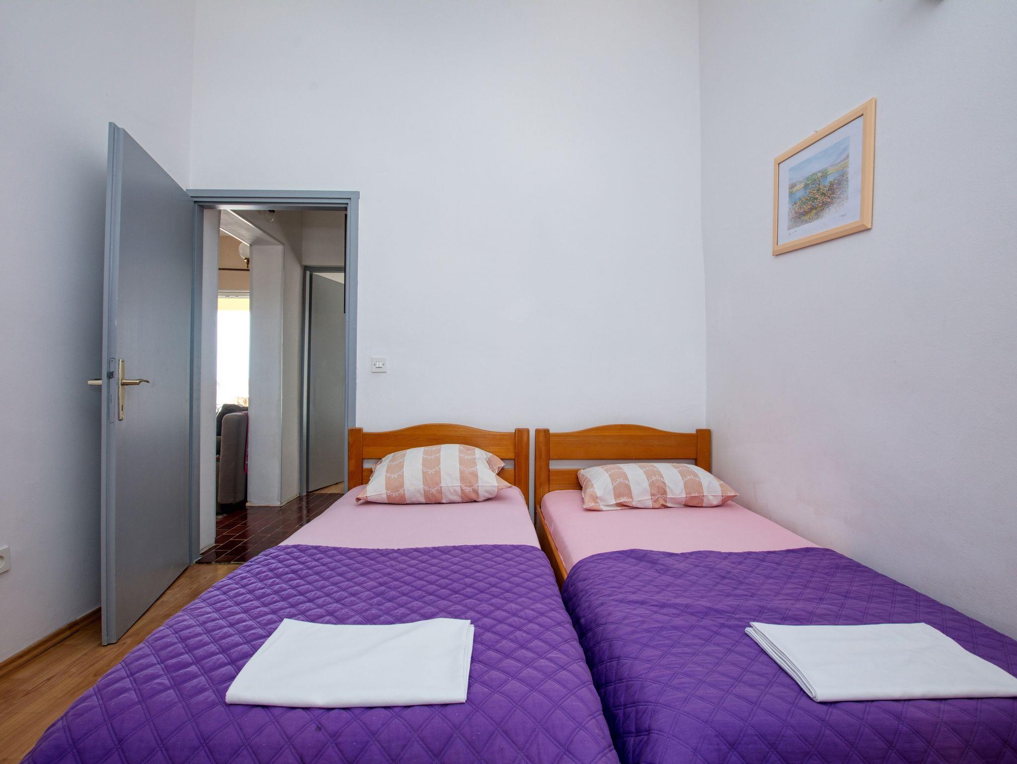 Ferienwohnung bietet Platz für 6 Gäste. Die Betten sind in Schlafzimmern, die es 2 gibt, und in Wohnzimmer, innerhalb einer Gesamtfläche von 57m2, angeordnet. Die Gäste haben einen eigenen Balkon zur Verfügung, auf der sie in warmen Sommernächten genießen können. Das Apartment bietet Meerblick. Es ist erlaubt, Speisen auf dem Gemeinschafts-Grill vorzubereiten. In der Unterkunftseinheit besteht die Möglichkeit des Mitbringens von Haustieren gegen Aufpreis. IM PREIS INBEGRIFFEN: Kurtaxe, Endreinigung, Klimatisierung, Parkplatz, Internet, Kinderbett. VERBINDLICHE ZUSÄTZLICHE KOSTEN: Aufzahlung für Kurzaufenthalte (prozentualer Zuschlag pro Nächtigungsanzahl: 30% - 1, 20% - 2, 10% - 3). UNVERBINDLICHE ZUSÄTZLICHE KOSTEN: Wäschewaschen (7,00 € Waschen), Haustiere (10,00 € pro Nacht). Die Verfügbarkeit zusätzlicher Dienstleistungen in Ihrem reservierten Termin und die Preise derselben (falls nicht aufgeführt) müssen im Voraus überprüft werden. Zusätzliche Dienstleistungen die in der Zahlungsaufforderung nicht aufgeführt sind werden direkt beim Vermieter bezahlt, angenommen der Gast nutzt auch diese.