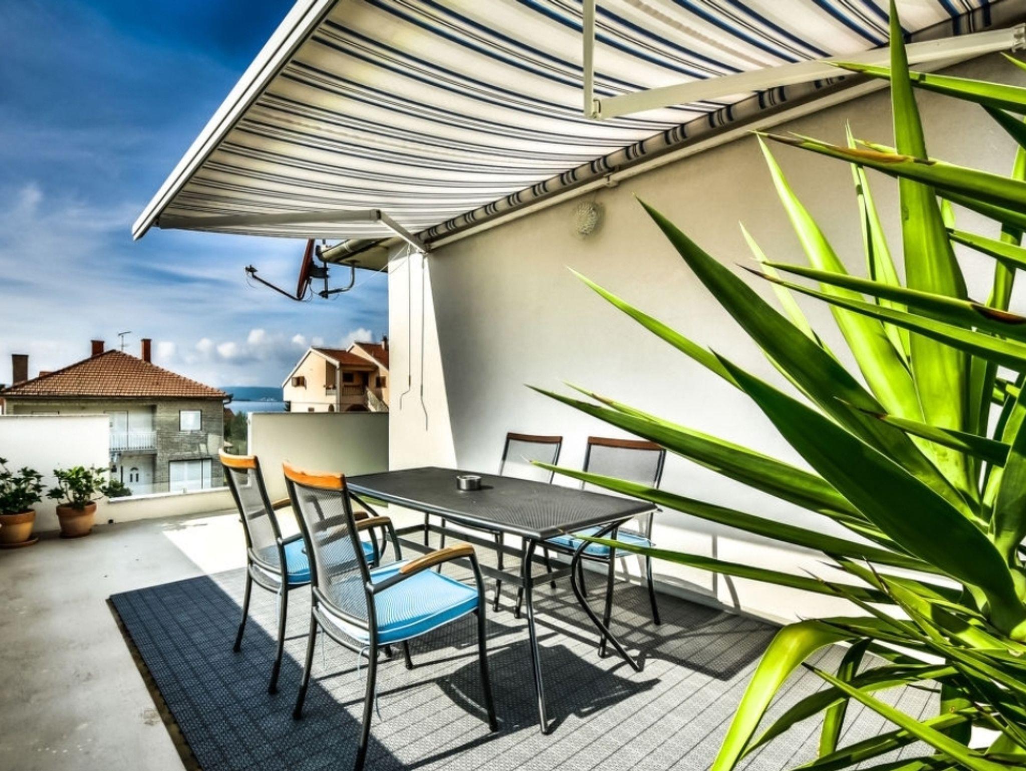 Ferienwohnung bietet Platz für 4 Gäste. Die Betten sind in Schlafzimmern, die es 2 gibt, innerhalb einer Gesamtfläche von 80m2, angeordnet. Die Gäste haben eine eigene Terrasse zur Verfügung, auf der sie in warmen Sommernächten genießen können. Das Apartment bietet Meerblick. Es ist erlaubt, Speisen auf dem Gemeinschafts-Grill vorzubereiten. IM PREIS INBEGRIFFEN: Kurtaxe, Endreinigung, Klimatisierung, Parkplatz, Internet, Kinderbett, Bügeleisen, Bügelbrett, Föhn, tragbarer Grill. Die Verfügbarkeit zusätzlicher Dienstleistungen in Ihrem reservierten Termin und die Preise derselben (falls nicht aufgeführt) müssen im Voraus überprüft werden. Zusätzliche Dienstleistungen die in der Zahlungsaufforderung nicht aufgeführt sind werden direkt beim Vermieter bezahlt, angenommen der Gast nutzt auch diese. Ermäßigung auf den Grundpreis: Gratistag 14=13 (bei einem Aufenthalt von 14 Tagen oder mehr erhalten Sie einen Gratistag für den Aufenthalt bis 31.12.26).
