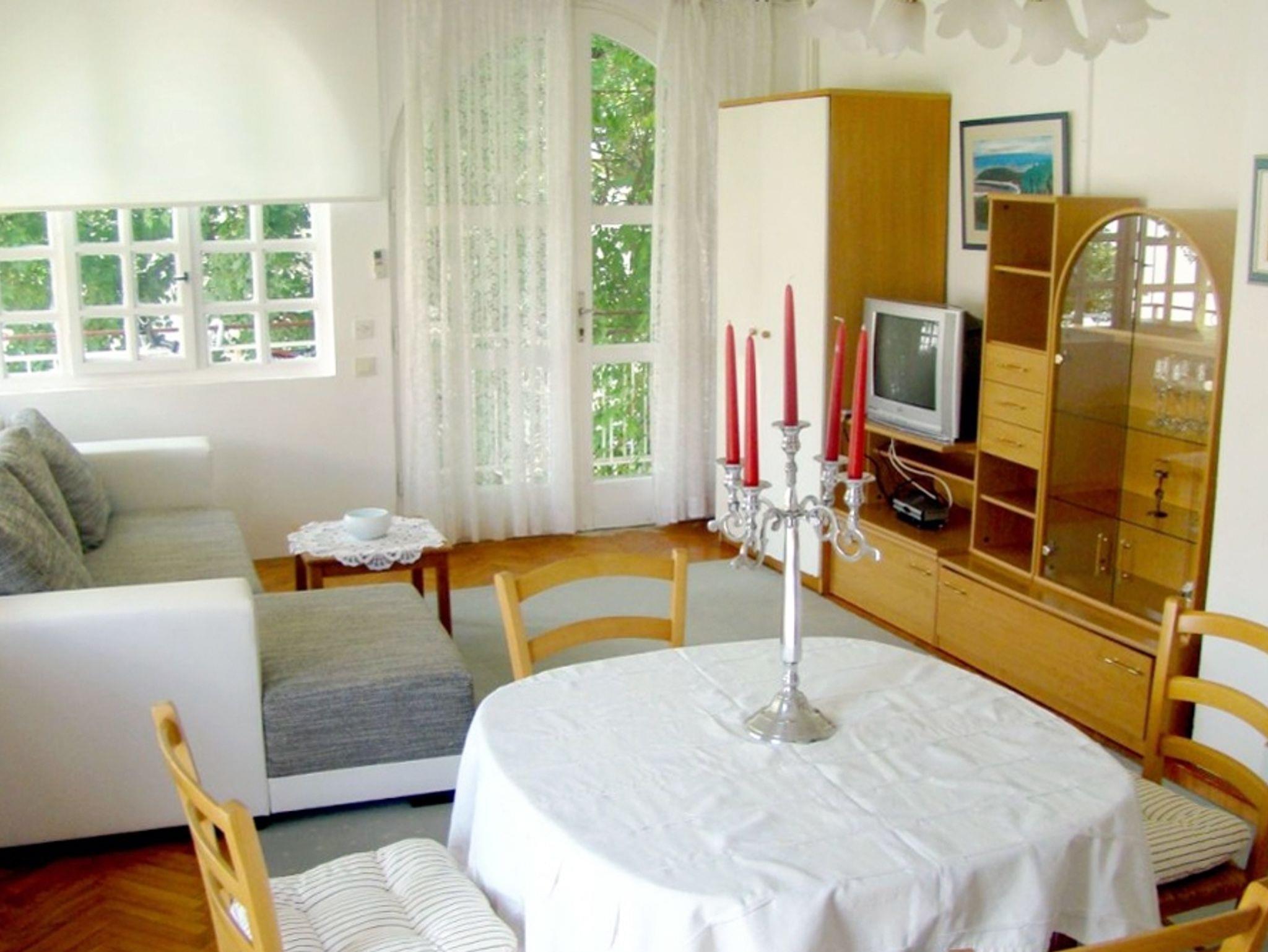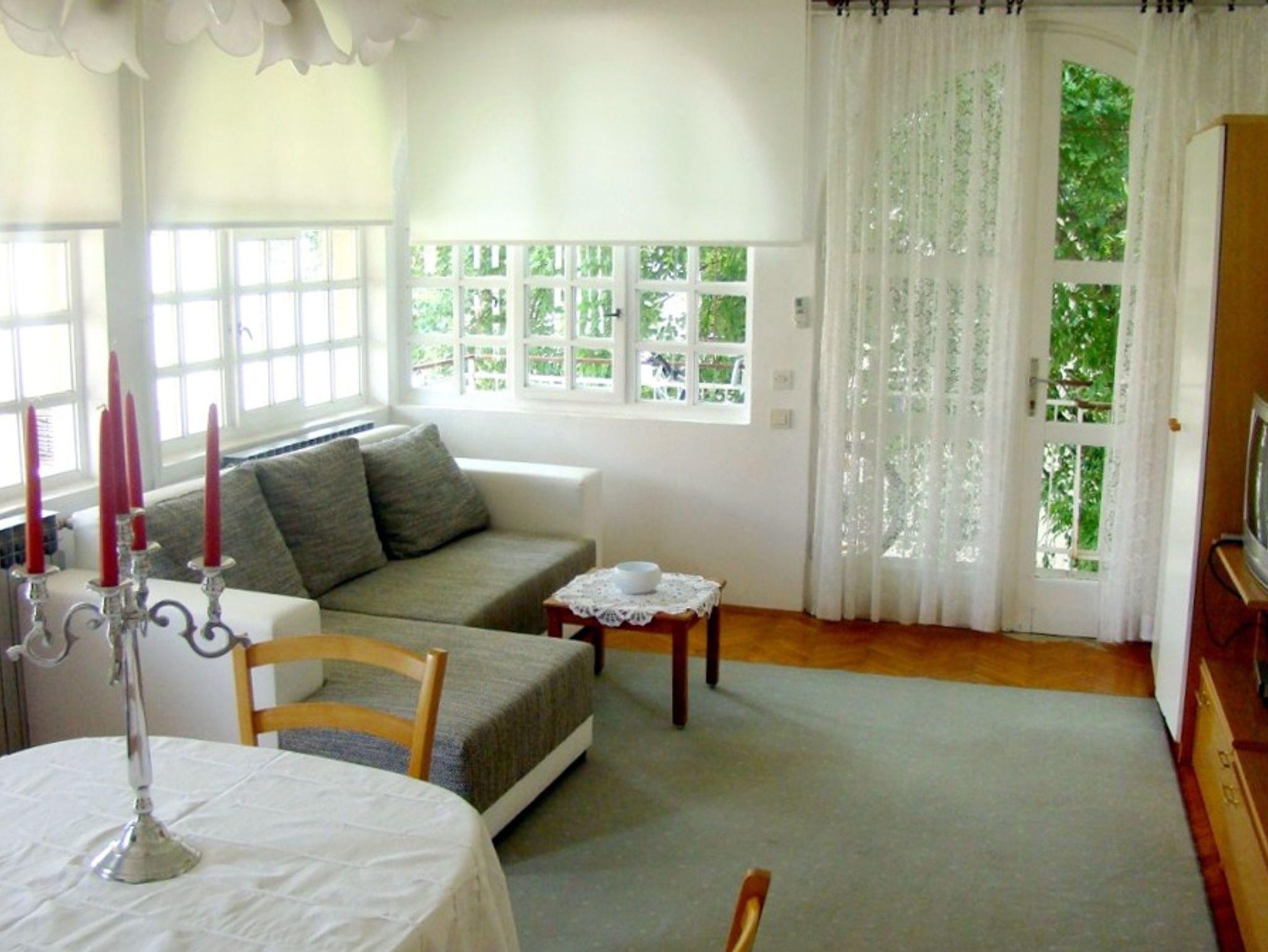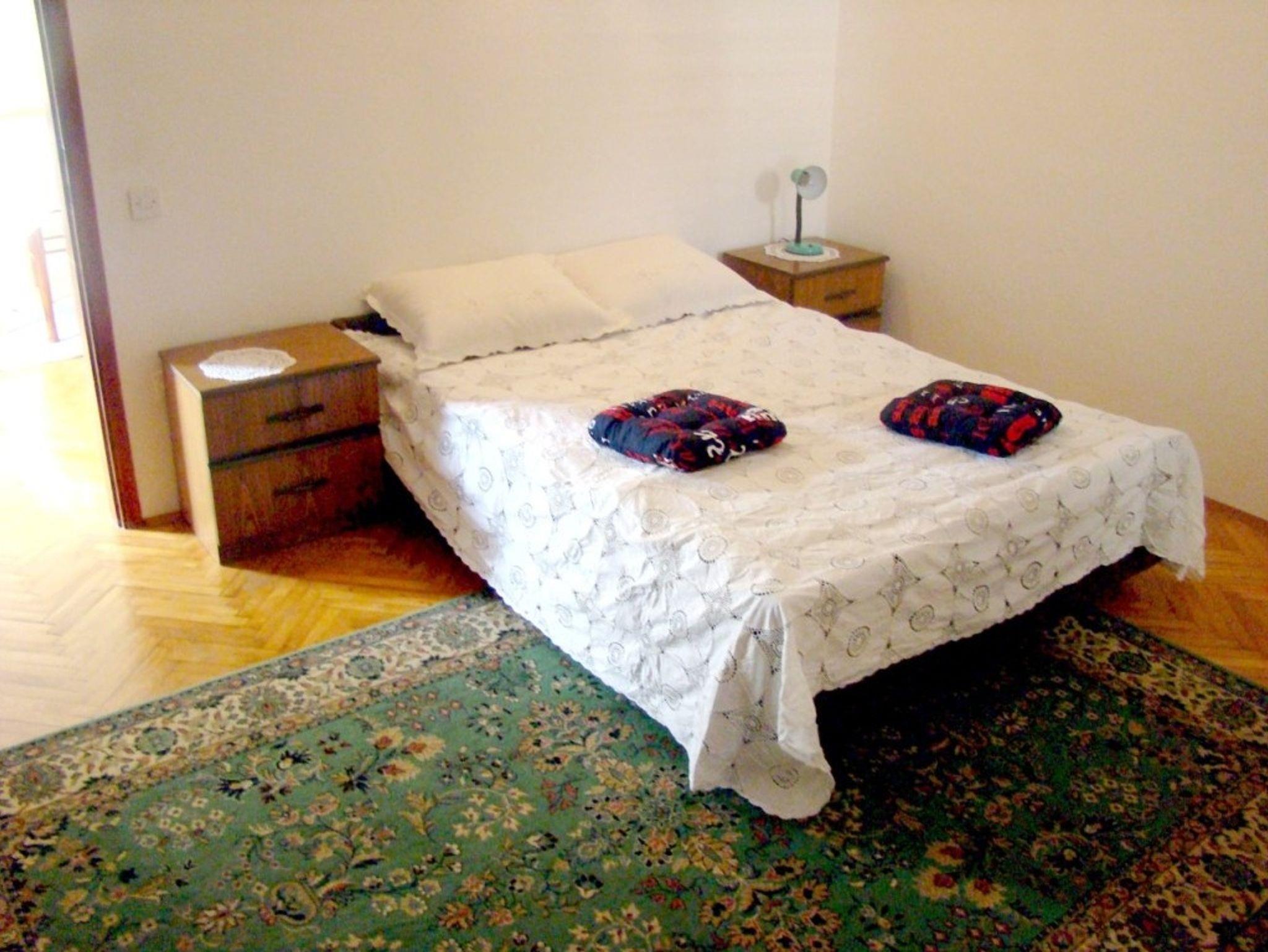 Ferienwohnung bietet Platz für 4 Gäste. Die Betten sind in Schlafzimmern, die es 1 gibt, und in Wohnzimmer, innerhalb einer Gesamtfläche von 43m2, angeordnet. Die Gäste haben eine eigene Terrasse zur Verfügung, auf der sie in warmen Sommernächten genießen können. Es ist erlaubt, Speisen auf dem Gemeinschafts-Grill vorzubereiten. IM PREIS INBEGRIFFEN: Kurtaxe, Endreinigung, Klimatisierung, Parkplatz, Internet, Kinderbett, Bügeleisen, Bügelbrett, Föhn. VERBINDLICHE ZUSÄTZLICHE KOSTEN: Aufzahlung für Kurzaufenthalte (prozentualer Zuschlag pro Nächtigungsanzahl: 30% - 1, 20% - 2, 10% - 3). Die Verfügbarkeit zusätzlicher Dienstleistungen in Ihrem reservierten Termin und die Preise derselben (falls nicht aufgeführt) müssen im Voraus überprüft werden. Zusätzliche Dienstleistungen die in der Zahlungsaufforderung nicht aufgeführt sind werden direkt beim Vermieter bezahlt, angenommen der Gast nutzt auch diese. Ermäßigung auf den Grundpreis: Gratistag 28=25 (bei einem Aufenthalt von 28 oder mehr Tagen erhalten Sie 3 kostenlose Tage für den Aufenthalt bis 31.12.26).