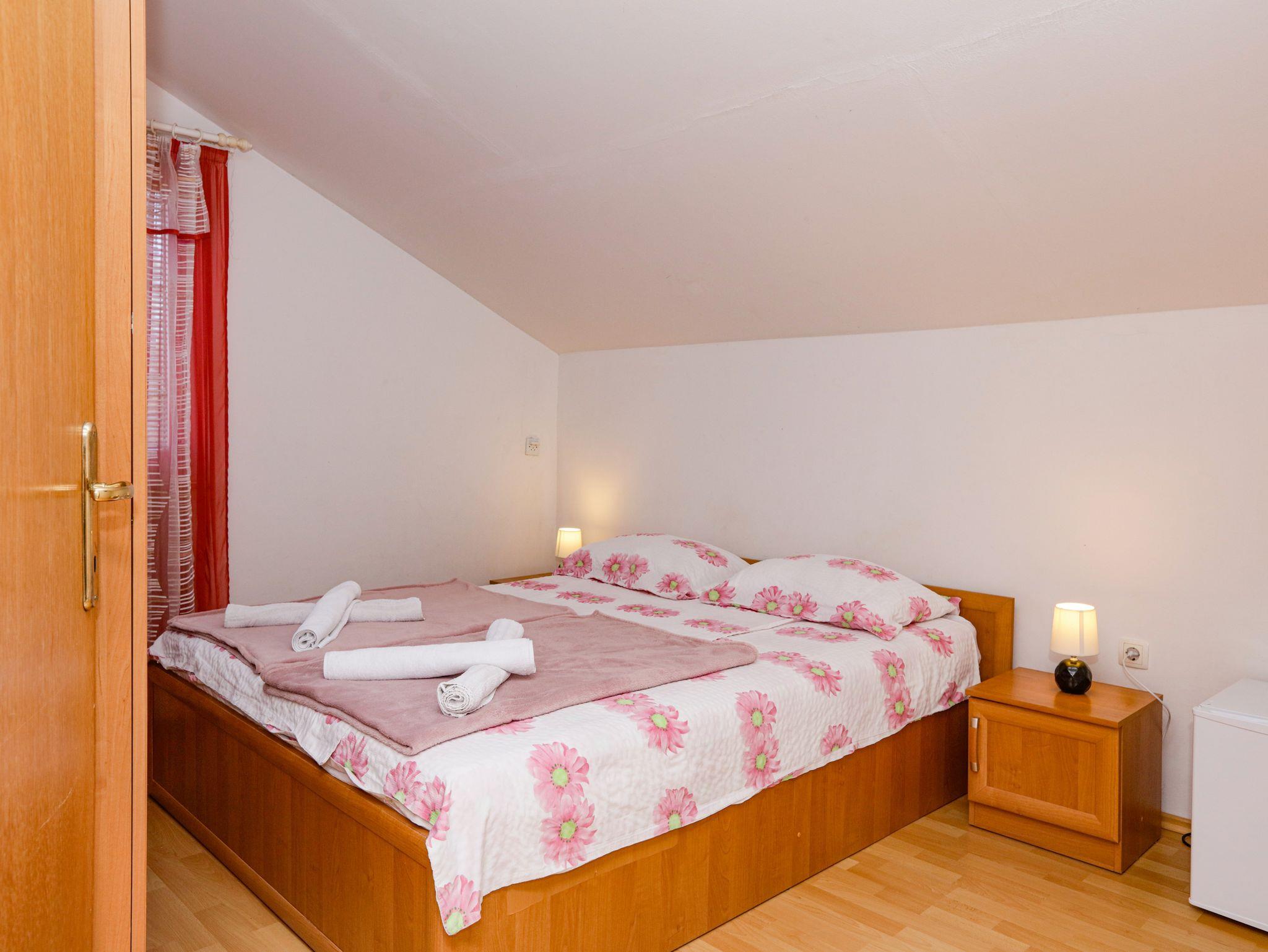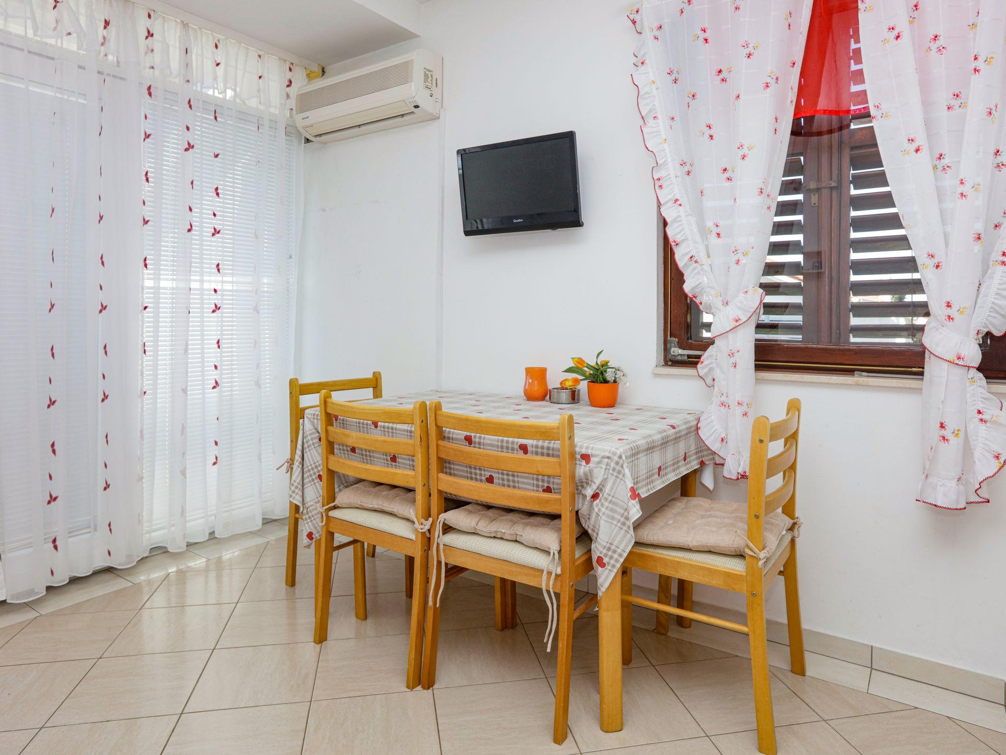 Ferienwohnung bietet Platz für 4 Gäste. Die Betten sind in Schlafzimmern, die es 1 gibt, und in Wohnzimmer, innerhalb einer Gesamtfläche von 35m2, angeordnet. Die Gäste haben eine eigene Terrasse zur Verfügung, auf der sie in warmen Sommernächten genießen können. Das Apartment bietet Meerblick. Es ist erlaubt, Speisen auf dem Gemeinschafts-Grill vorzubereiten. IM PREIS INBEGRIFFEN: Kurtaxe, Endreinigung, Klimatisierung, Parkplatz, Internet, Kinderbett, Bügeleisen, Bügelbrett, Föhn. VERBINDLICHE ZUSÄTZLICHE KOSTEN: Aufzahlung für Kurzaufenthalte (prozentualer Zuschlag pro Nächtigungsanzahl: 30% - 1, 20% - 2, 10% - 3). UNVERBINDLICHE ZUSÄTZLICHE KOSTEN: Zusatzbett (5,00 € pro Nacht). Die Verfügbarkeit zusätzlicher Dienstleistungen in Ihrem reservierten Termin und die Preise derselben (falls nicht aufgeführt) müssen im Voraus überprüft werden. Zusätzliche Dienstleistungen die in der Zahlungsaufforderung nicht aufgeführt sind werden direkt beim Vermieter bezahlt, angenommen der Gast nutzt auch diese.