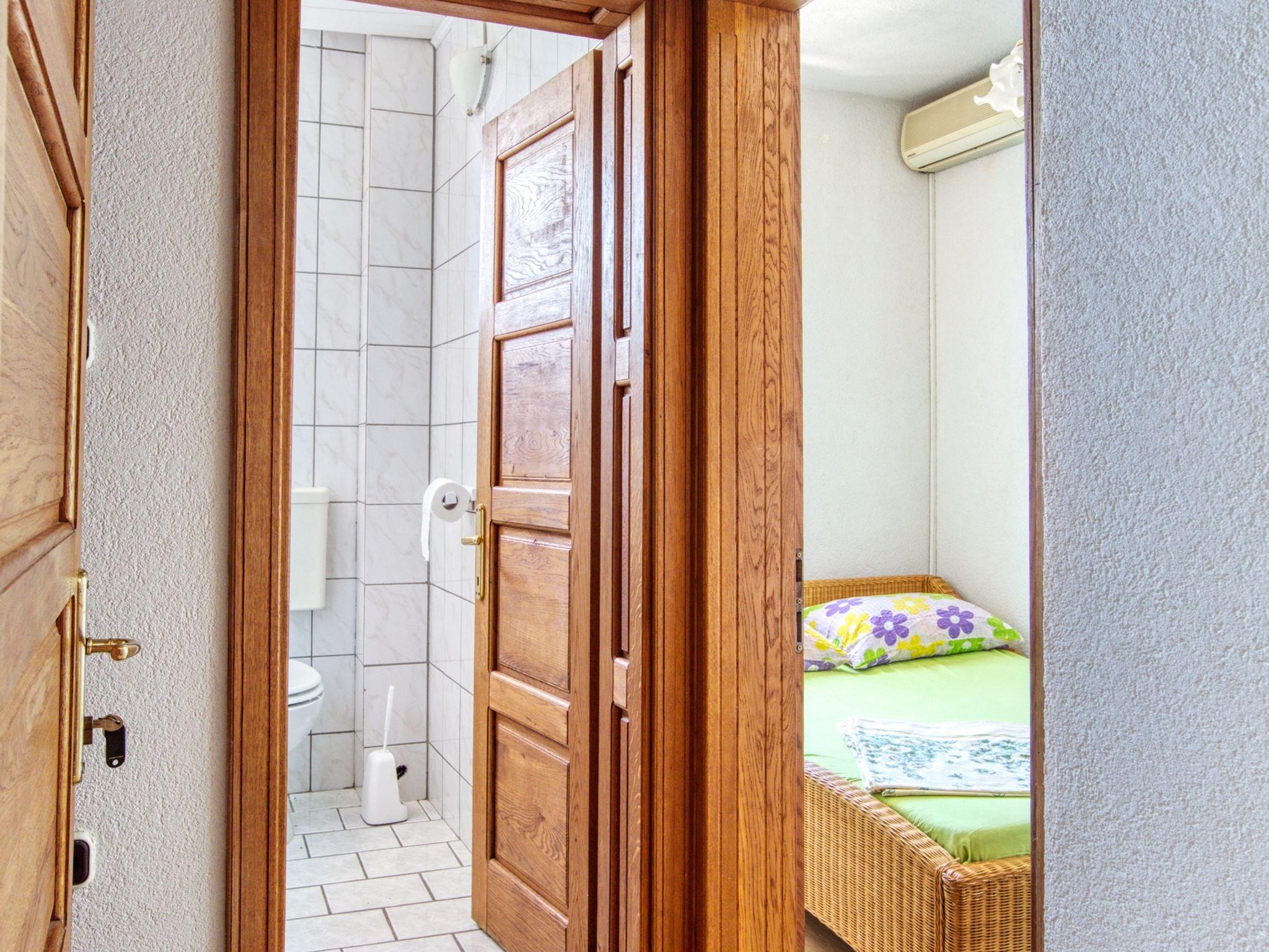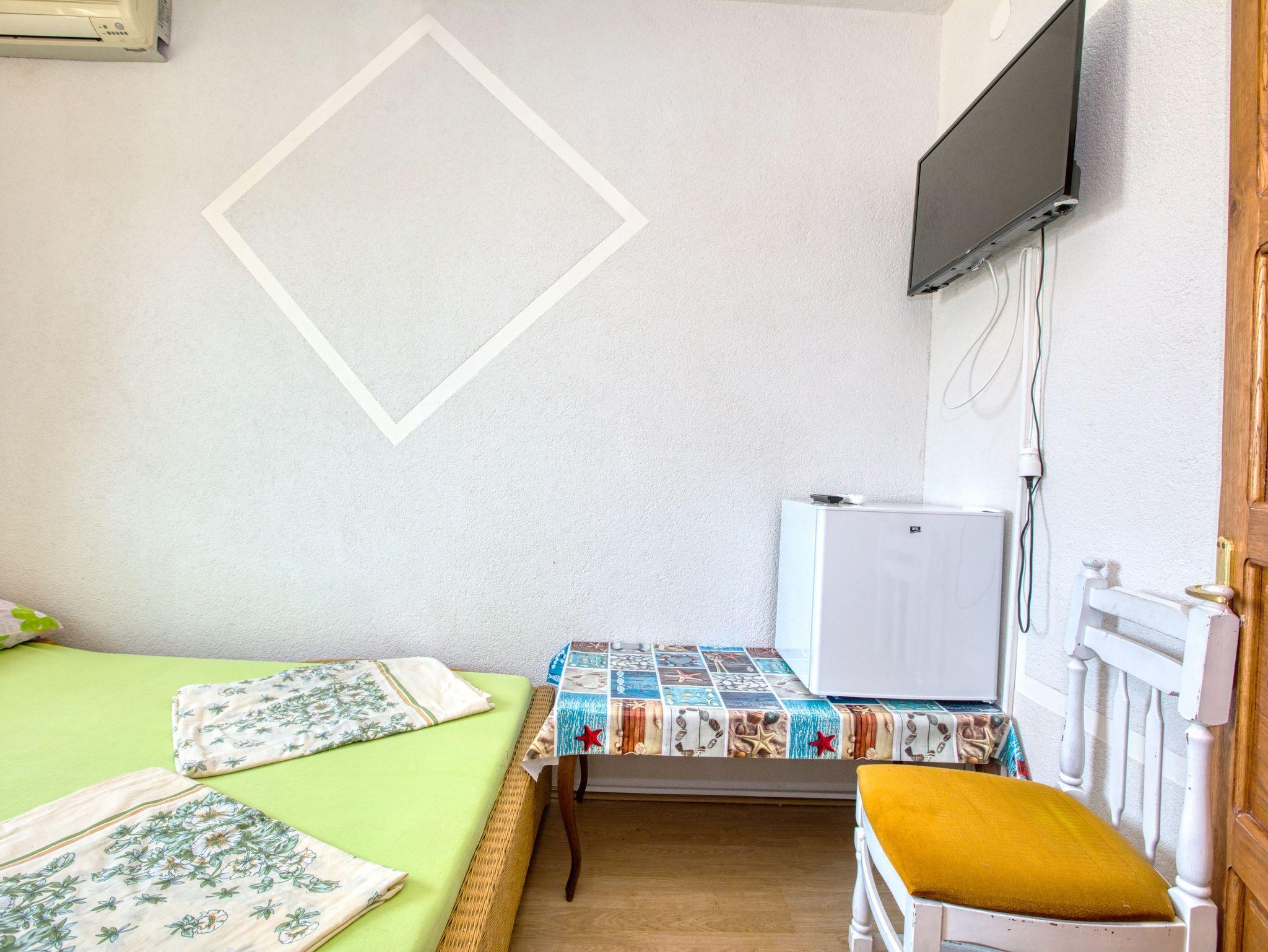 Zimmer bietet Platz für 2 Gäste. Die Betten sind in Schlafzimmern, die es 1 gibt, innerhalb einer Gesamtfläche von 12m2, angeordnet. Es ist erlaubt, Speisen auf dem Gemeinschafts-Grill vorzubereiten. In der Unterkunftseinheit besteht die Möglichkeit des Mitbringens von Haustieren gegen Aufpreis. Die reservierte Unterkunftseinheit ist ein Zimmer mit eigenem Badezimmer ohne die Möglichkeit der Nutzung einer Küche. Die reservierte Unterkunftseinheit verfügt über einen gemeinsamen Balkon. Unterkunftseinheit hat Räume, die von dem Rest der Einheit abgetrennt werden. IM PREIS INBEGRIFFEN: Kurtaxe, Endreinigung, Klimatisierung, Parkplatz, Internet. VERBINDLICHE ZUSÄTZLICHE KOSTEN: Aufzahlung für Kurzaufenthalte (prozentualer Zuschlag pro Nächtigungsanzahl: 30% - 1, 20% - 2, 10% - 3). UNVERBINDLICHE ZUSÄTZLICHE KOSTEN: Halbpension (15,00 €, 50% Nachlass für Kinder zwischen 4 und 12 Jahren, Kinder bis 4 Jahre sind frei.), Wäschewaschen (5,00 € Waschen), Haustiere (10,00 € pro Nacht), Fahrrad (10,00 € täglich (pro Stück)). Die Verfügbarkeit zusätzlicher Dienstleistungen in Ihrem reservierten Termin und die Preise derselben (falls nicht aufgeführt) müssen im Voraus überprüft werden. Zusätzliche Dienstleistungen die in der Zahlungsaufforderung nicht aufgeführt sind werden direkt beim Vermieter bezahlt, angenommen der Gast nutzt auch diese. Ermäßigung auf den Grundpreis: Gratistag 14=13 (bei einem Aufenthalt von 14 Tagen oder mehr erhalten Sie einen Gratistag für den Aufenthalt bis 31.12.26).