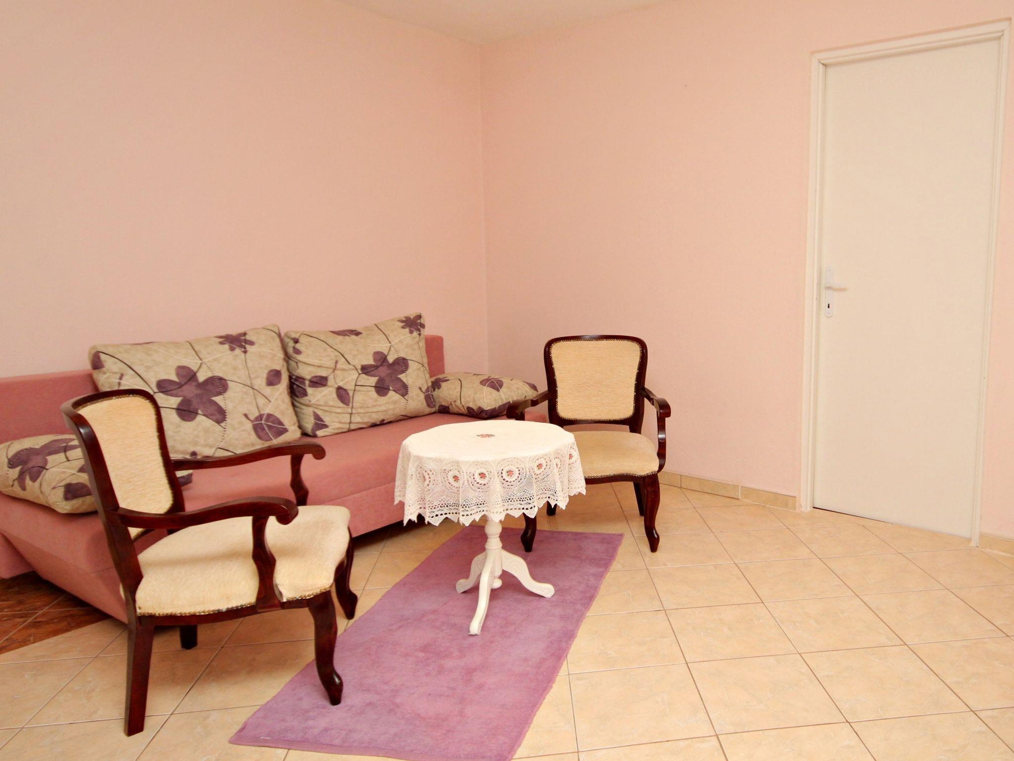 Ferienwohnung bietet Platz für 4 Gäste. Die Betten sind in Schlafzimmern, die es 1 gibt, und in Wohnzimmer, innerhalb einer Gesamtfläche von 28m2, angeordnet. Die Gäste haben eine eigene Terrasse zur Verfügung, auf der sie in warmen Sommernächten genießen können. Es ist erlaubt, Speisen auf dem Gemeinschafts-Grill vorzubereiten. IM PREIS INBEGRIFFEN: Kurtaxe, Endreinigung, Klimatisierung, Parkplatz, Internet, Wäschewaschen, Kinderbett, Bügeleisen, Bügelbrett, Föhn. VERBINDLICHE ZUSÄTZLICHE KOSTEN: Aufzahlung für Kurzaufenthalte (prozentualer Zuschlag pro Nächtigungsanzahl: 30% - 1, 20% - 2, 10% - 3). Die Verfügbarkeit zusätzlicher Dienstleistungen in Ihrem reservierten Termin und die Preise derselben (falls nicht aufgeführt) müssen im Voraus überprüft werden. Zusätzliche Dienstleistungen die in der Zahlungsaufforderung nicht aufgeführt sind werden direkt beim Vermieter bezahlt, angenommen der Gast nutzt auch diese. Ermäßigung auf den Grundpreis: Gratistag 14=13 (bei einem Aufenthalt von 14 Tagen oder mehr erhalten Sie einen Gratistag für den Aufenthalt bis 31.12.26).