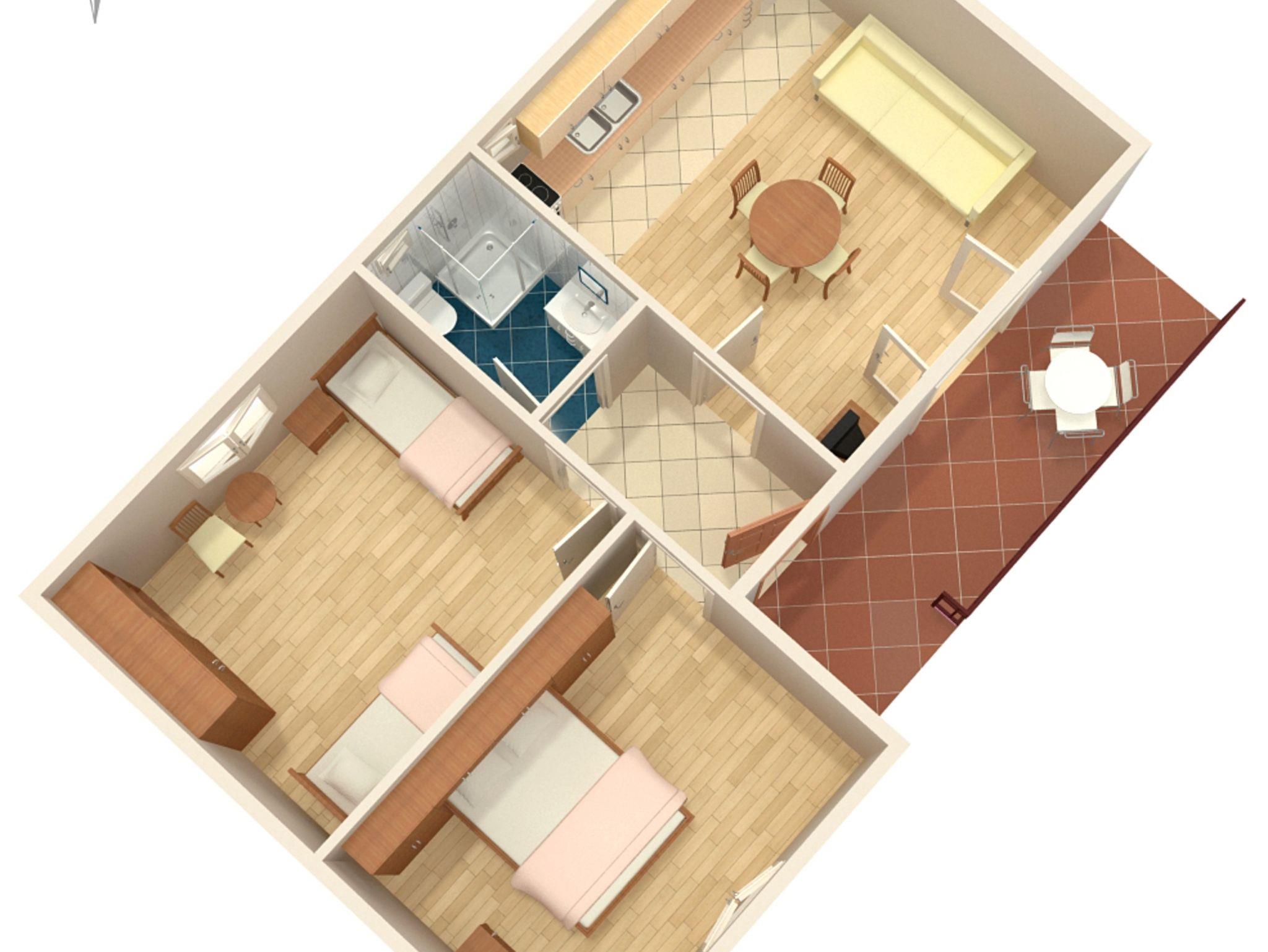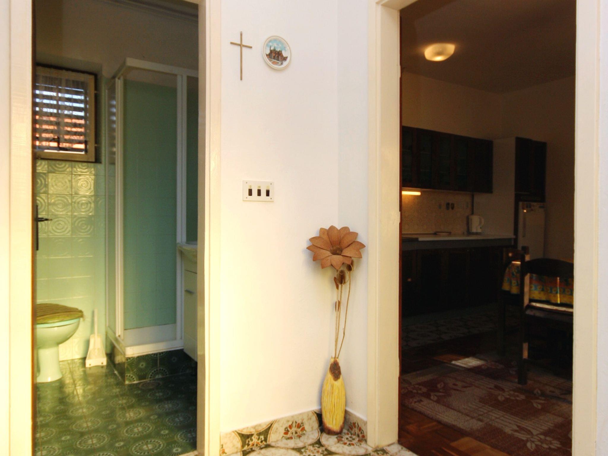 Ferienwohnung bietet Platz für 5 Gäste. Die Betten sind in Schlafzimmern, die es 2 gibt, und in Esszimmer, innerhalb einer Gesamtfläche von 48m2, angeordnet. Die Gäste haben eine eigene Terrasse zur Verfügung, auf der sie in warmen Sommernächten genießen können. Es ist erlaubt, Speisen auf dem Gemeinschafts-Grill vorzubereiten. IM PREIS INBEGRIFFEN: Kurtaxe, Endreinigung, Parkplatz, Internet, Bügeleisen, Bügelbrett, Föhn. VERBINDLICHE ZUSÄTZLICHE KOSTEN: Aufzahlung für Kurzaufenthalte (prozentualer Zuschlag pro Nächtigungsanzahl: 30% - 1, 20% - 2, 10% - 3). Die Verfügbarkeit zusätzlicher Dienstleistungen in Ihrem reservierten Termin und die Preise derselben (falls nicht aufgeführt) müssen im Voraus überprüft werden. Zusätzliche Dienstleistungen die in der Zahlungsaufforderung nicht aufgeführt sind werden direkt beim Vermieter bezahlt, angenommen der Gast nutzt auch diese.