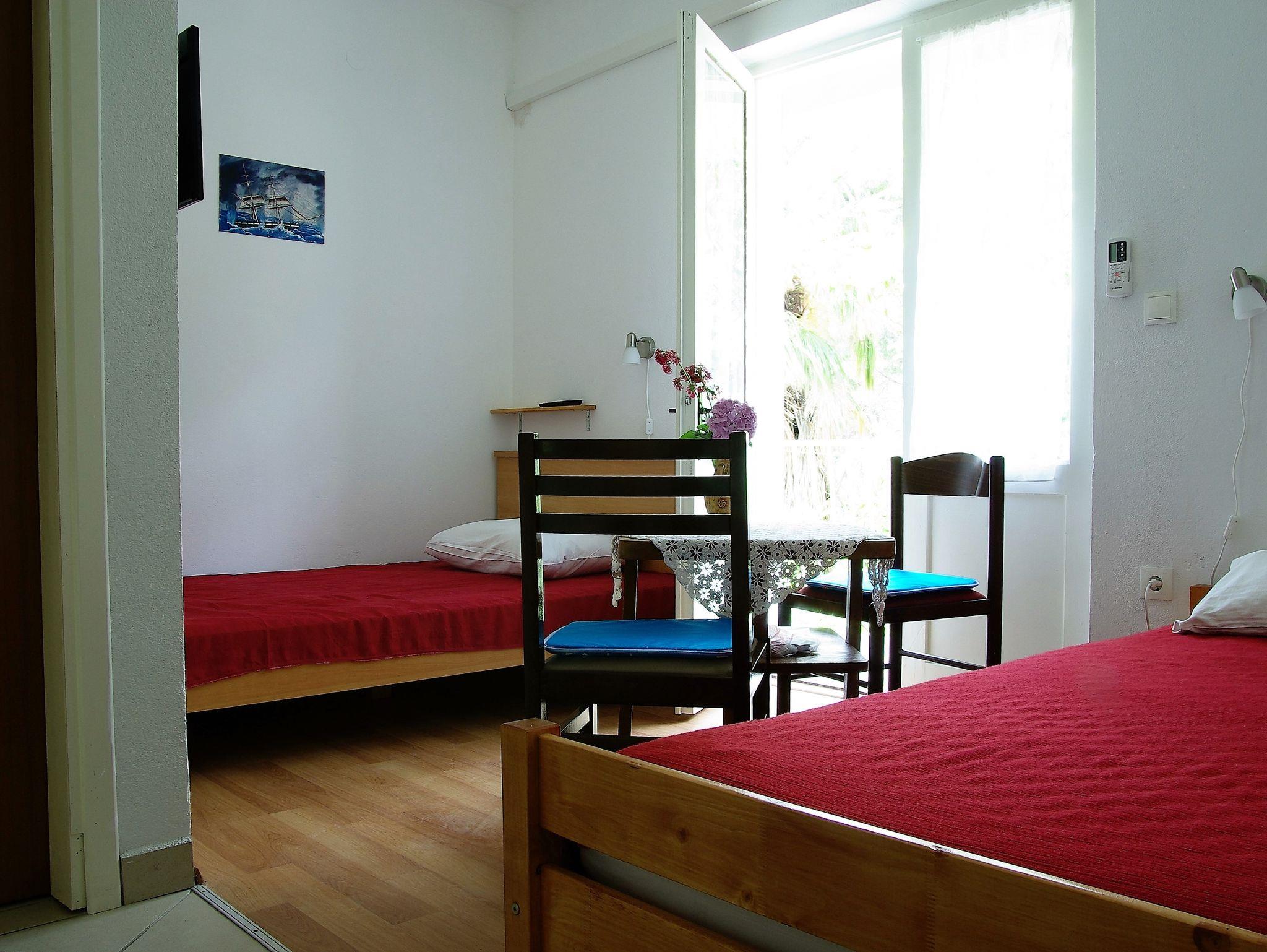 Studio bietet Platz für 2 Gäste. Die Betten sind in Schlafzimmern, die es 1 gibt, innerhalb einer Gesamtfläche von 19m2, angeordnet. Die Gäste haben einen eigenen Balkon zur Verfügung, auf der sie in warmen Sommernächten genießen können. Das Studio-Apartment bietet Meerblick. IM PREIS INBEGRIFFEN: Kurtaxe, Endreinigung, Parkplatz, Internet. VERBINDLICHE ZUSÄTZLICHE KOSTEN: Aufzahlung für Kurzaufenthalte (prozentualer Zuschlag pro Nächtigungsanzahl: 30% - 1, 20% - 2, 10% - 3). UNVERBINDLICHE ZUSÄTZLICHE KOSTEN: Klimatisierung (5,00 € pro Nacht). Die Verfügbarkeit zusätzlicher Dienstleistungen in Ihrem reservierten Termin und die Preise derselben (falls nicht aufgeführt) müssen im Voraus überprüft werden. Zusätzliche Dienstleistungen die in der Zahlungsaufforderung nicht aufgeführt sind werden direkt beim Vermieter bezahlt, angenommen der Gast nutzt auch diese.