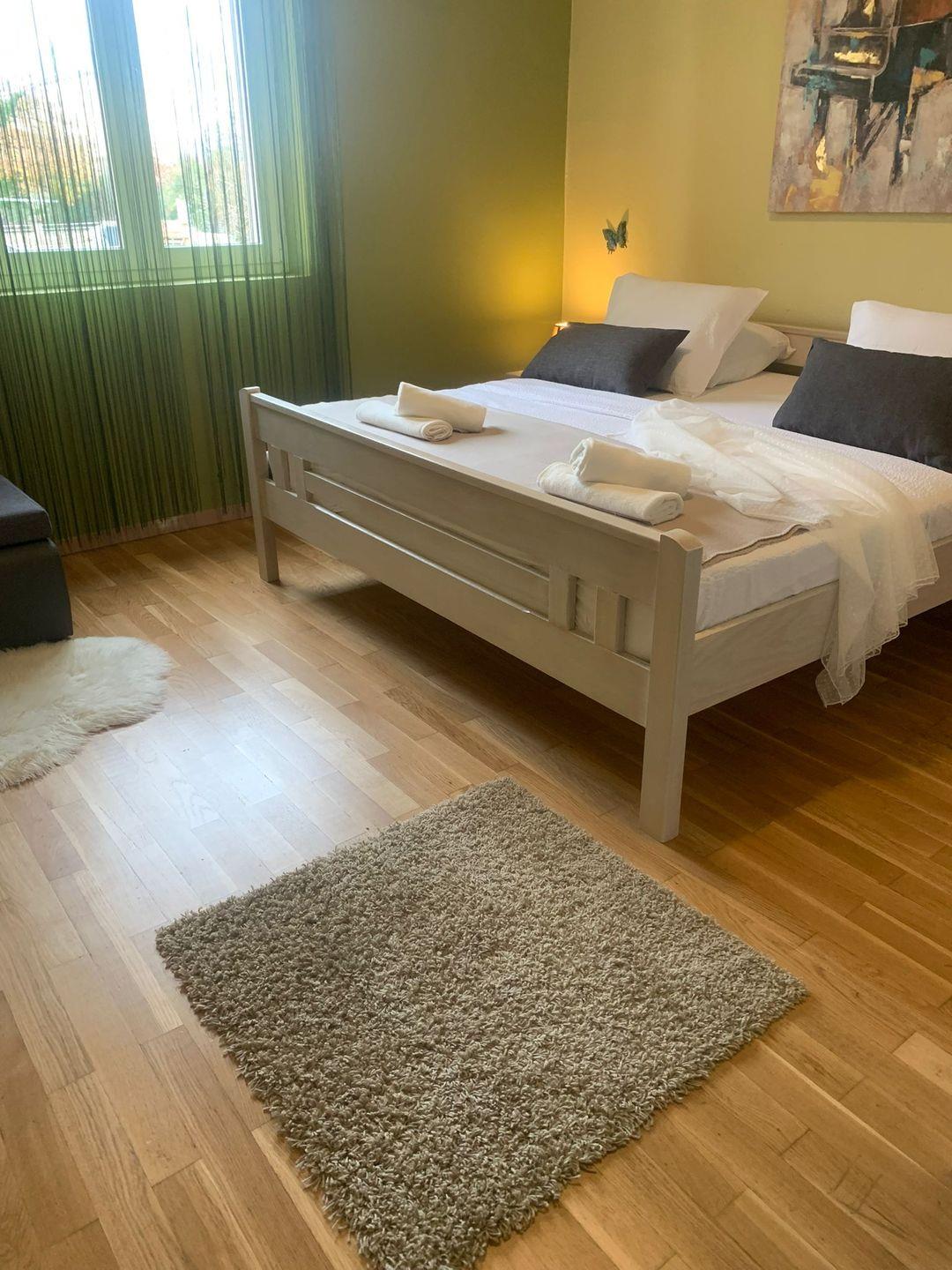 Die 40?m² große Unterkunft überzeugt durch eine clevere Raumaufteilung und eine wohnliche, einladende Atmosphäre. Im separaten Schlafzimmer erwartet Sie ein komfortables Doppelbett, während die ausziehbare Schlafcouch im Wohnbereich zwei weiteren Gästen gemütlichen Schlafplatz bietet.