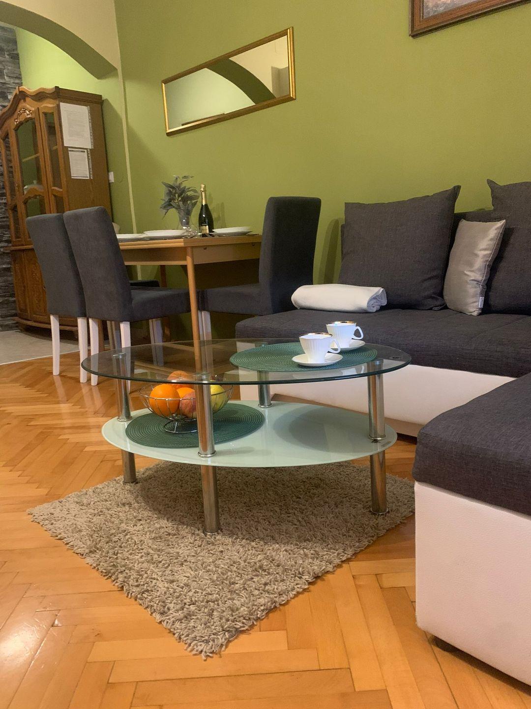 Gemütliche 40?m²-Parterrewohnung mit überdachter Terrasse, Schlafzimmer mit Doppelbett, Wohnbereich mit Schlafcouch, offener Wohn-Essbereich mit Tresen, Esstisch und voll ausgestatteter Küche (inkl. Elektro- und Gaskochfelder). Bad mit Fenster, Dusche, Waschbecken, Spiegel und Waschmaschine. Perfekt für Paare oder kleine Familien.