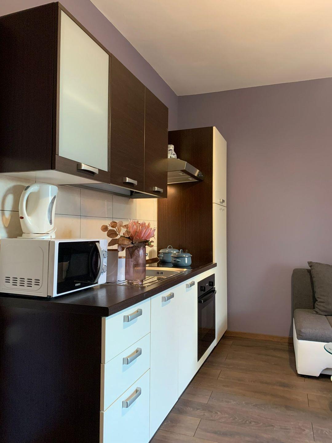 Die voll ausgestattete Küche bietet alles, was Sie für die Selbstverpflegung benötigen – ob ein schnelles Frühstück oder ein gemütliches Abendessen.