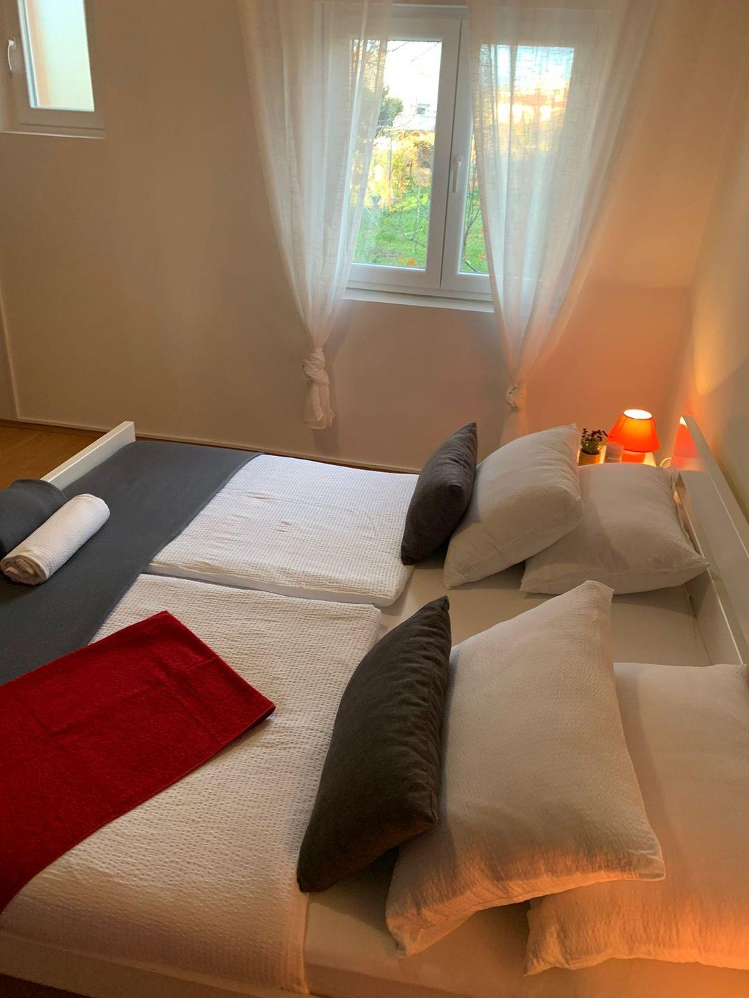 Die 45?m² große Wohnung bietet Platz für bis zu 4 Personen und überzeugt mit einer wohnlichen Atmosphäre. Im separaten Schlafzimmer erwartet Sie ein komfortables Doppelbett, ein Kleiderschrank, ein Fenster mit Tageslicht sowie ein kleines Sofa – perfekt als Lese- oder Rückzugsplatz.