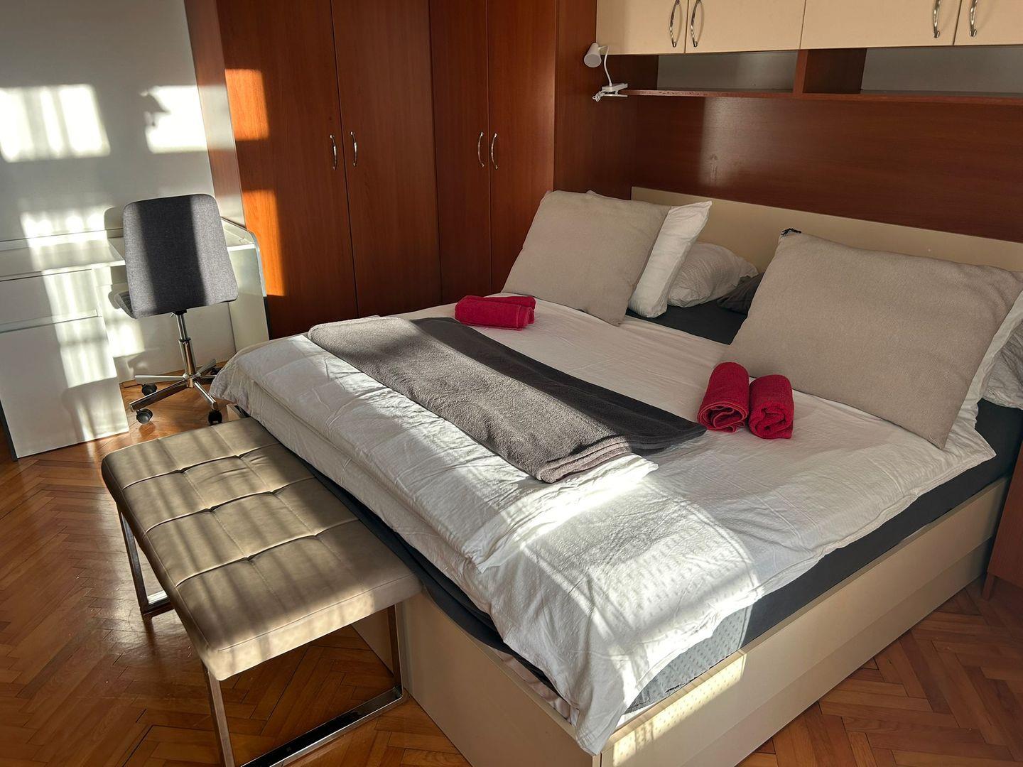 Ihnen stehen zwei separate Schlafzimmer zur Verfügung: eines mit einem gemütlichen Doppelbett, Kleiderschrank und Schreibtisch – ideal zum Zurückziehen. Vom Schlafzimmer aus erreichen Sie zudem ein weiteres, separates Arbeitszimmer mit großem Schreibtisch und komfortablem Stuhl – perfekt, wenn Sie auch im Urlaub ungestört arbeiten oder lesen möchten. Das zweite Schlafzimmer ist mit zwei Einzelbetten ausgestattet.