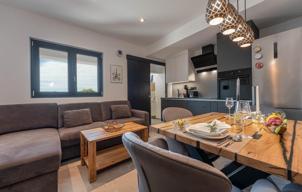 Denne attraktive lejlighed ligger nogle få skridt fra havet og byder sine gæster velkommen. lyse rum og komfortable, moderne møbler giver den et tiltalende præg, hvilket gør den til det ideelle sted for en dejlig ferie ved havet med mange aktiviteter i området. Nyd den vidunderlige havudsigt gennem de store vinduer, mens I spiser ved det lange spisebord.